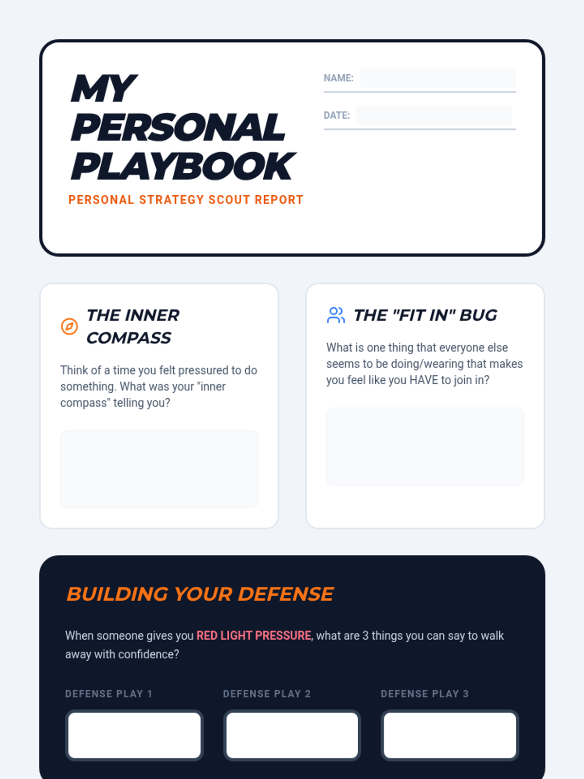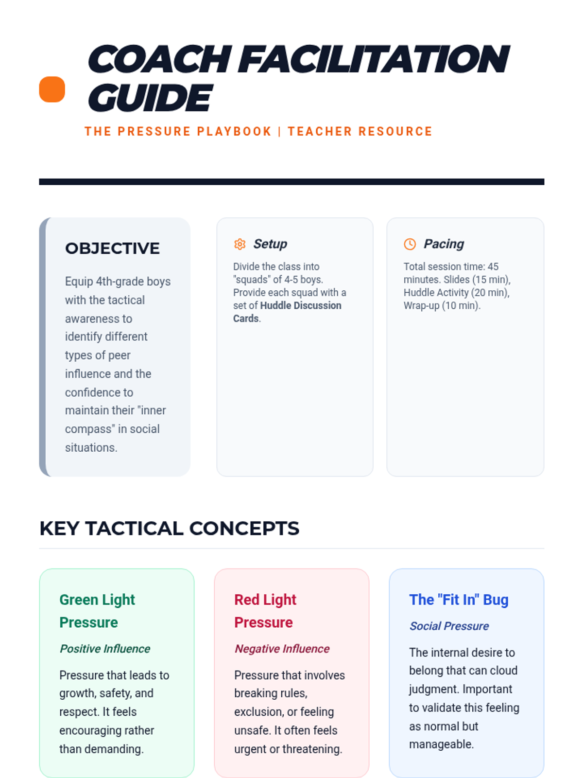 A tactical guide for 4th-grade boys to navigate the field of peer pressure, distinguishing between positive and negative influence while building the confidence to stay true to themselves.