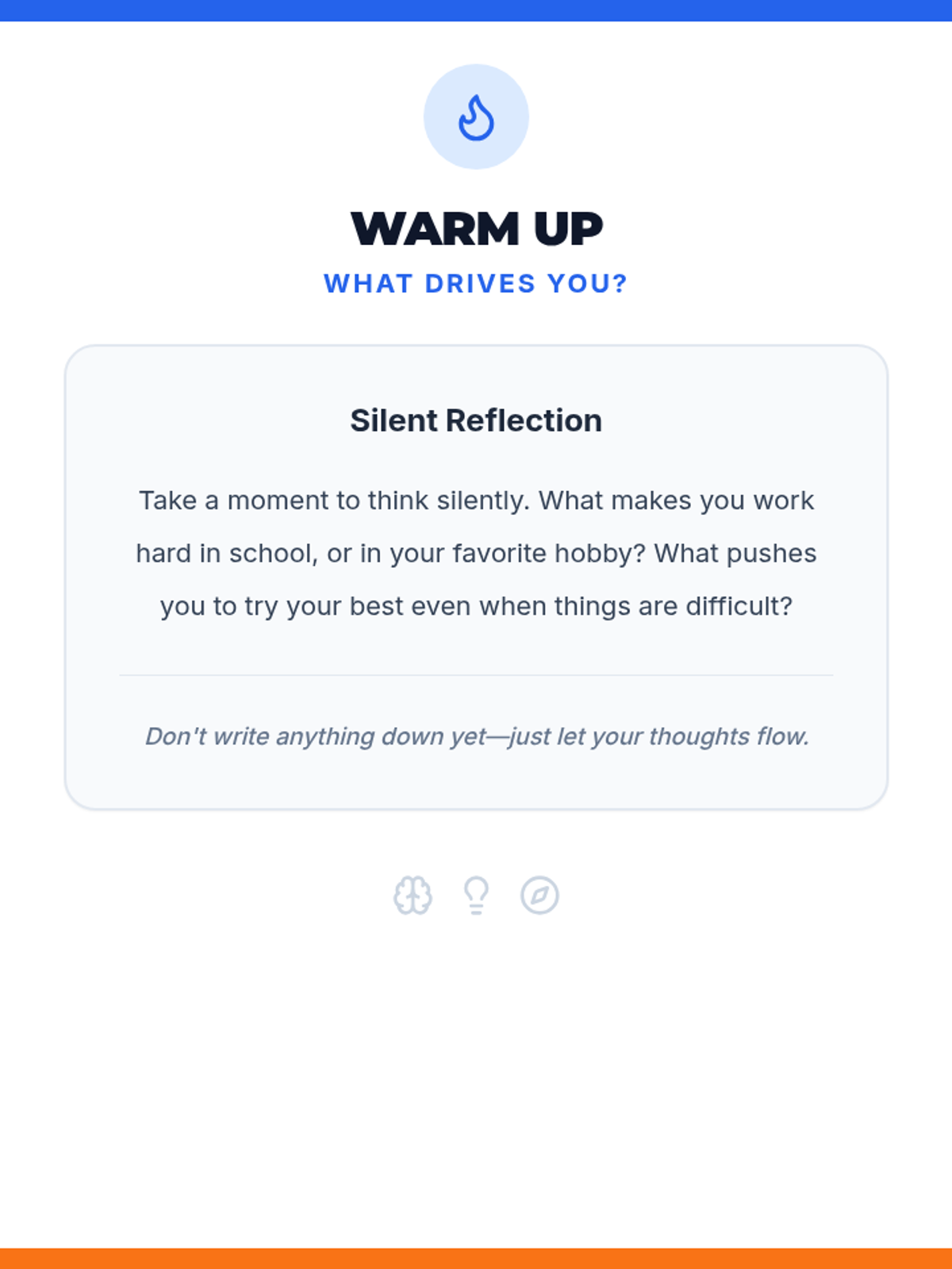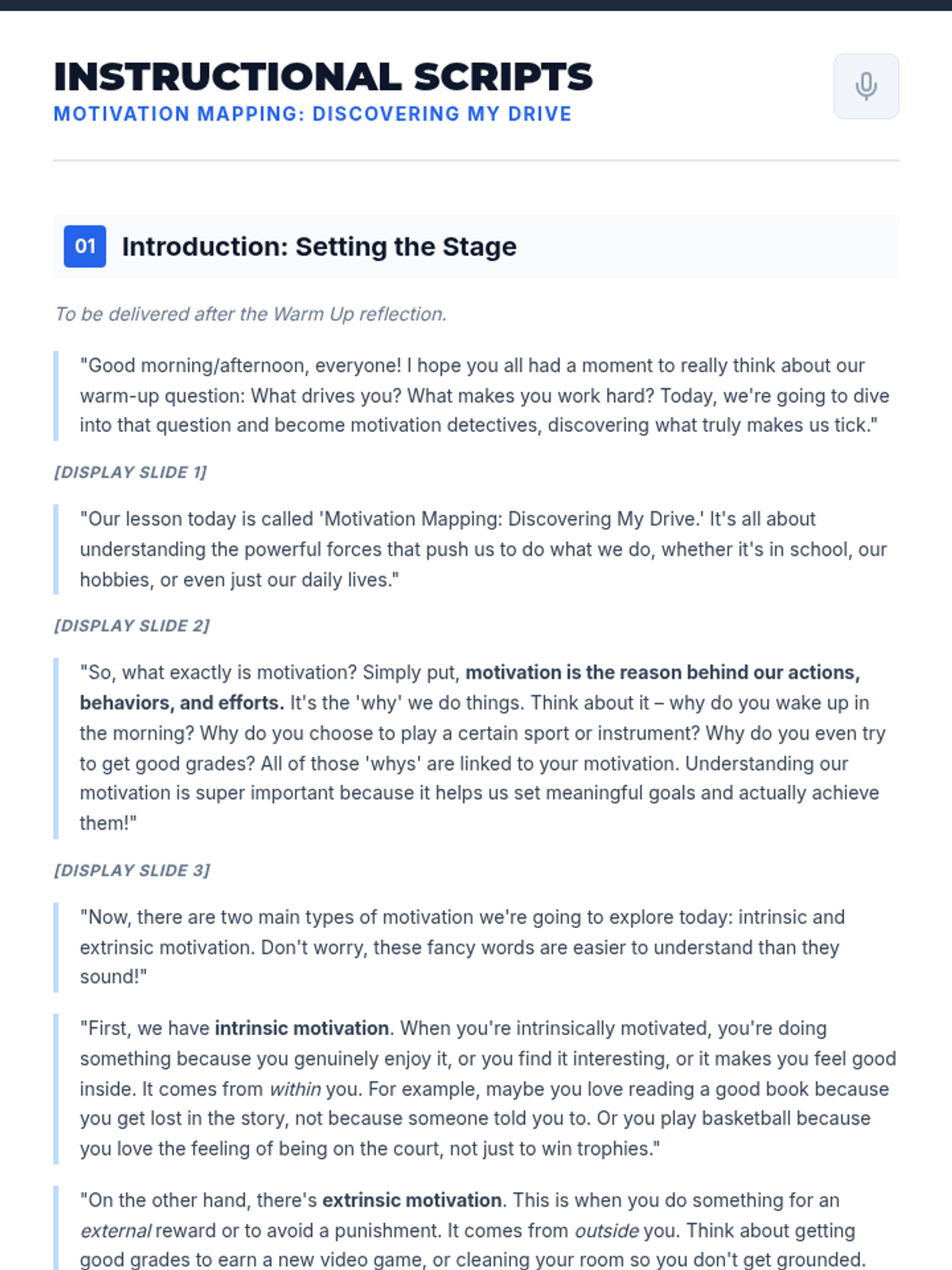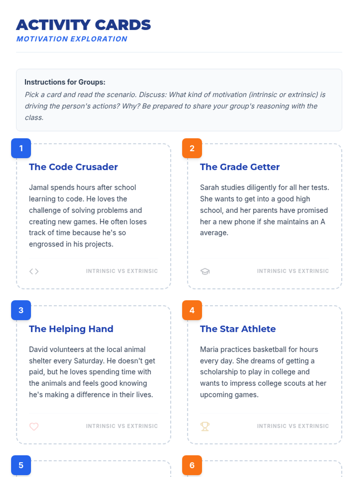 A comprehensive lesson for middle schoolers to explore intrinsic and extrinsic motivation, identify personal drivers, and develop strategies for staying engaged in academics and personal goals.