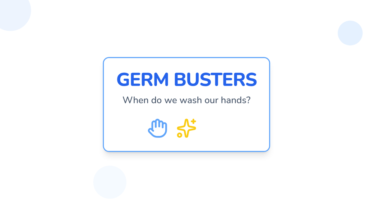 A fun, interactive lesson for Pre-K and Kindergarten students to learn about germs and the superpower of handwashing. Students will engage in storytelling, a 'glitter germ' experiment, and practice the five steps of handwashing to become certified Germ Busters.