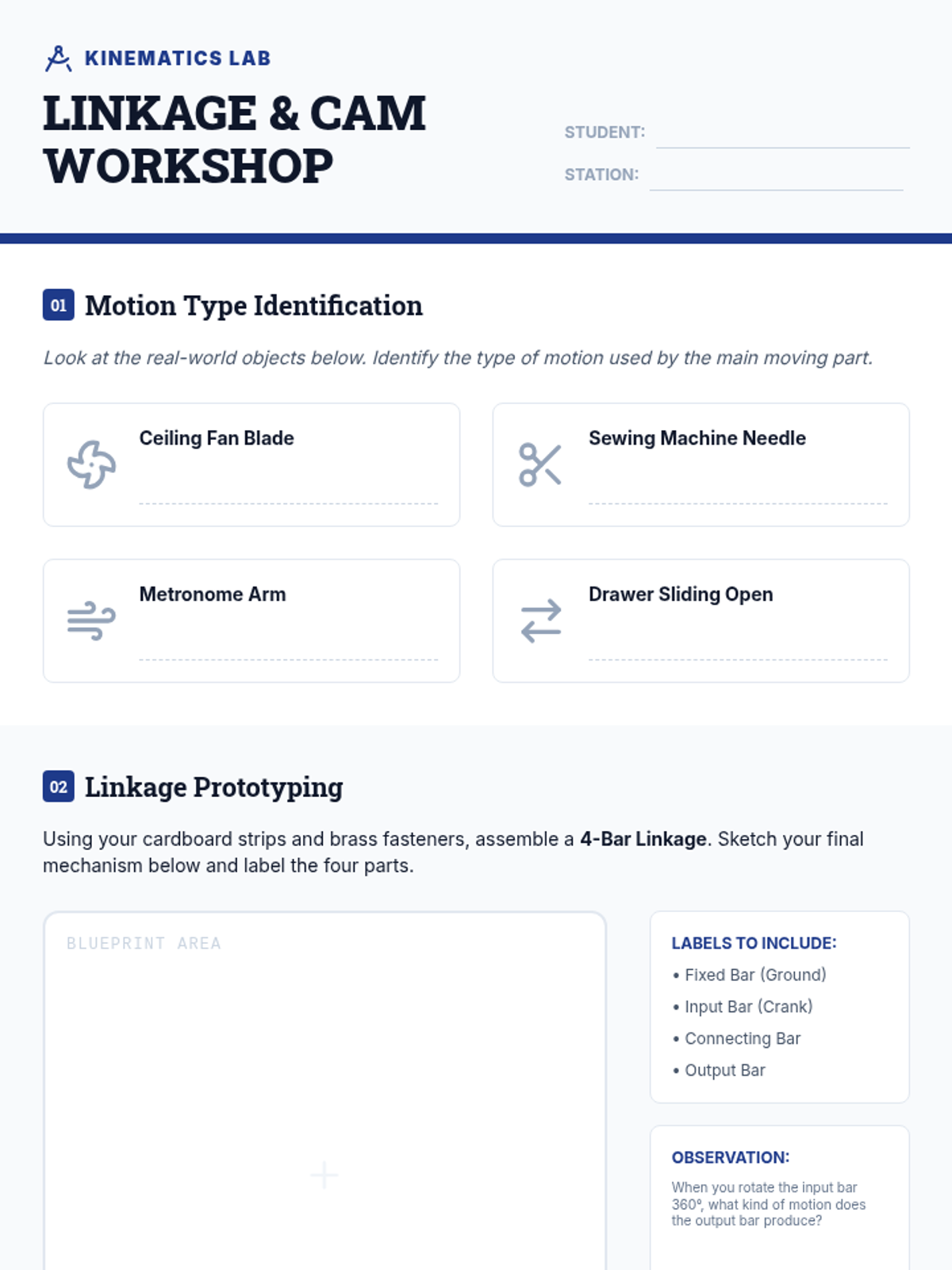 Learners investigate how to convert rotary motion into linear or oscillating motion using linkages and cams.
