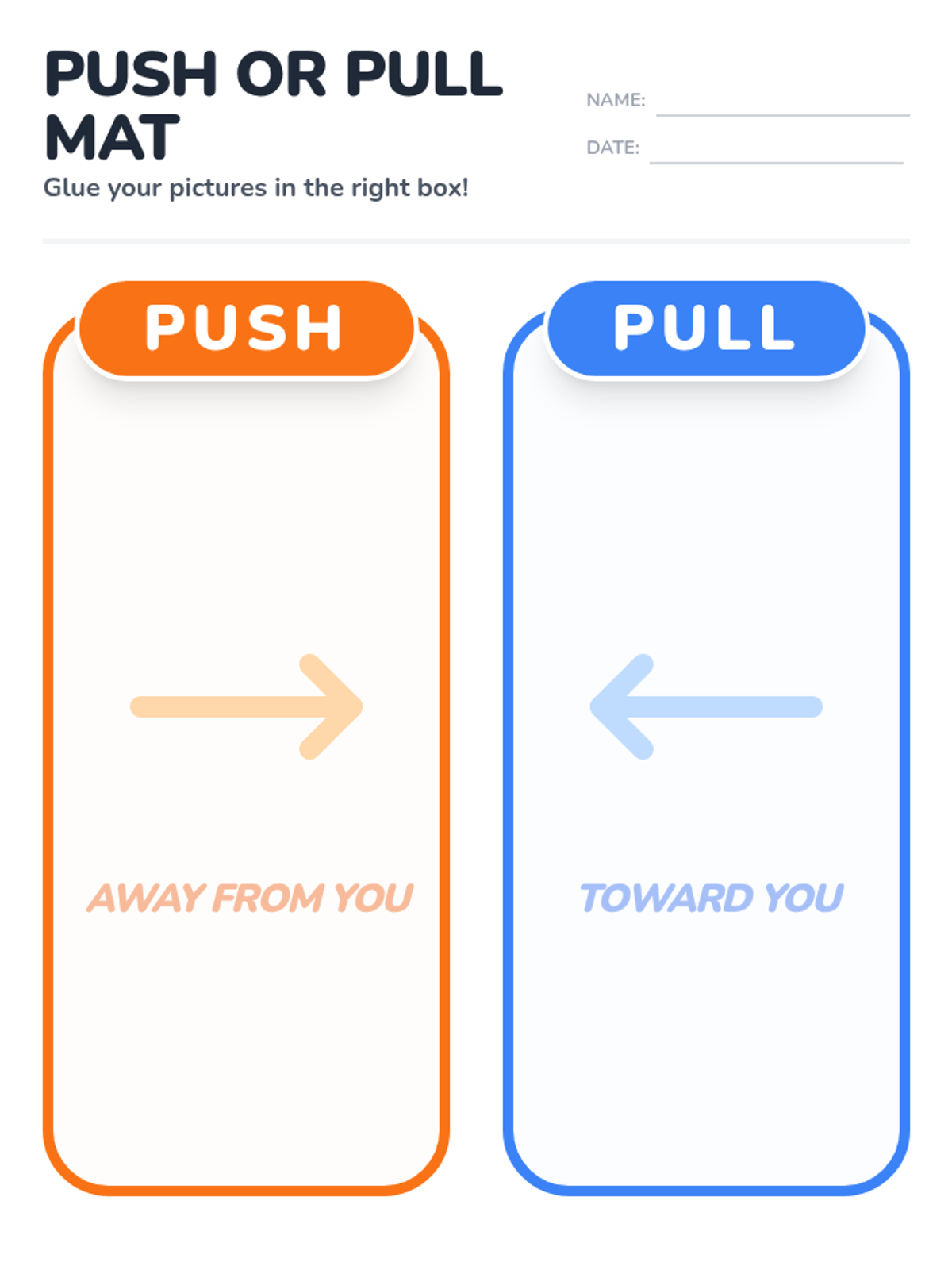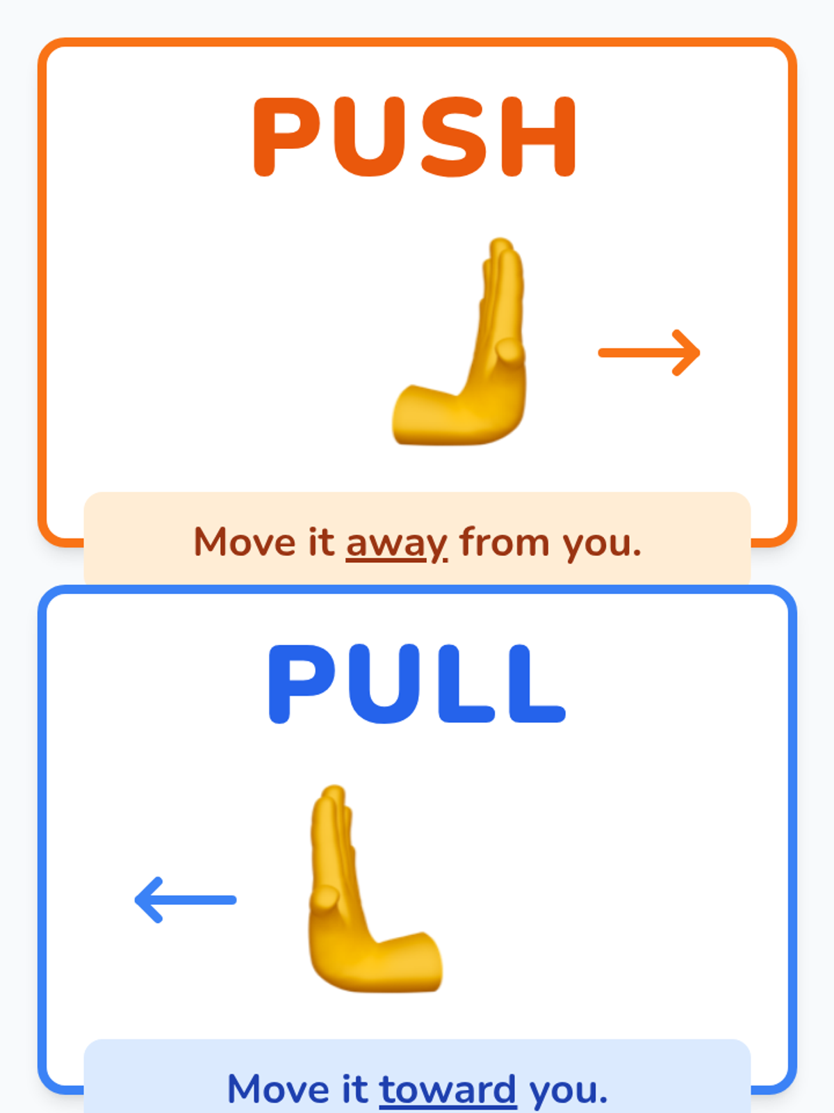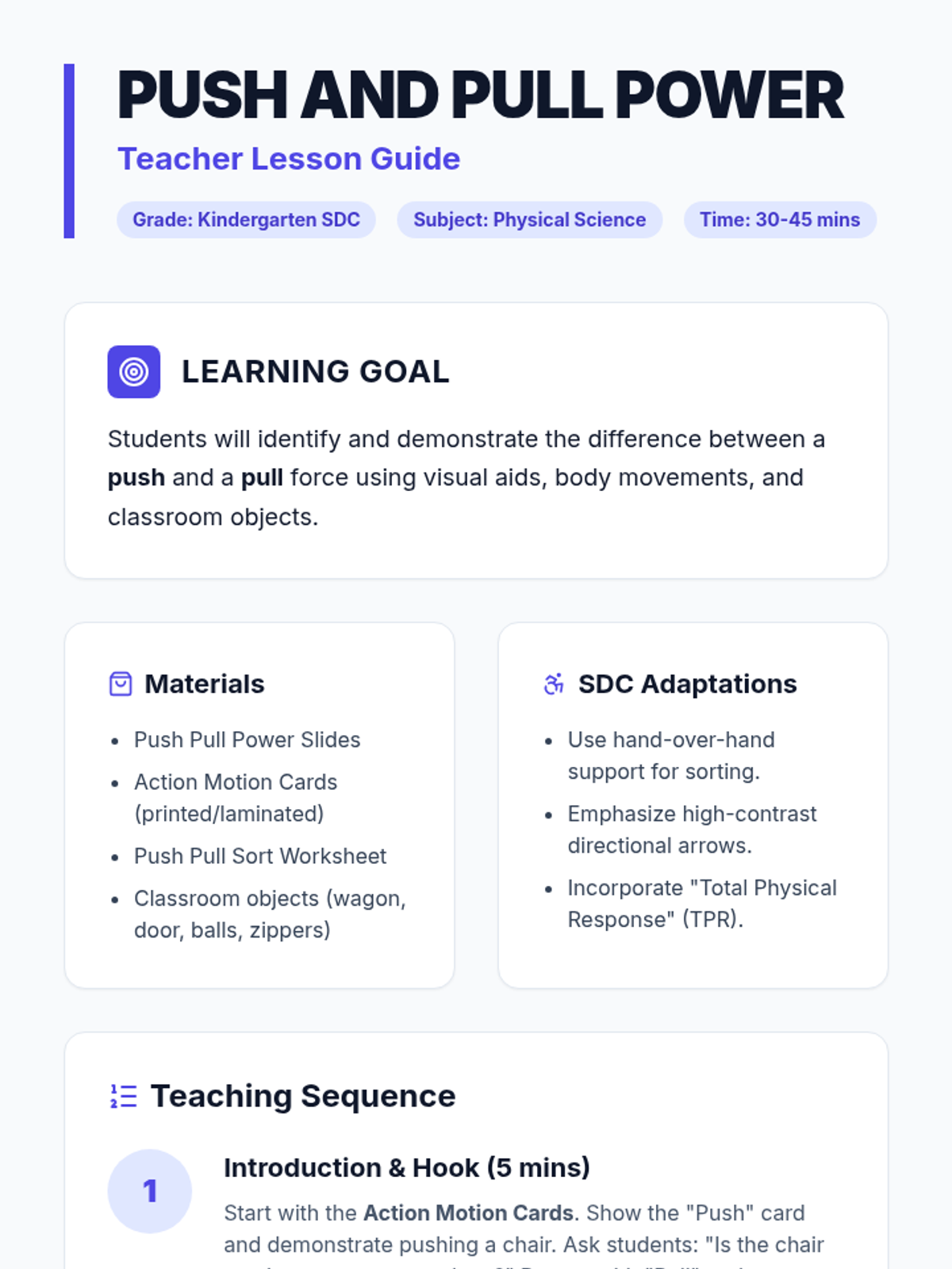 A foundational science lesson for Kindergarten students to identify and demonstrate the forces of pushing and pulling through visual aids and hands-on movement.