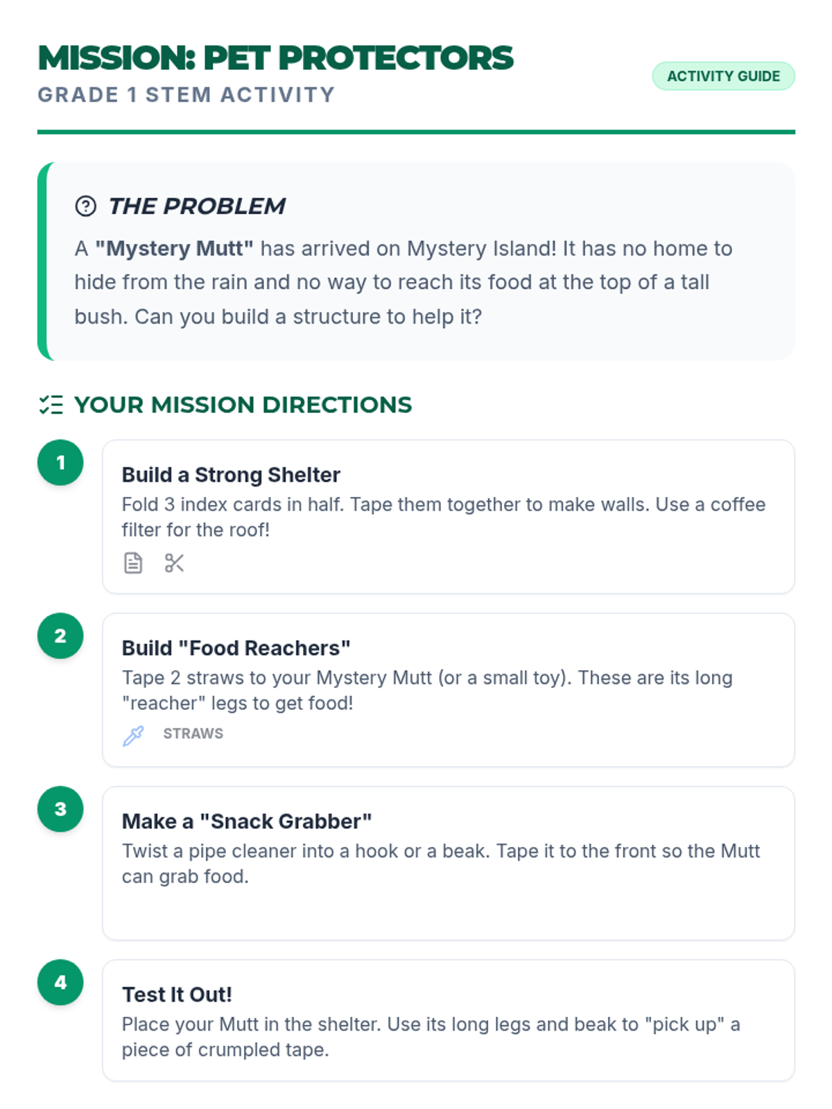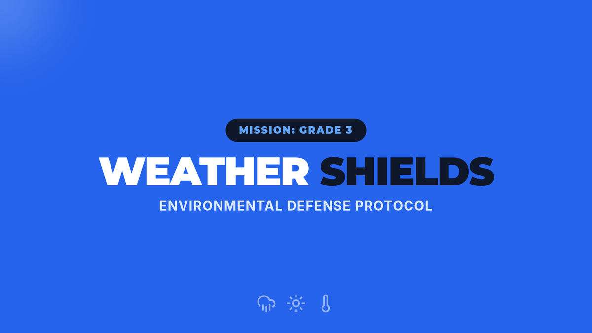 Students design and build 'Weather Shields' to protect a model plant from extreme temperature and precipitation changes on Mystery Island, exploring how environmental factors affect organisms.
