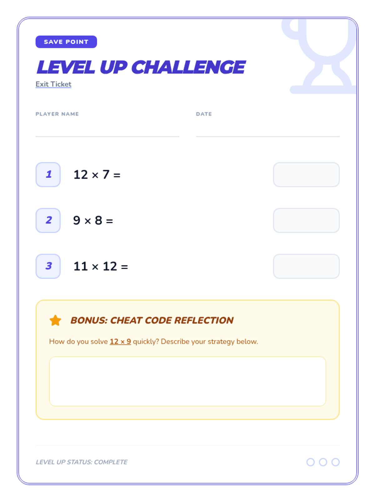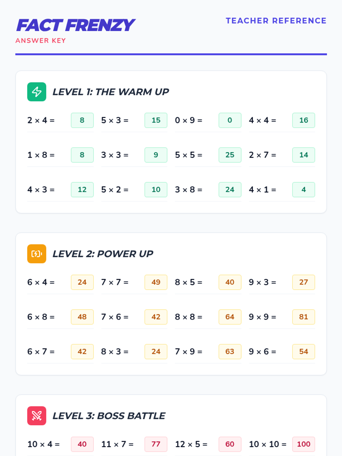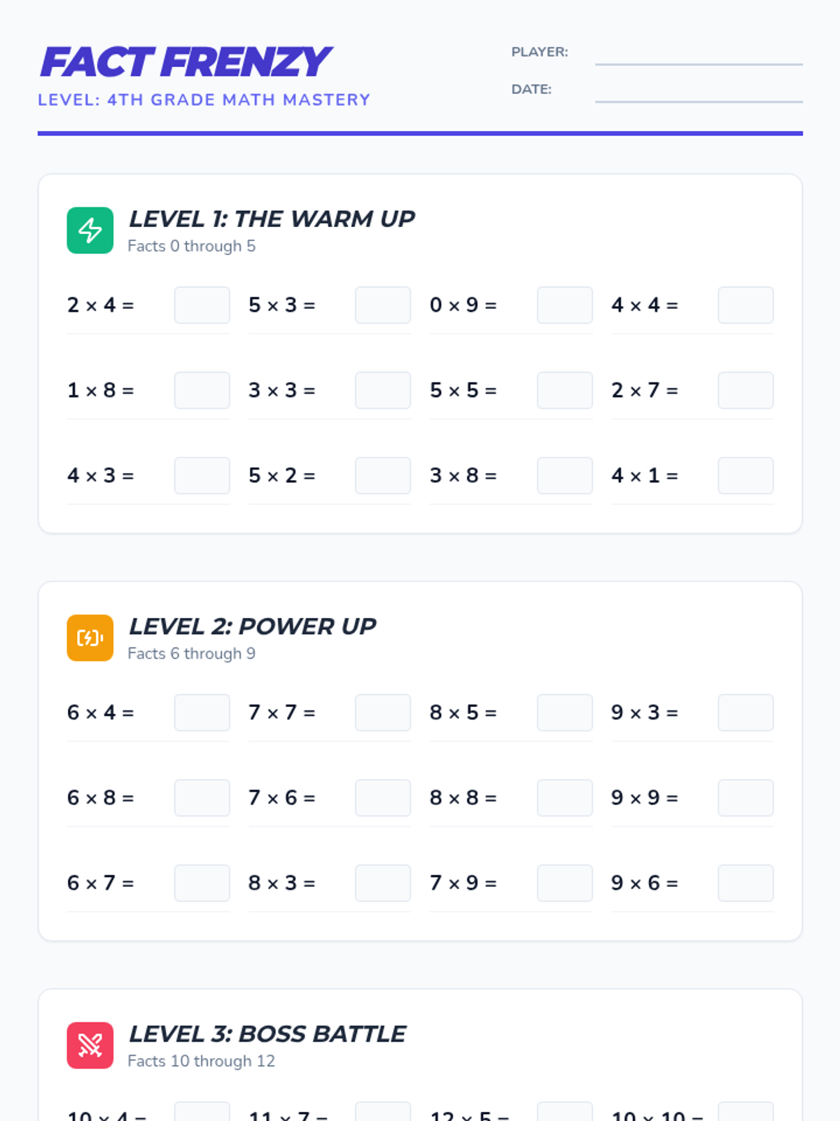 A practice-focused lesson designed to reinforce multiplication fluency for facts up to 12 through engaging, arcade-themed activities and drills.