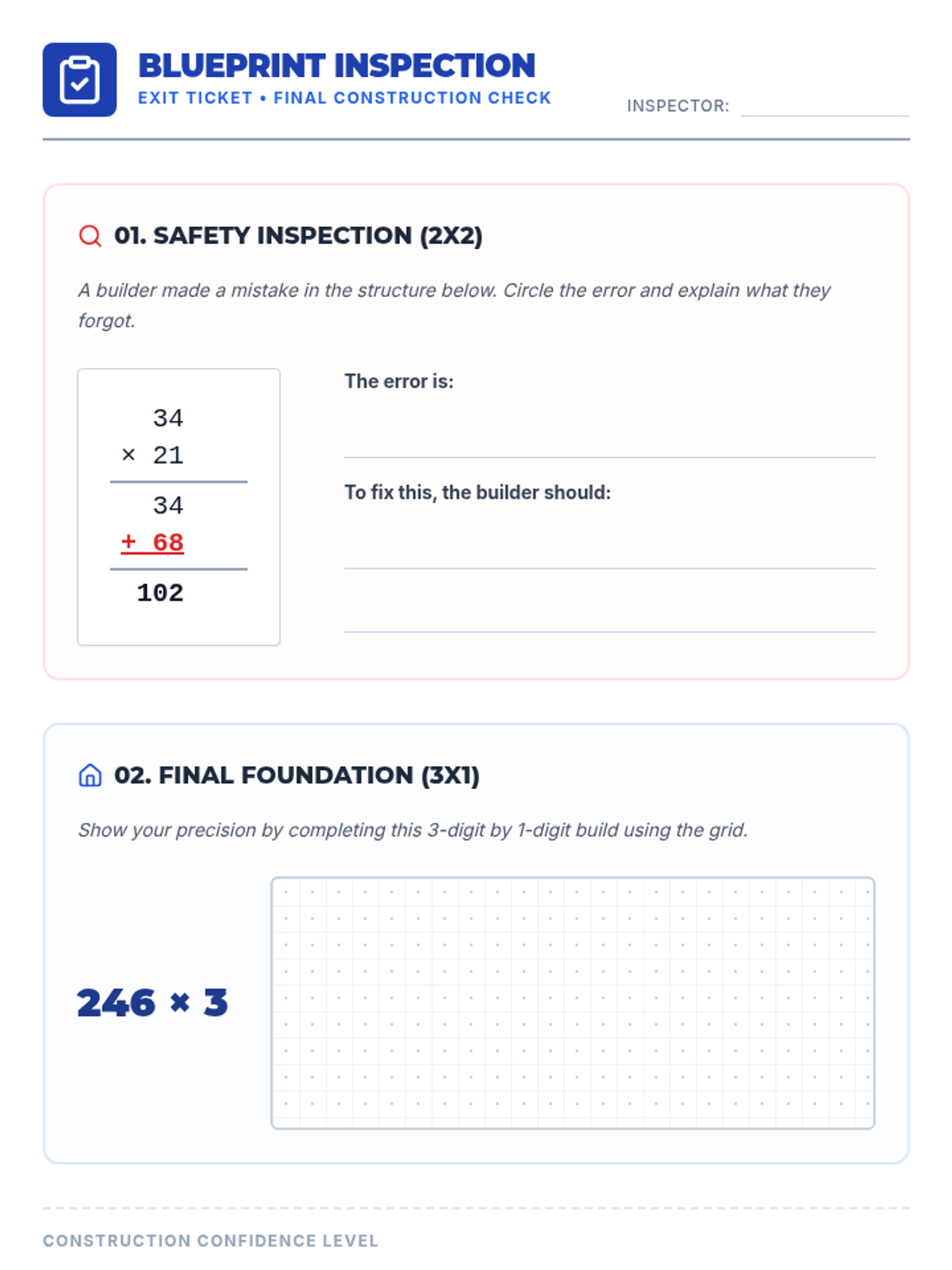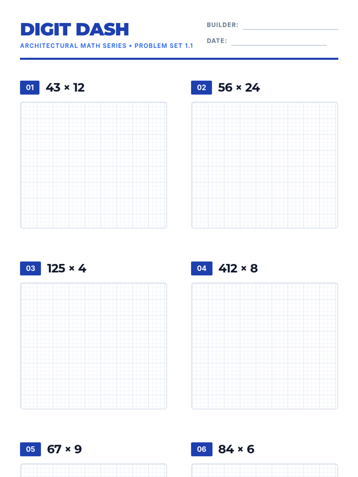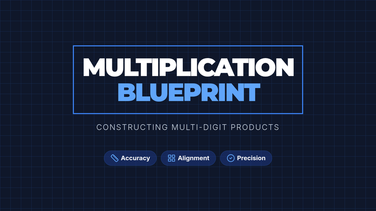 A lesson focused on mastering multi-digit multiplication through organizational strategies, featuring grid-aligned workspaces and procedural checklists to ensure accuracy.