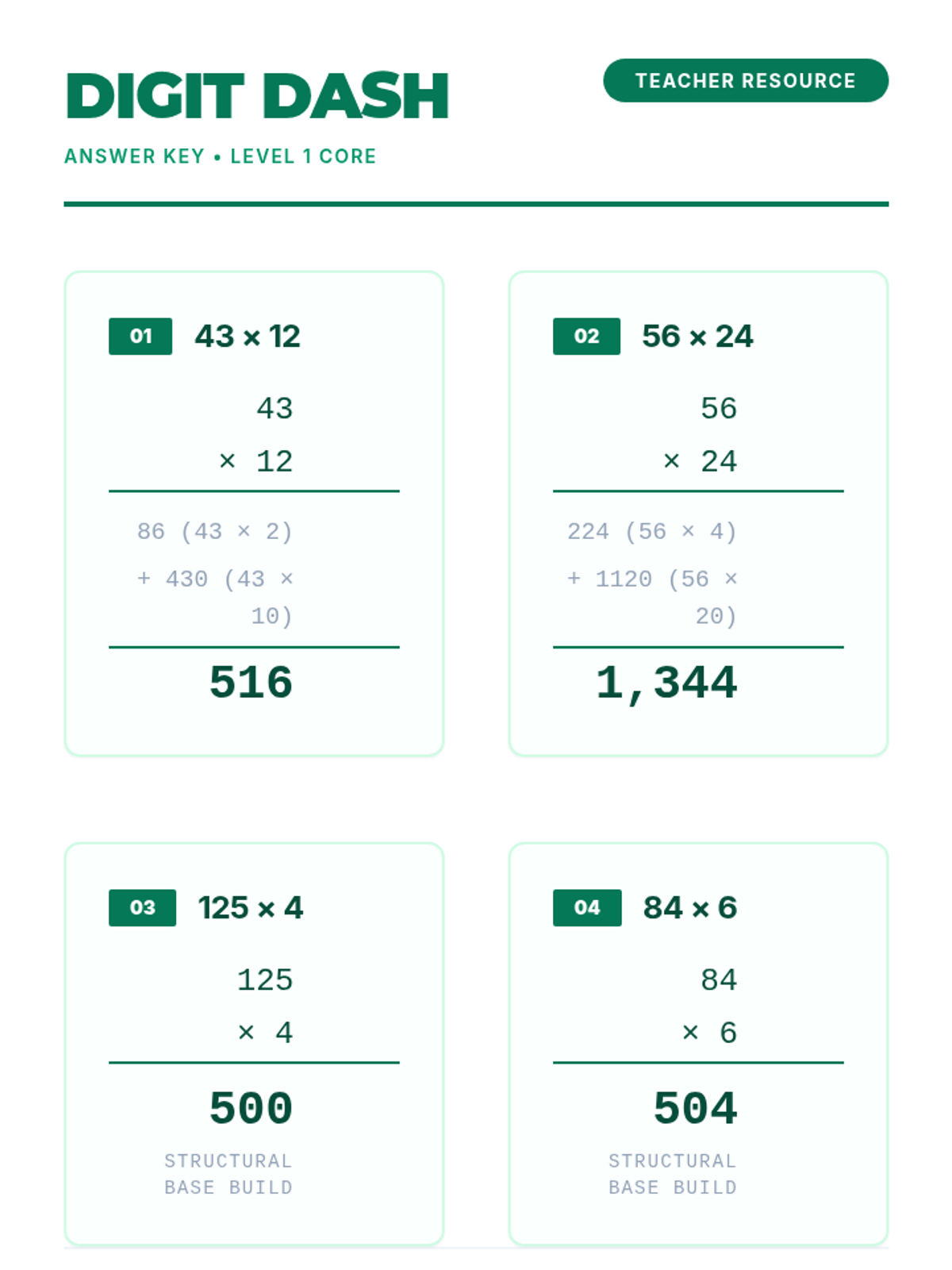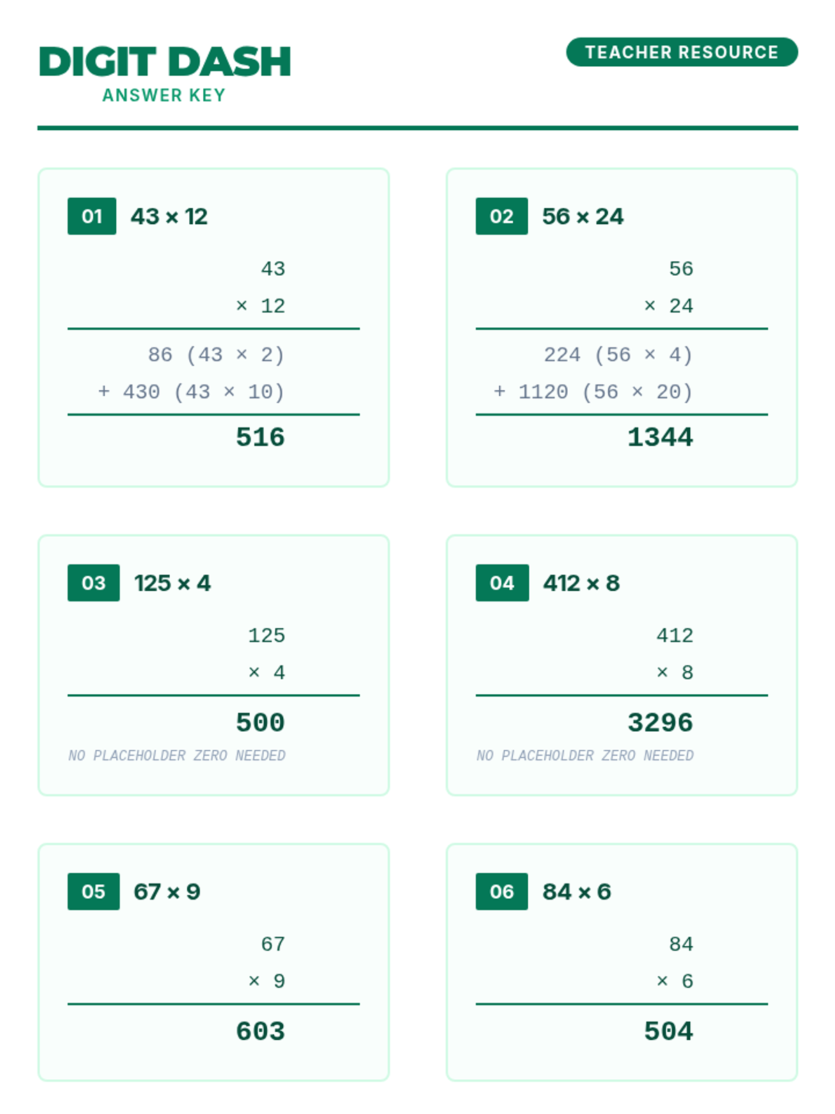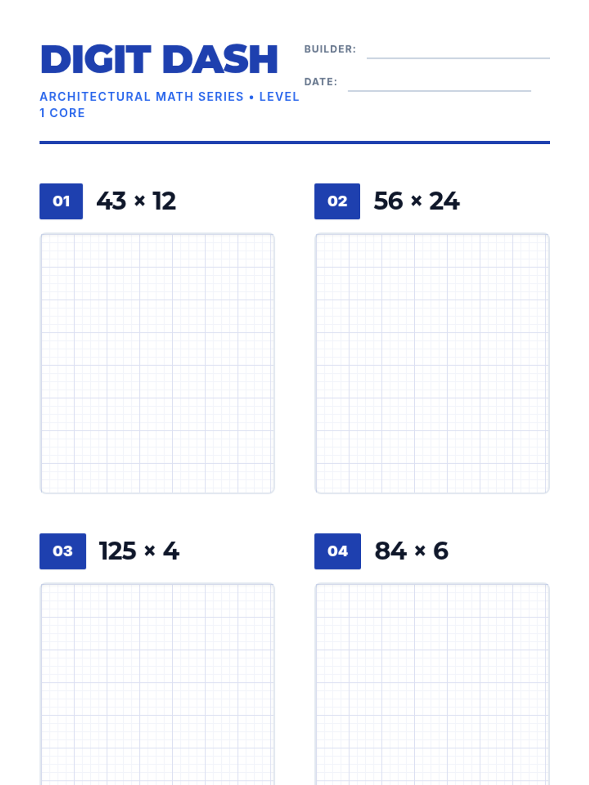 A lesson focused on mastering multi-digit multiplication through organizational strategies, featuring grid-aligned workspaces and procedural checklists to ensure accuracy.