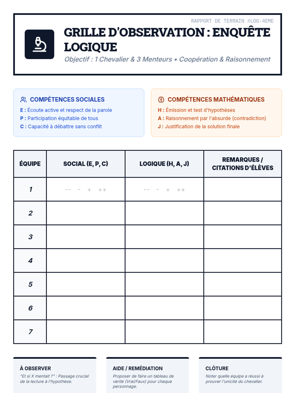 Une séance centrée sur le raisonnement logique et la coopération à travers la résolution de l'énigme des Chevaliers et des Menteurs.
