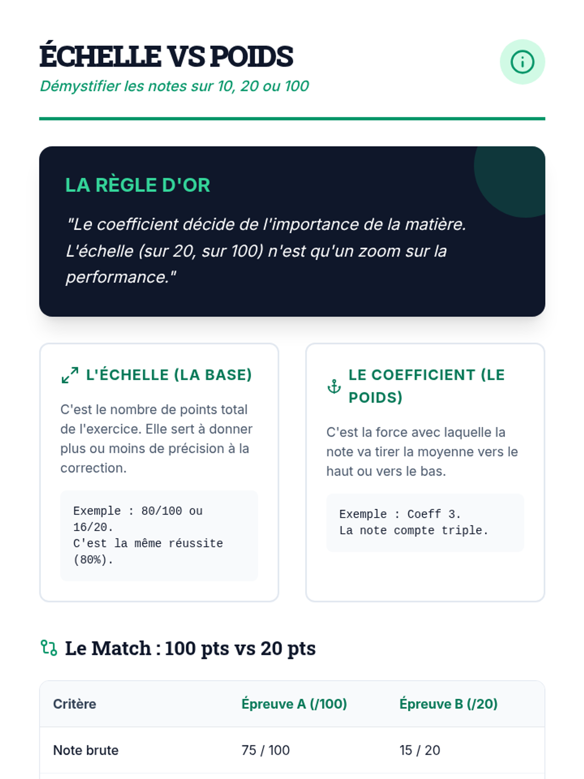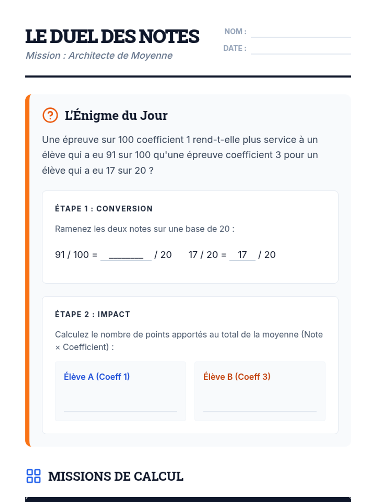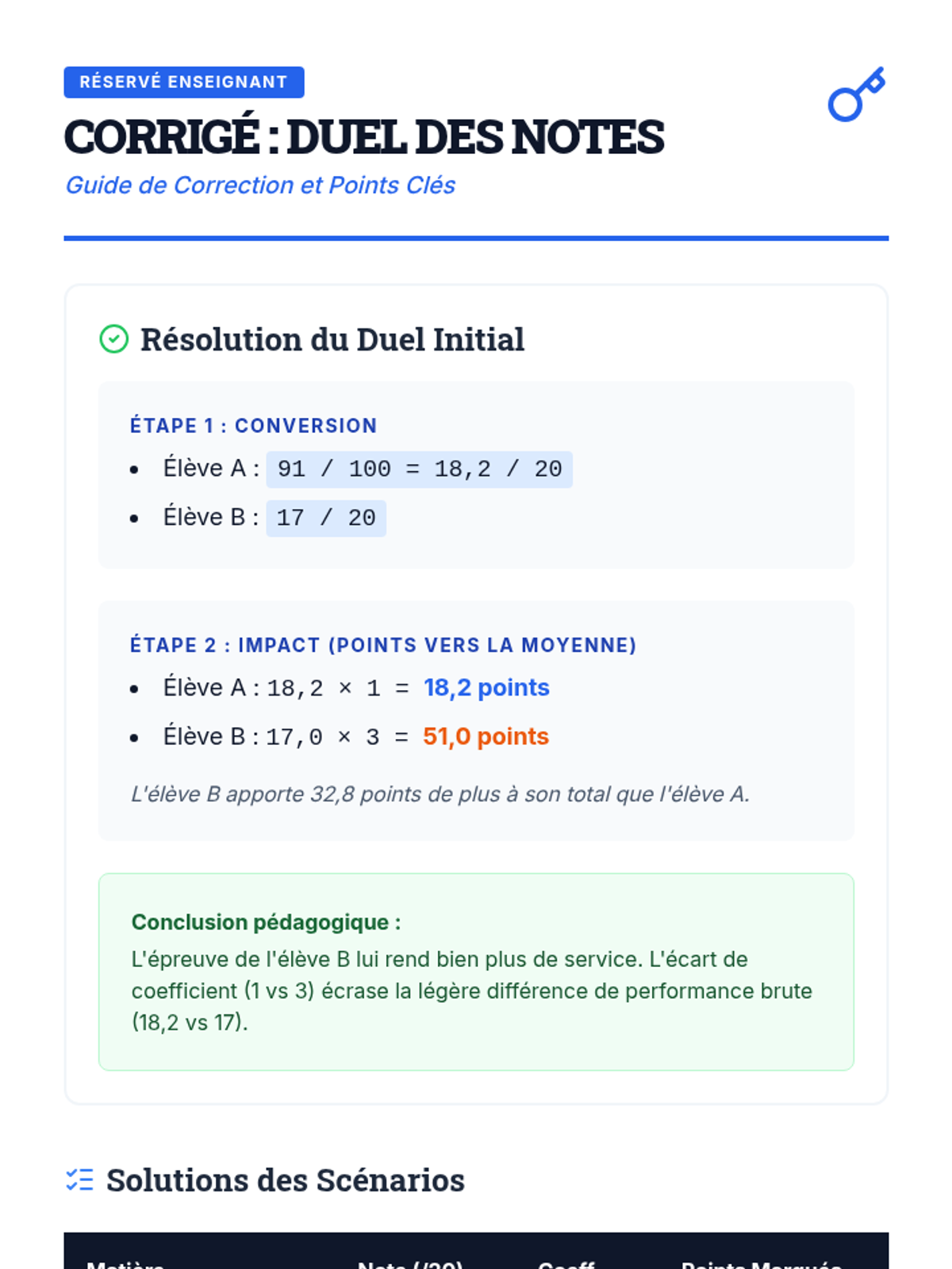 Cette leçon permet aux élèves de calculer et de comparer l'influence des coefficients sur une moyenne générale à travers des scénarios réels.