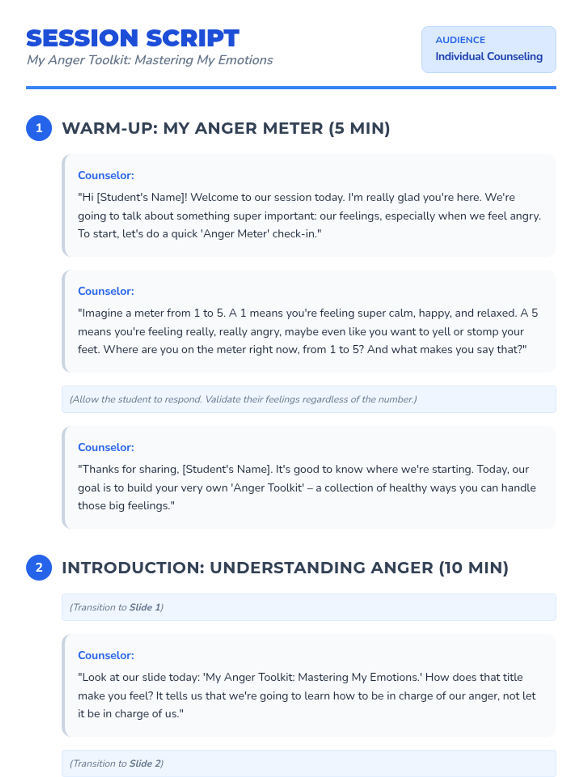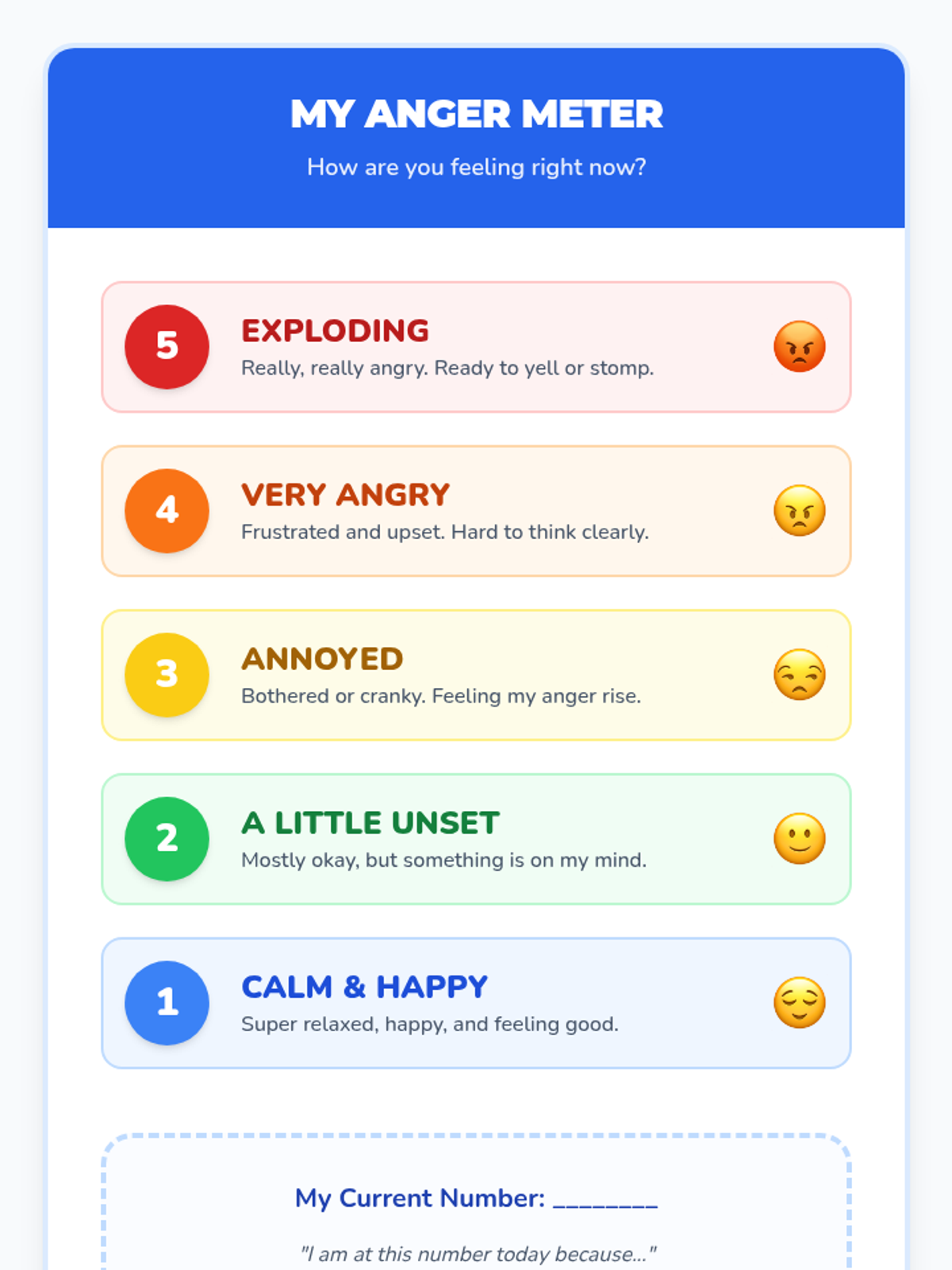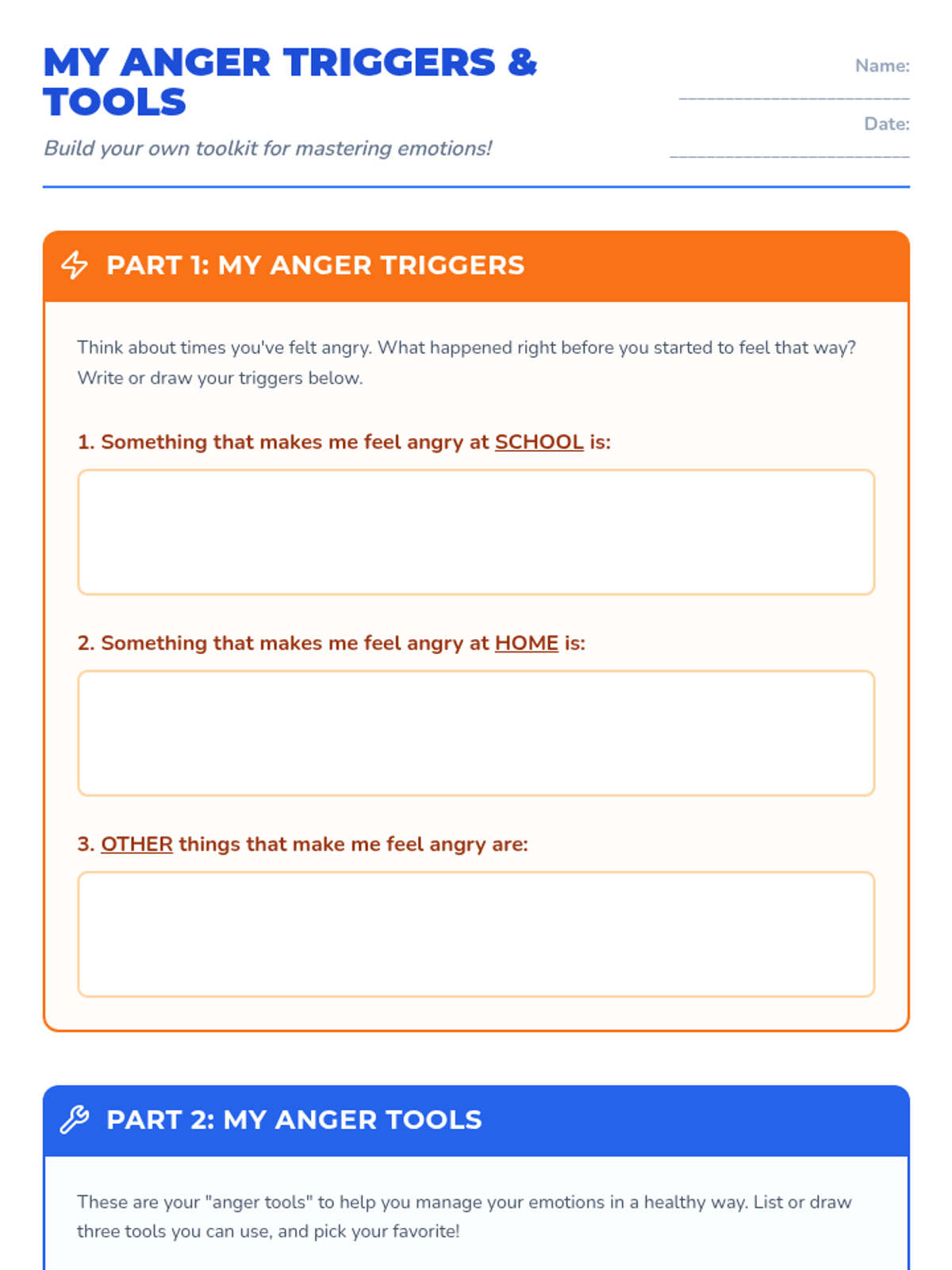 An individual counseling session for 4th-5th graders to identify anger triggers and build a personalized toolkit of coping strategies.