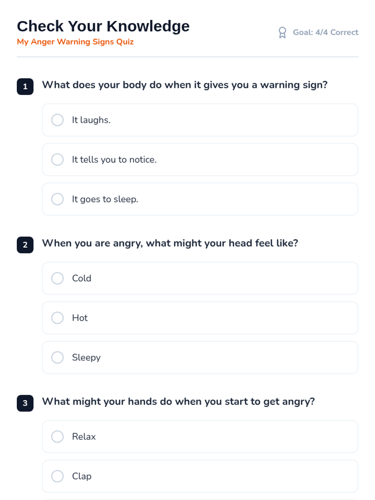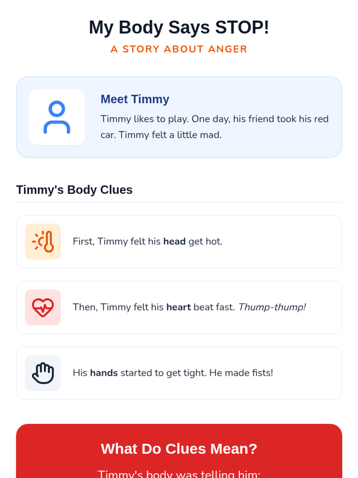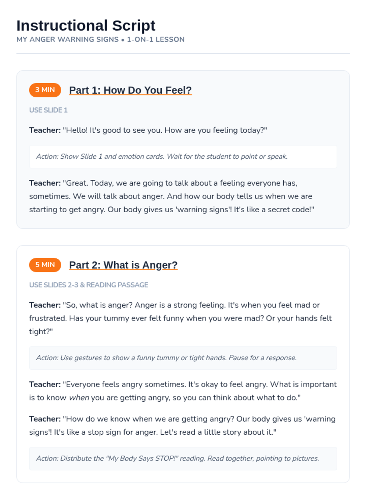 A Tier 3 individual lesson for an adult student with intellectual disabilities to identify personal anger triggers and physical warning signs using simplified, concrete concepts and visual supports.