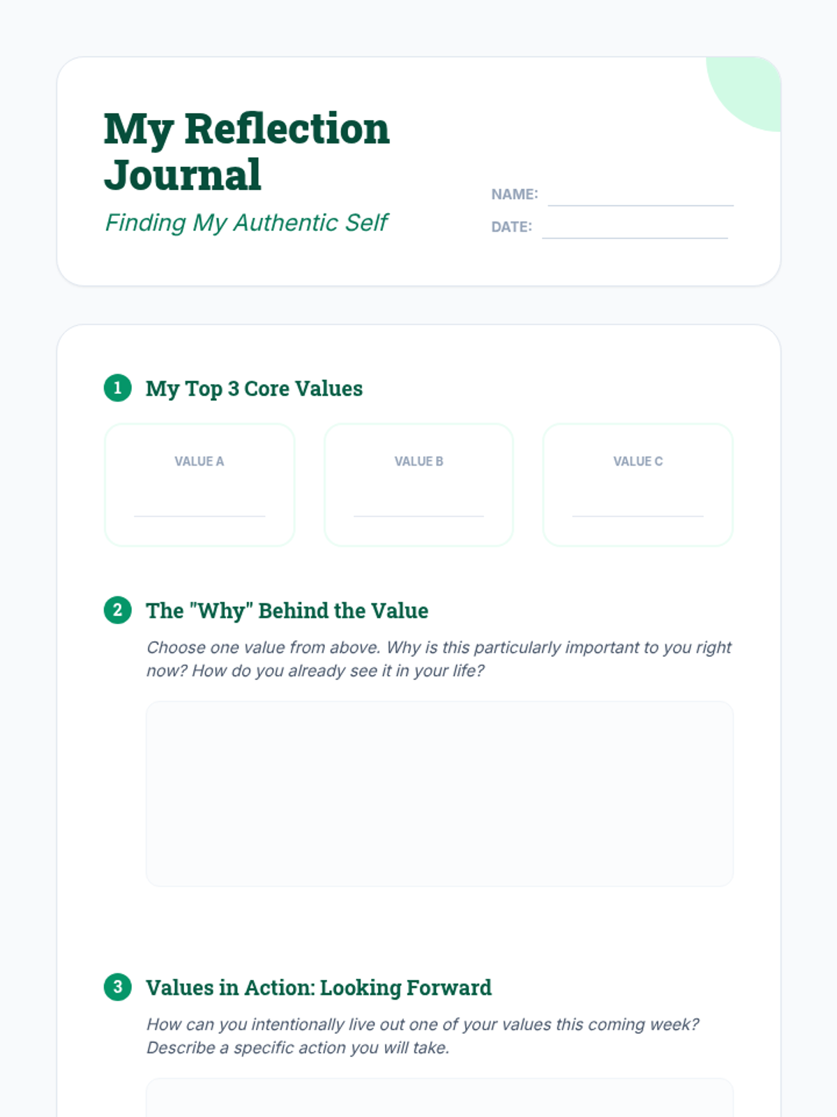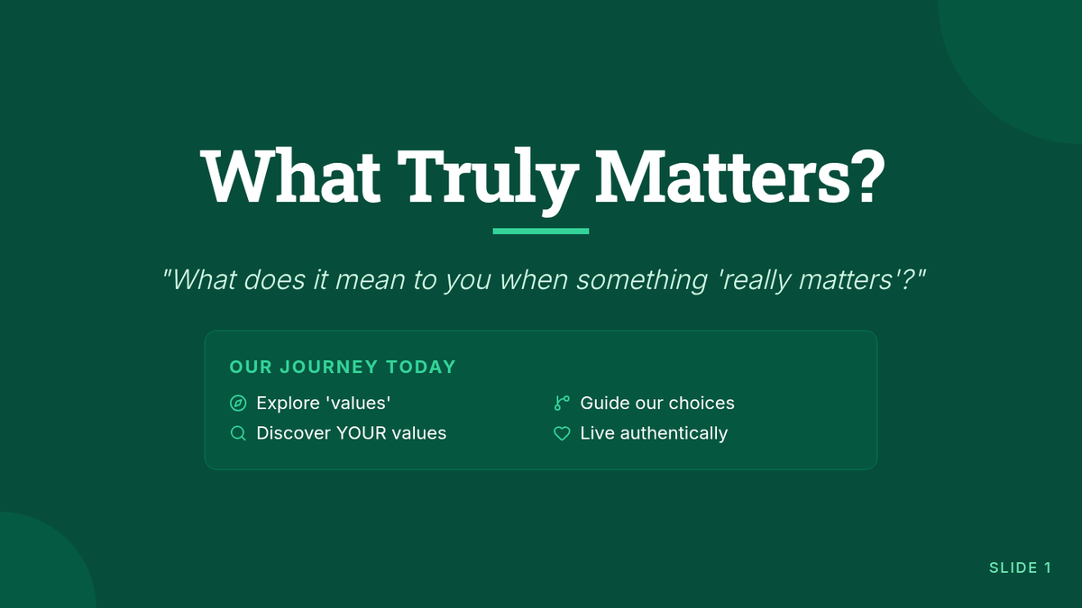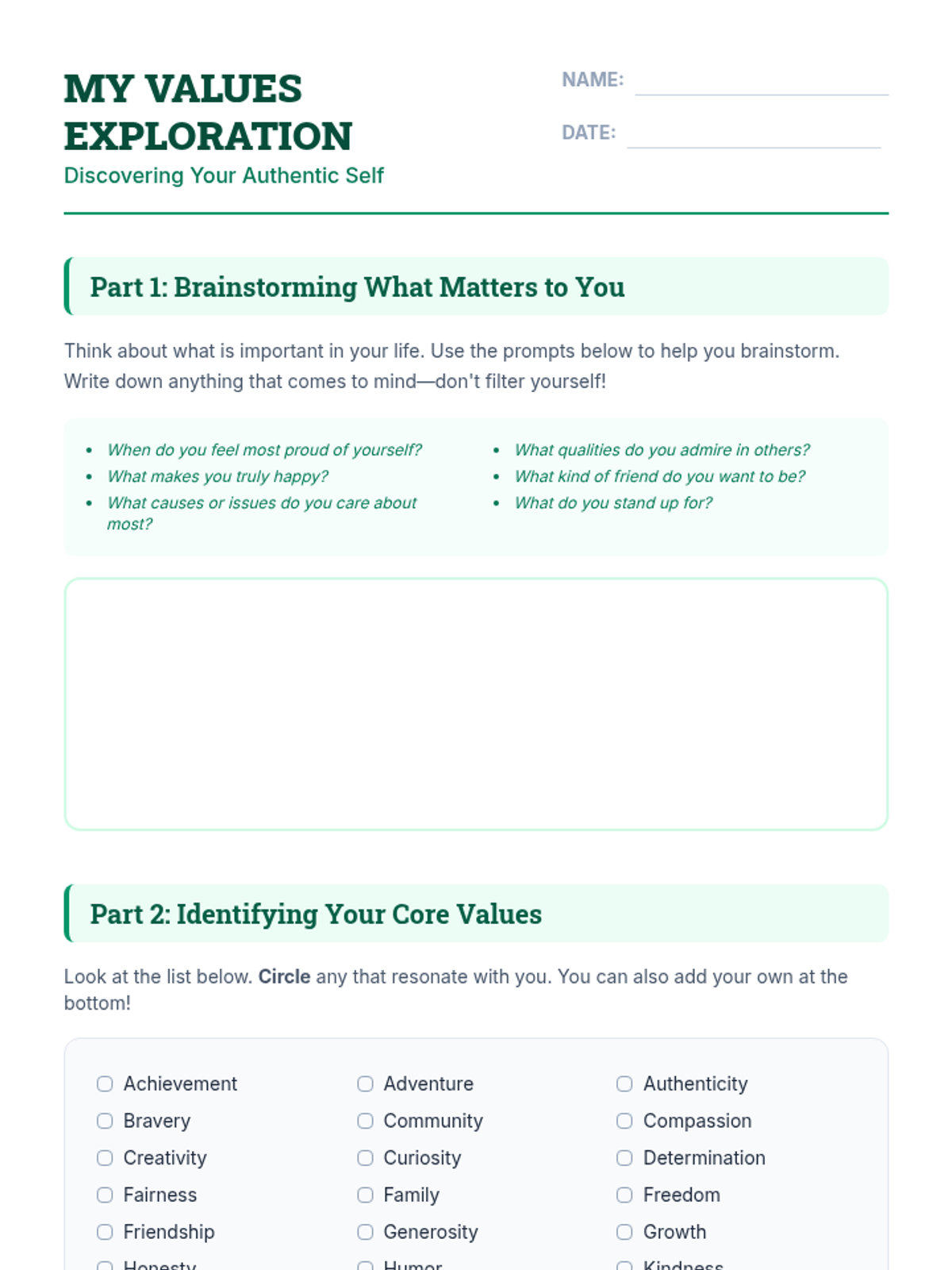 A 60-minute introspective lesson for 8th graders to identify their core personal values, explore how they guide decisions, and commit to living authentically through reflective activities and group scenarios.