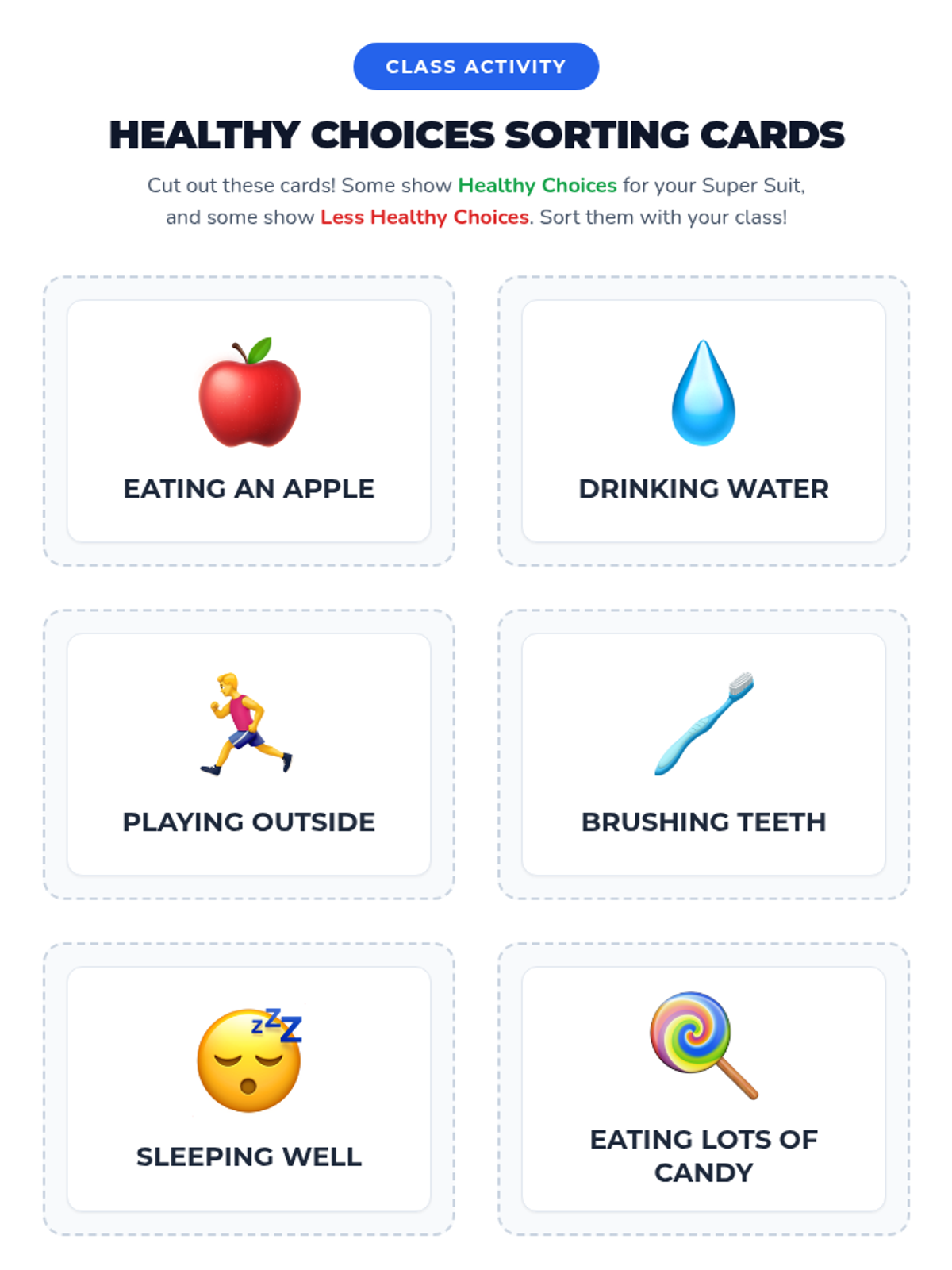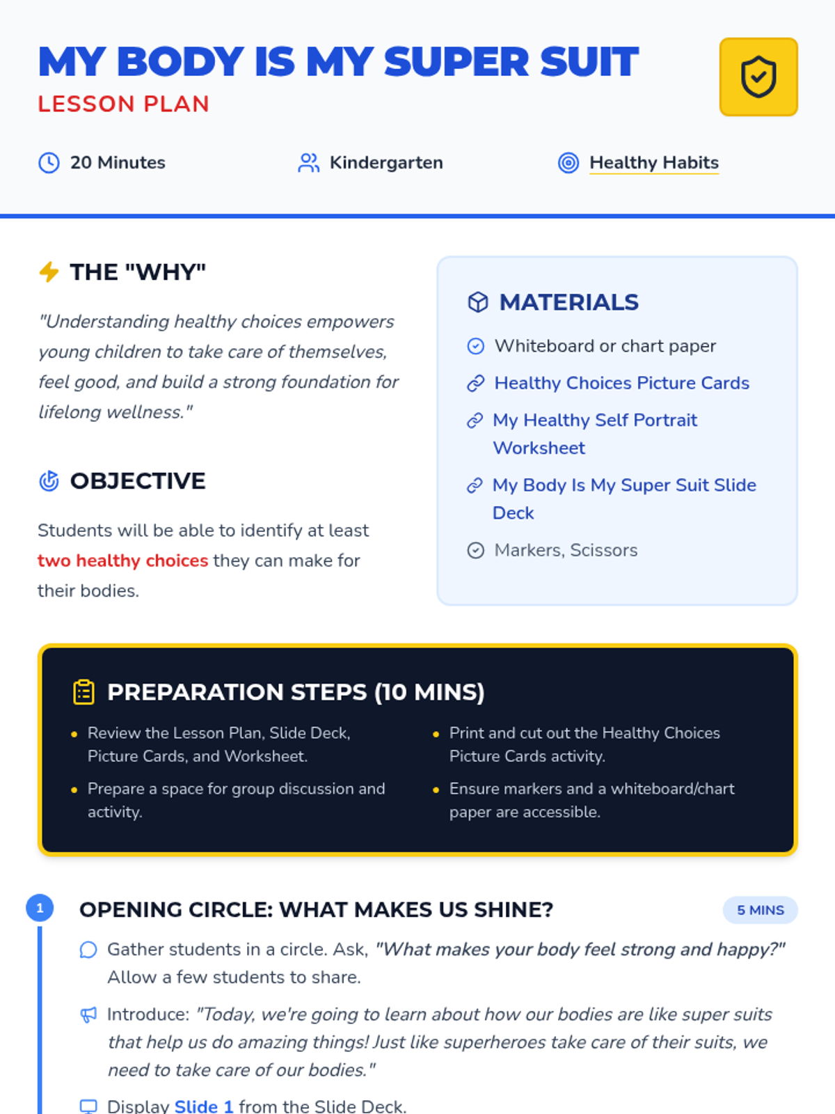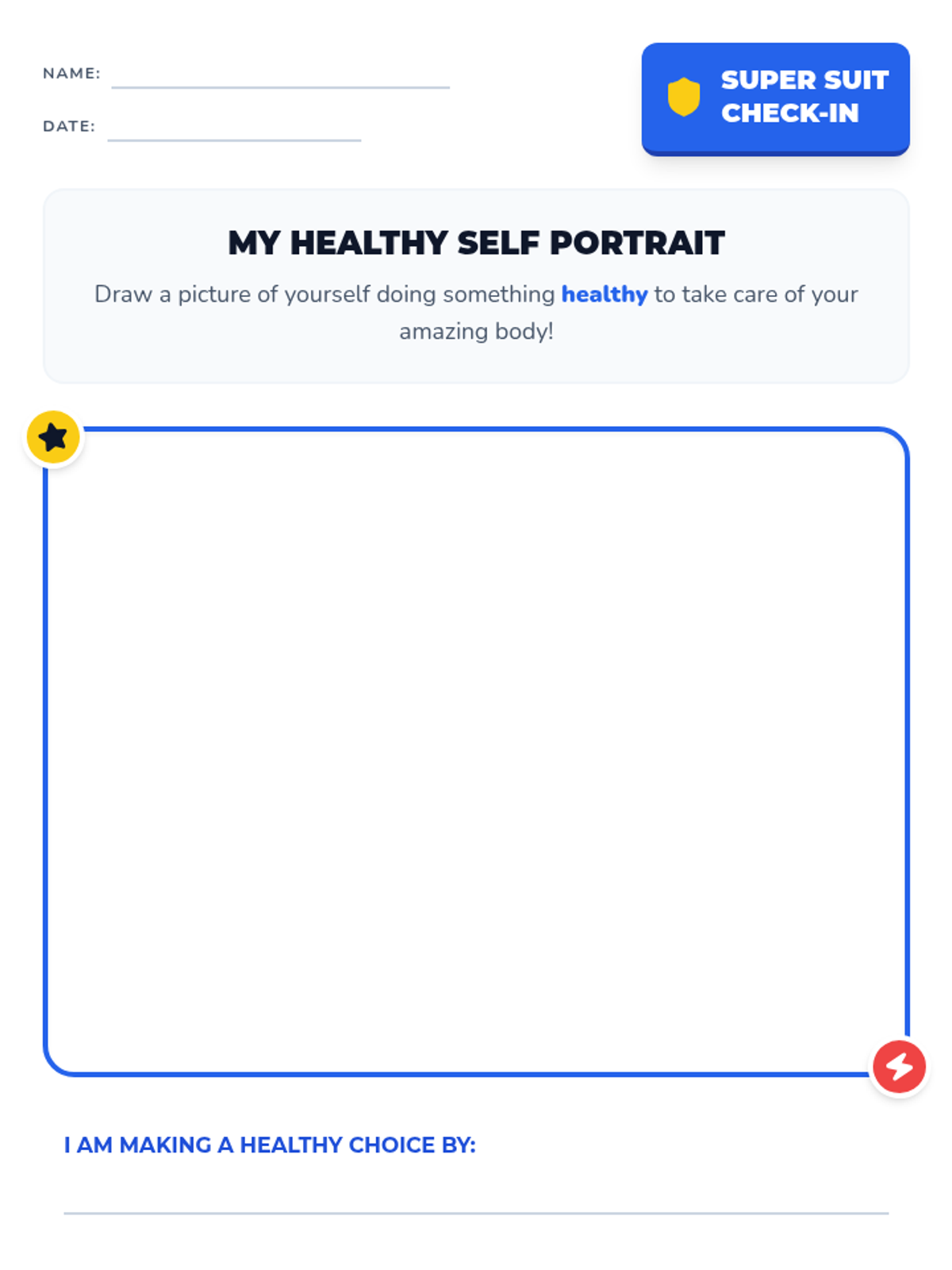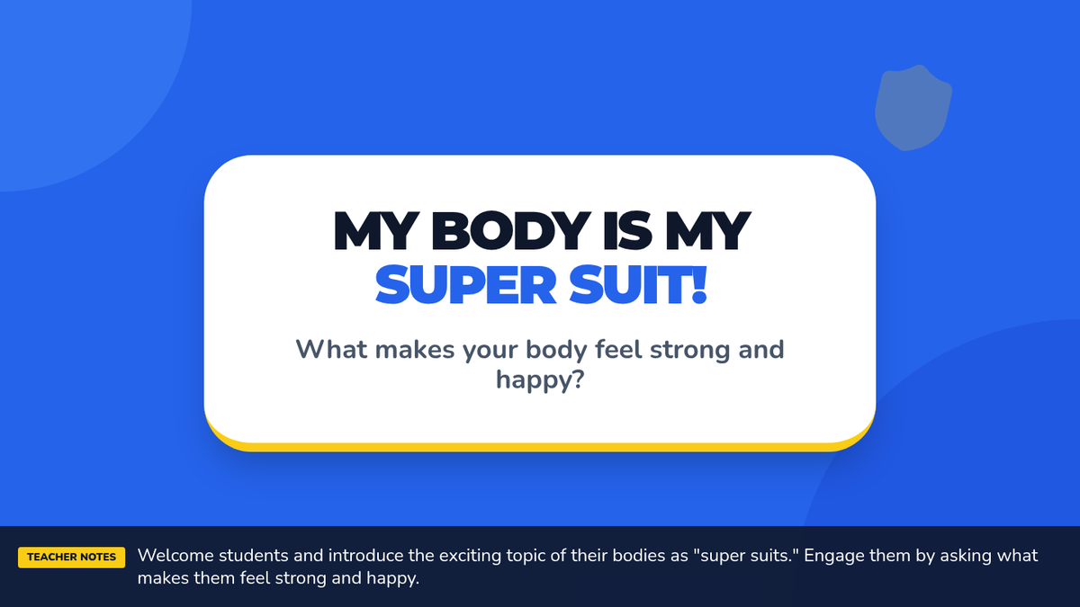 A high-energy 20-minute Kindergarten lesson that uses a superhero theme to teach students about making healthy choices for their bodies. Students will identify healthy habits and commit to taking care of their 'super suits' through interactive sorting and creative drawing.