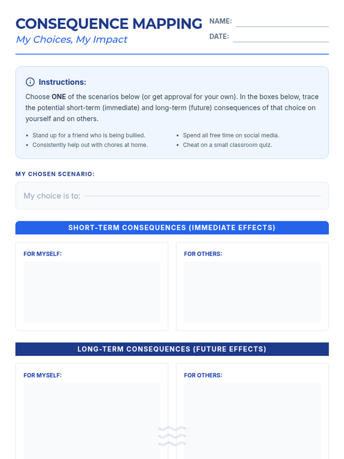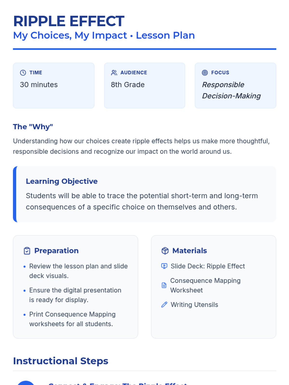 This 30-minute lesson for 8th-grade students explores how personal choices create both short-term and long-term consequences for individuals and their communities, helping them make more thoughtful and responsible decisions.