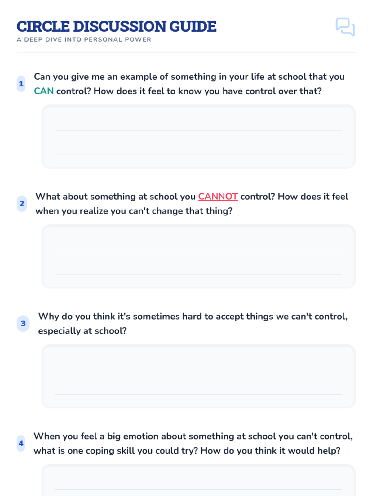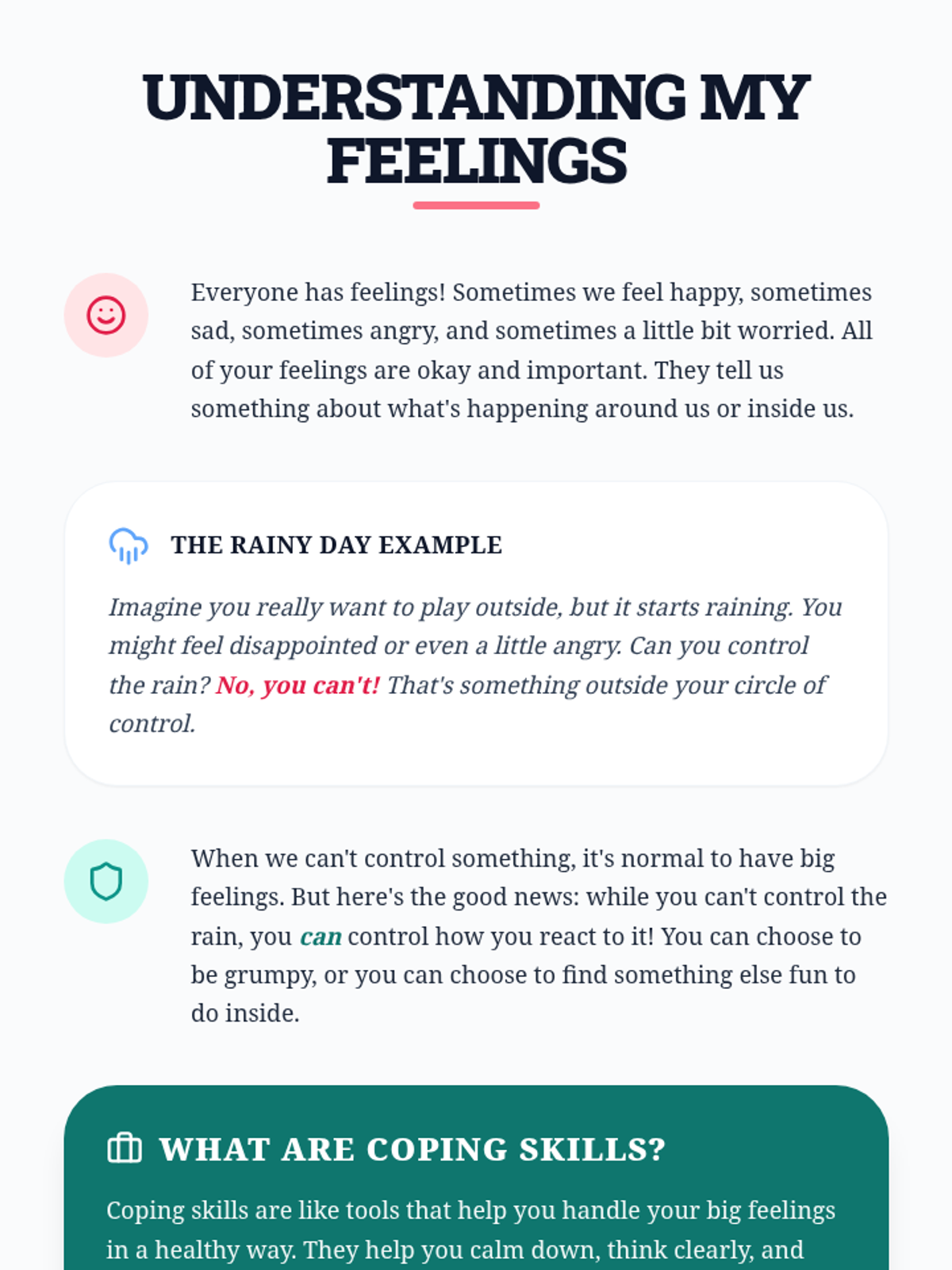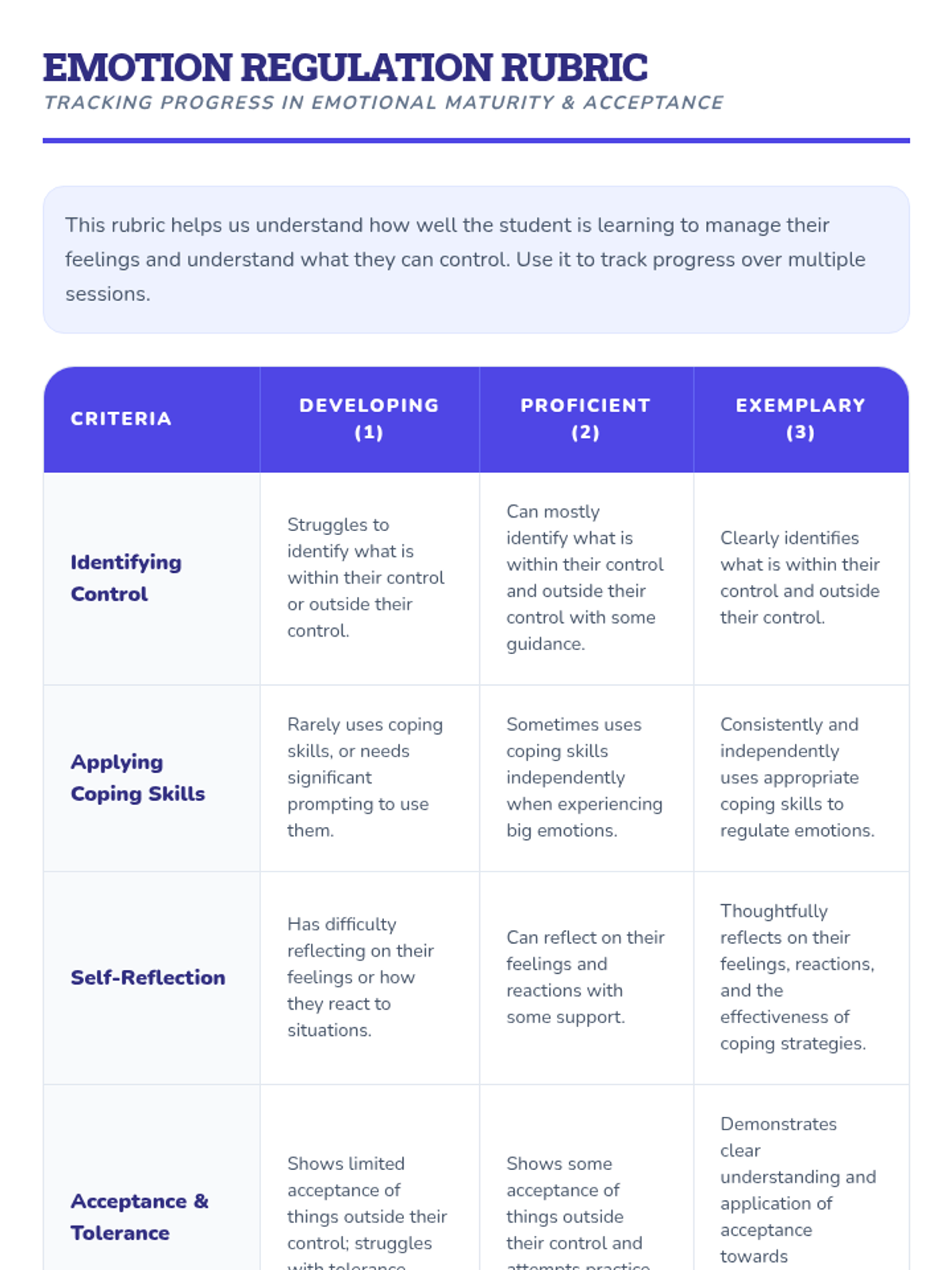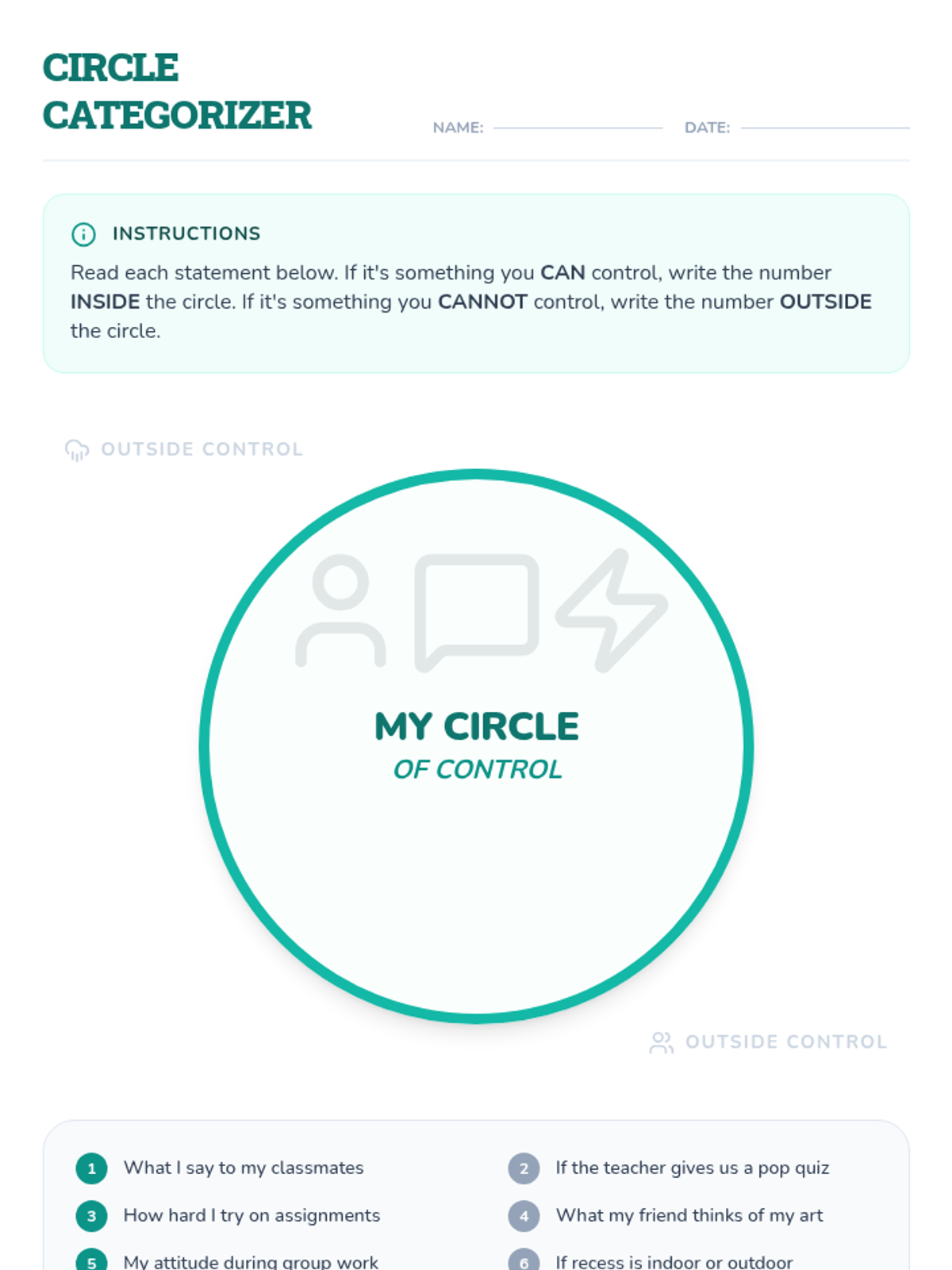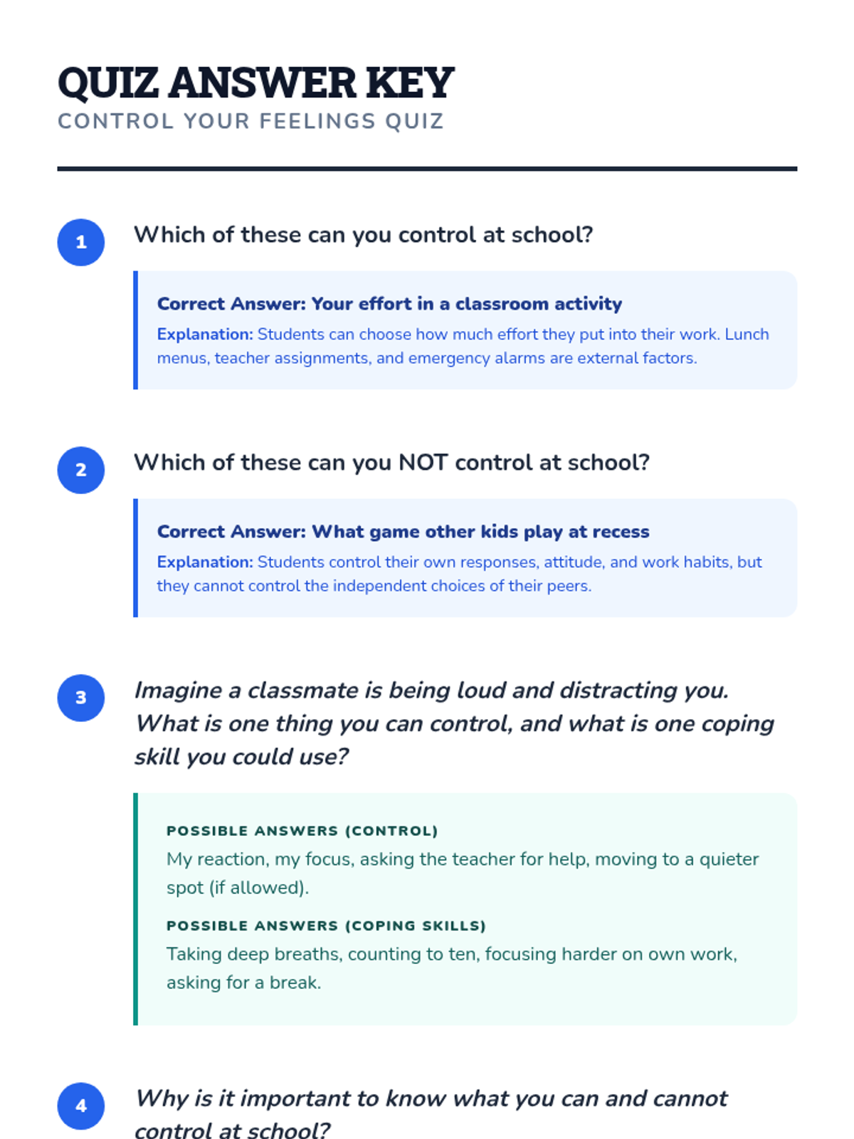 This individual Tier 3 lesson helps 3rd-grade students understand what they can and cannot control, developing acceptance and tolerance skills for emotional regulation. Through interactive discussion and practice, students learn to focus their energy on things they can change and use coping skills for things they cannot.