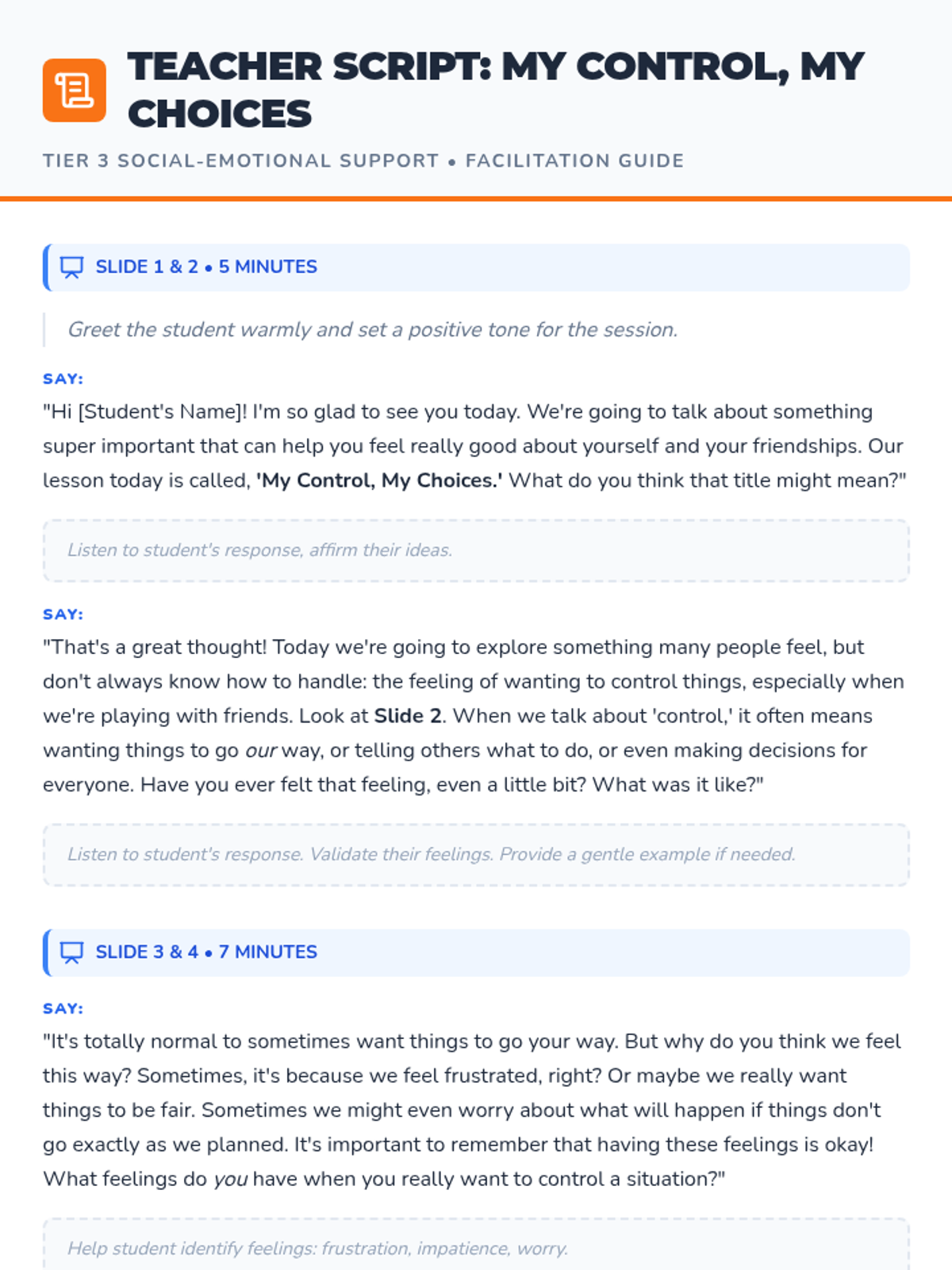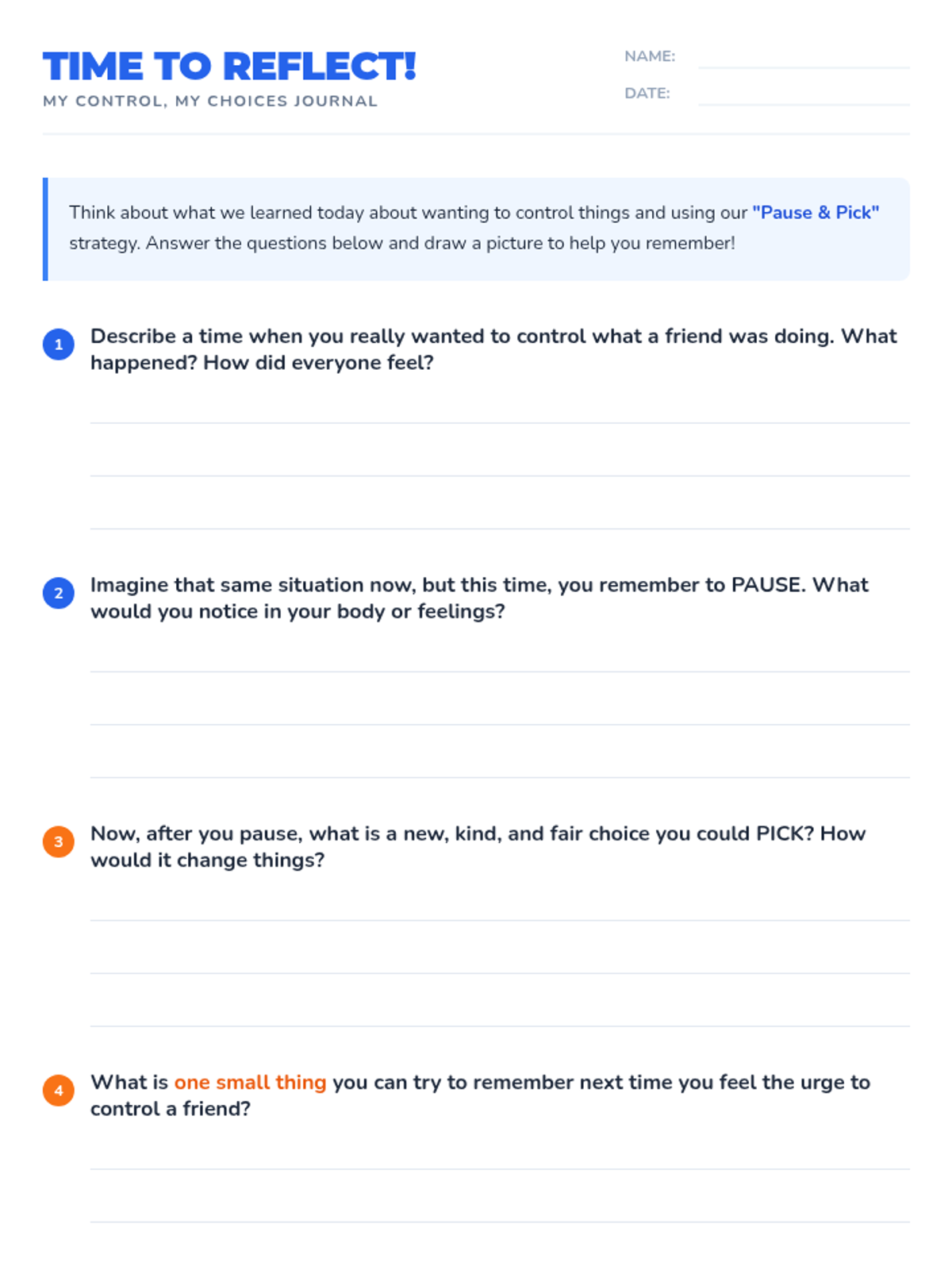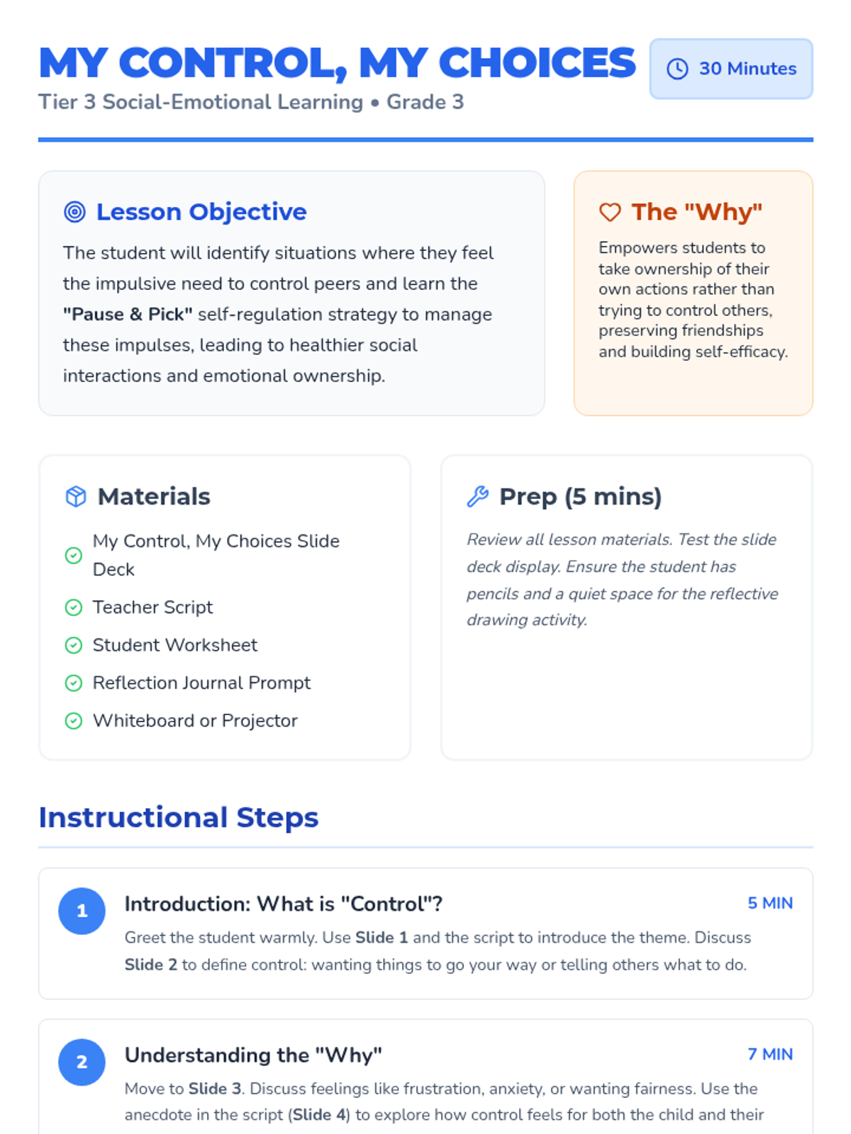 A Tier 3 lesson for 3rd-grade students focused on managing impulsive control of peers using the 'Pause & Pick' strategy to foster healthier social interactions and self-regulation.