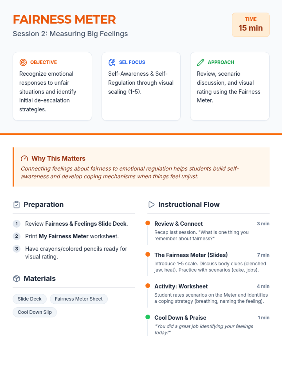Connecting feelings about fairness to emotional regulation helps students build self-awareness and develop coping mechanisms when things feel unjust.