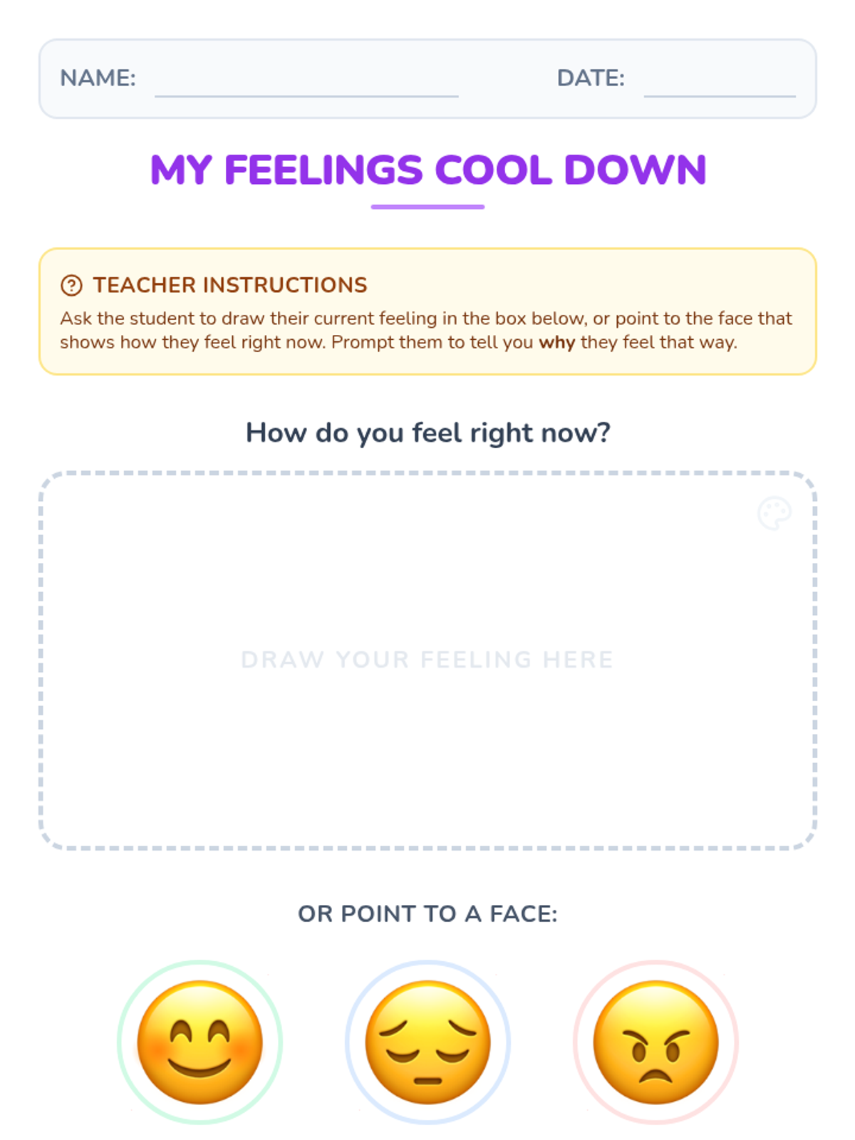 A set of practical, visual resources designed to help students identify their emotional state and select appropriate self-regulation strategies based on the Zones of Regulation framework.