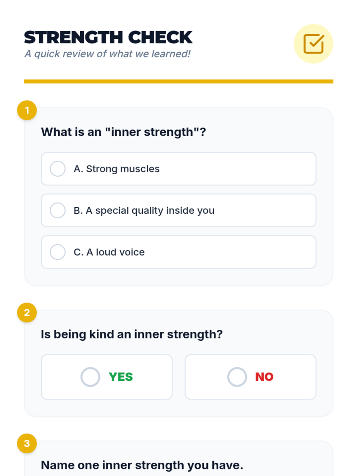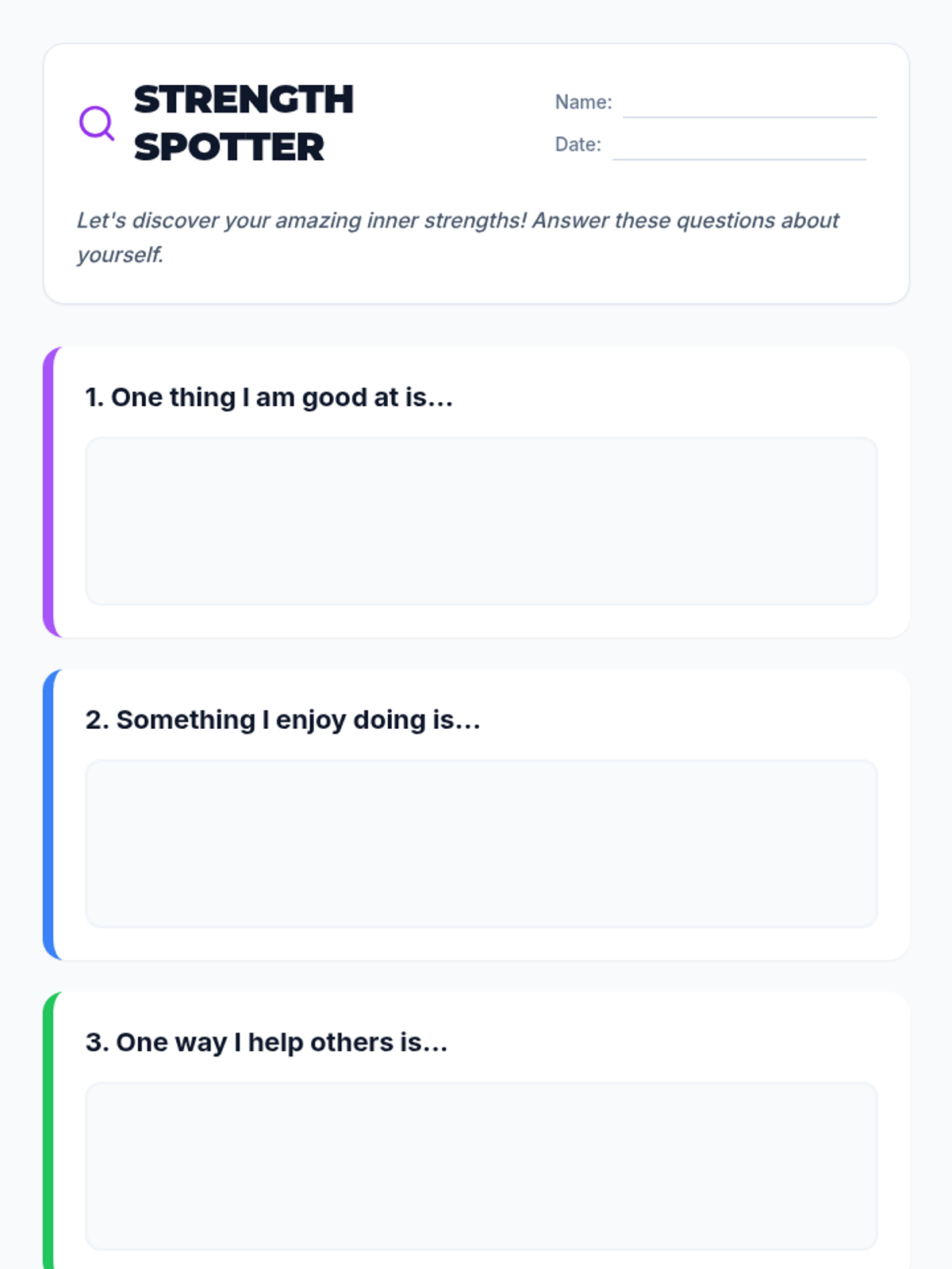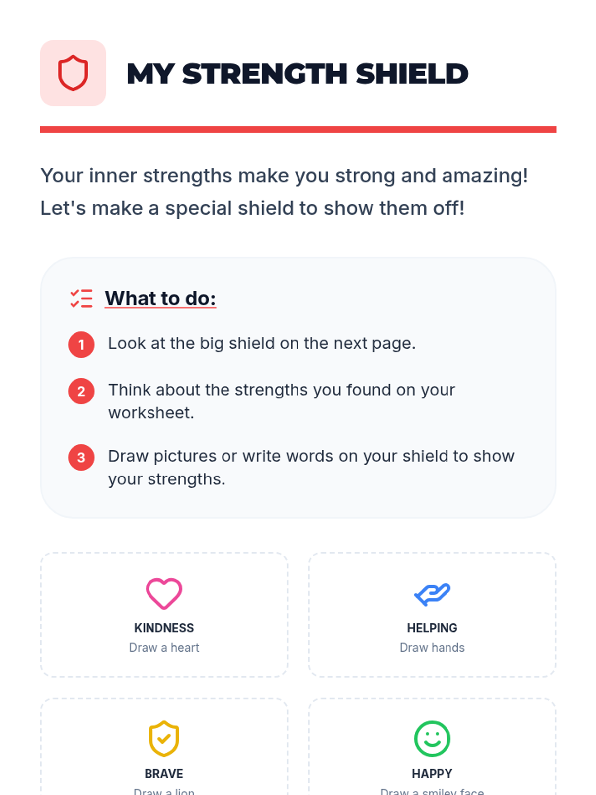 This 30-minute individual lesson for an 18-year-old student with intellectual disabilities focuses on identifying and appreciating personal strengths and positive qualities. Through guided discussion and creative activities, the student learns to shift focus away from health conditions and toward their unique 'inner superpowers'.