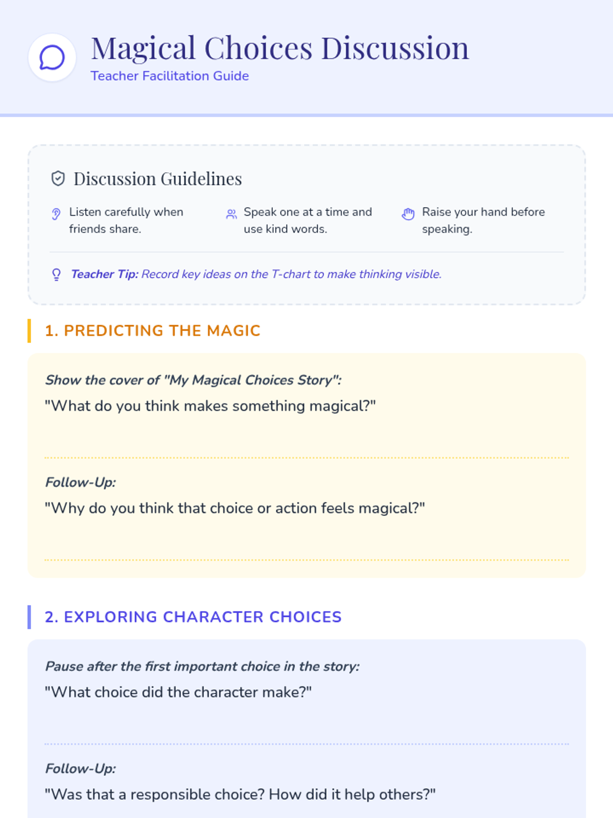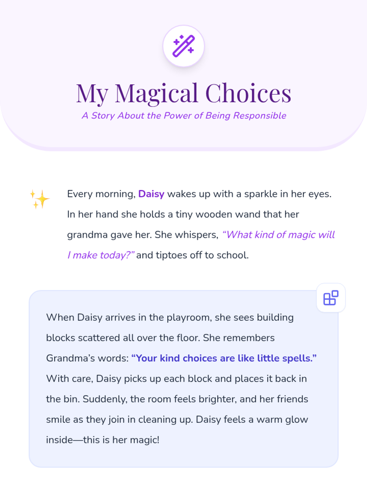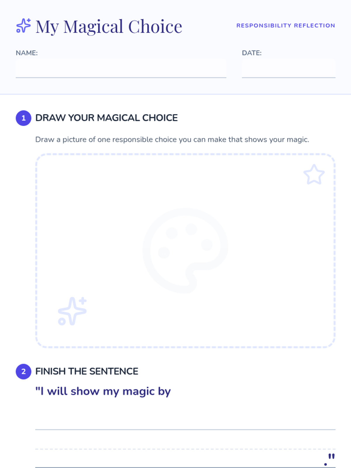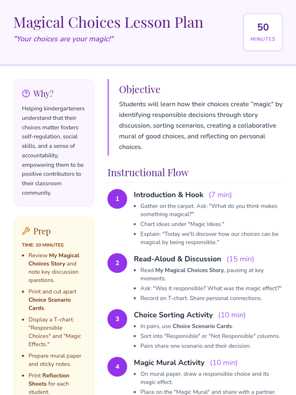 In this engaging kindergarten lesson, students explore how their choices make them responsible citizens through a fun read-aloud and hands-on activity. This session builds decision-making skills and personal responsibility while celebrating each child’s unique magic.