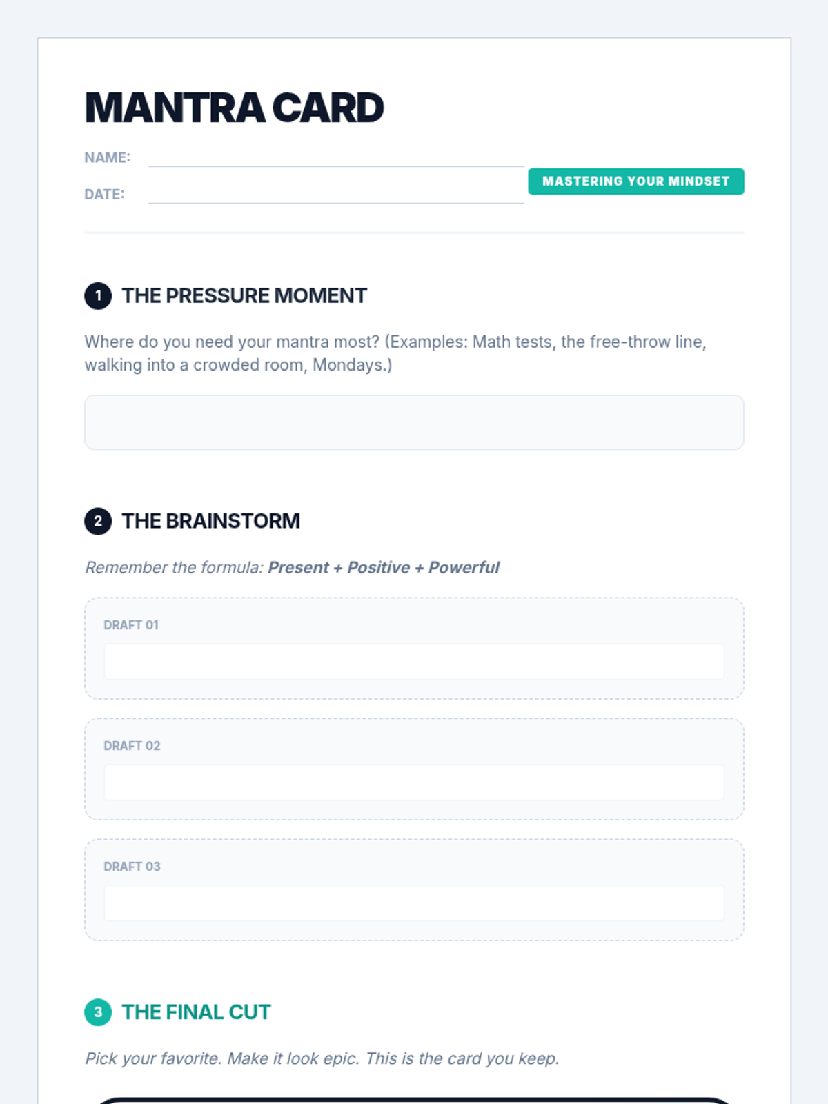 Focuses on managing the pressure of grades, tests, and academic expectations through reframing and realistic goal-setting.