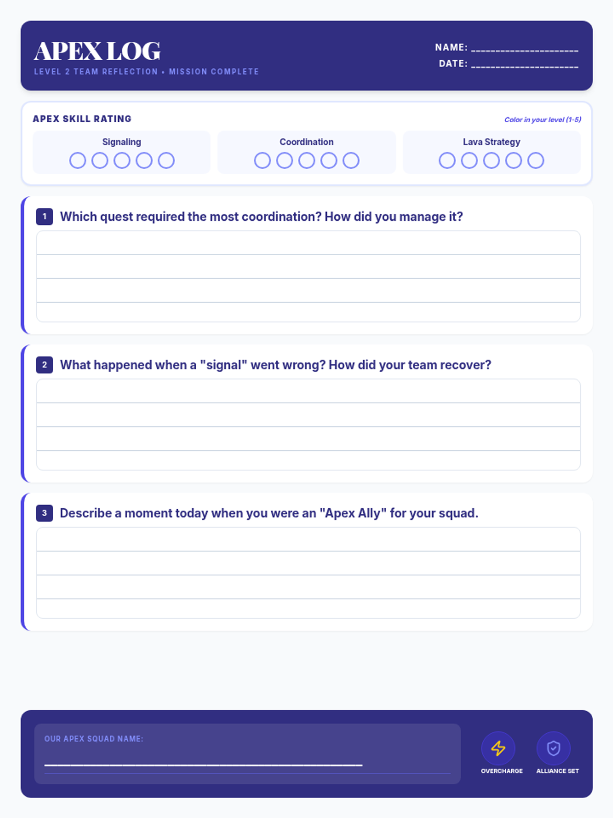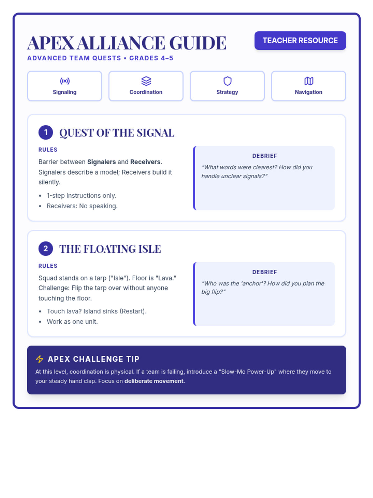 A second set of three 15-minute quests focused on advanced coordination, clear signaling, and group problem-solving under pressure.