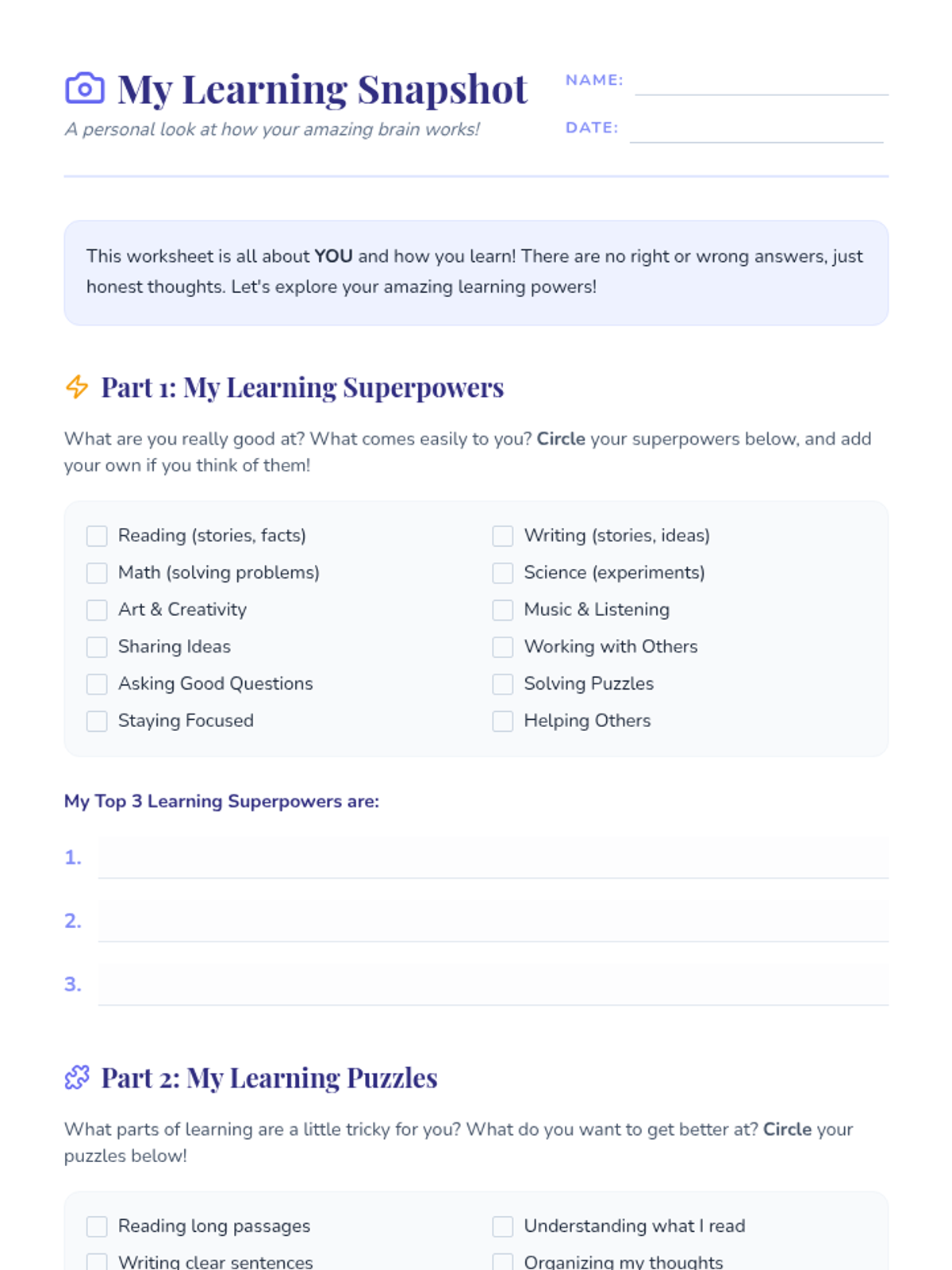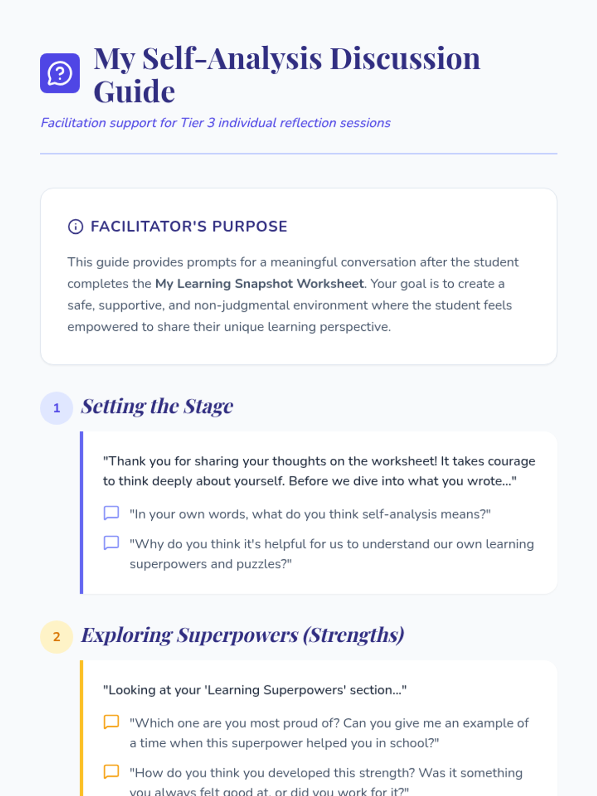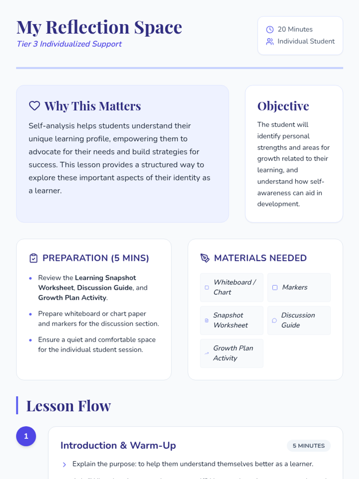 A 20-minute Tier 3 lesson for individual students with learning disabilities to explore their strengths and areas for growth through structured self-analysis.