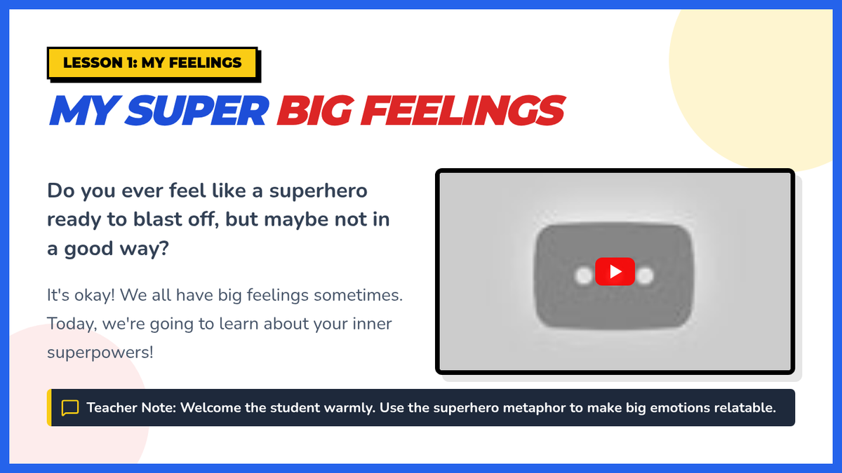 A lesson focused on identifying and navigating core emotions through real-world scenarios and guided reflection.