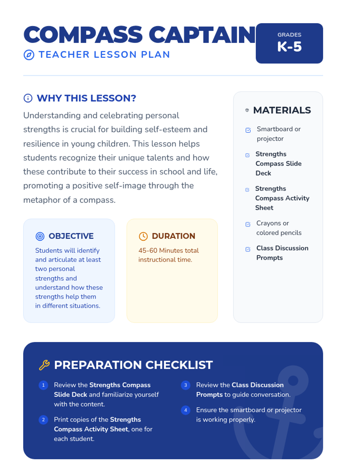 A social-emotional learning lesson for Grades K-5 that uses the metaphor of a compass to help students identify, celebrate, and apply their unique personal strengths.
