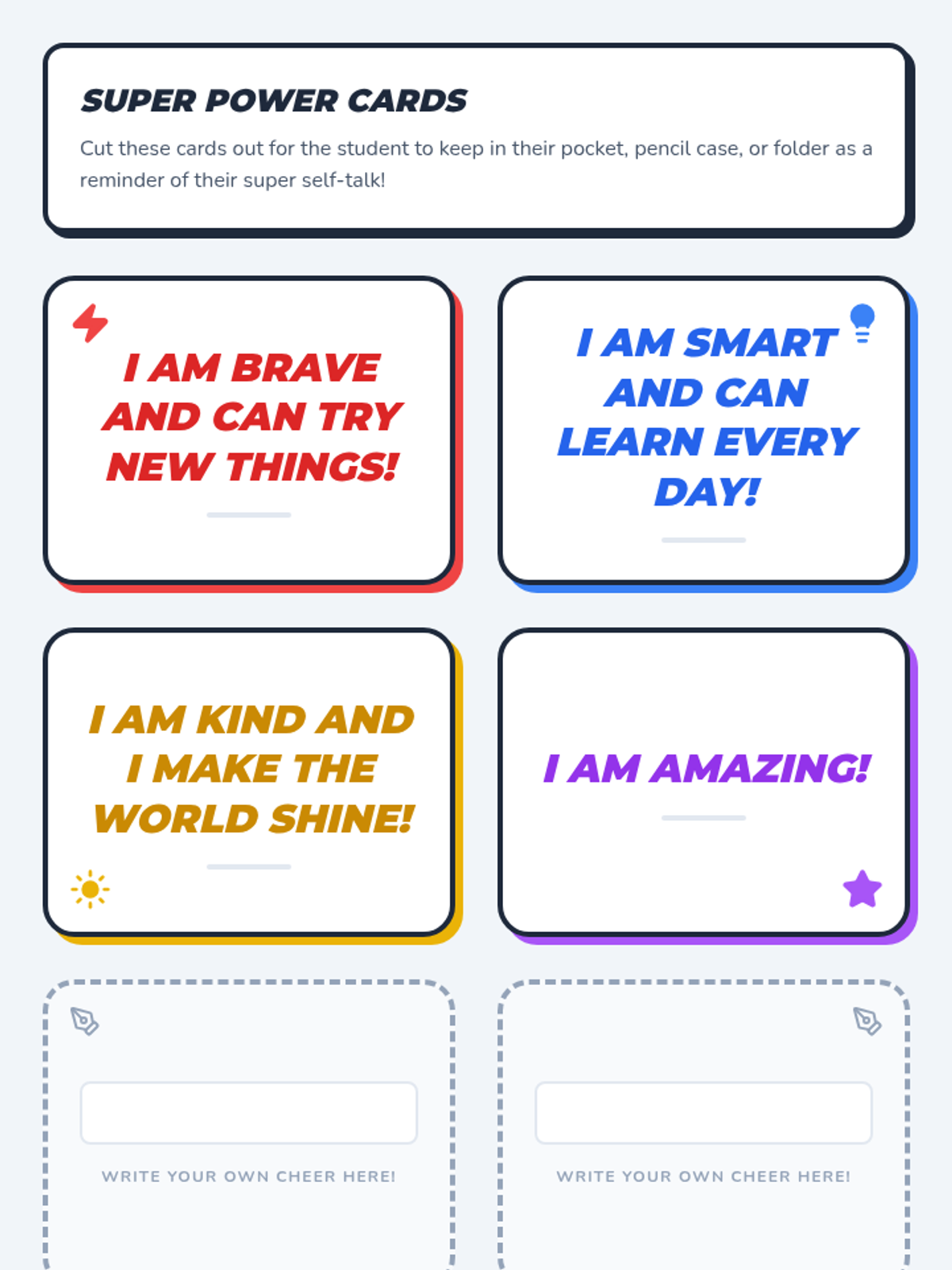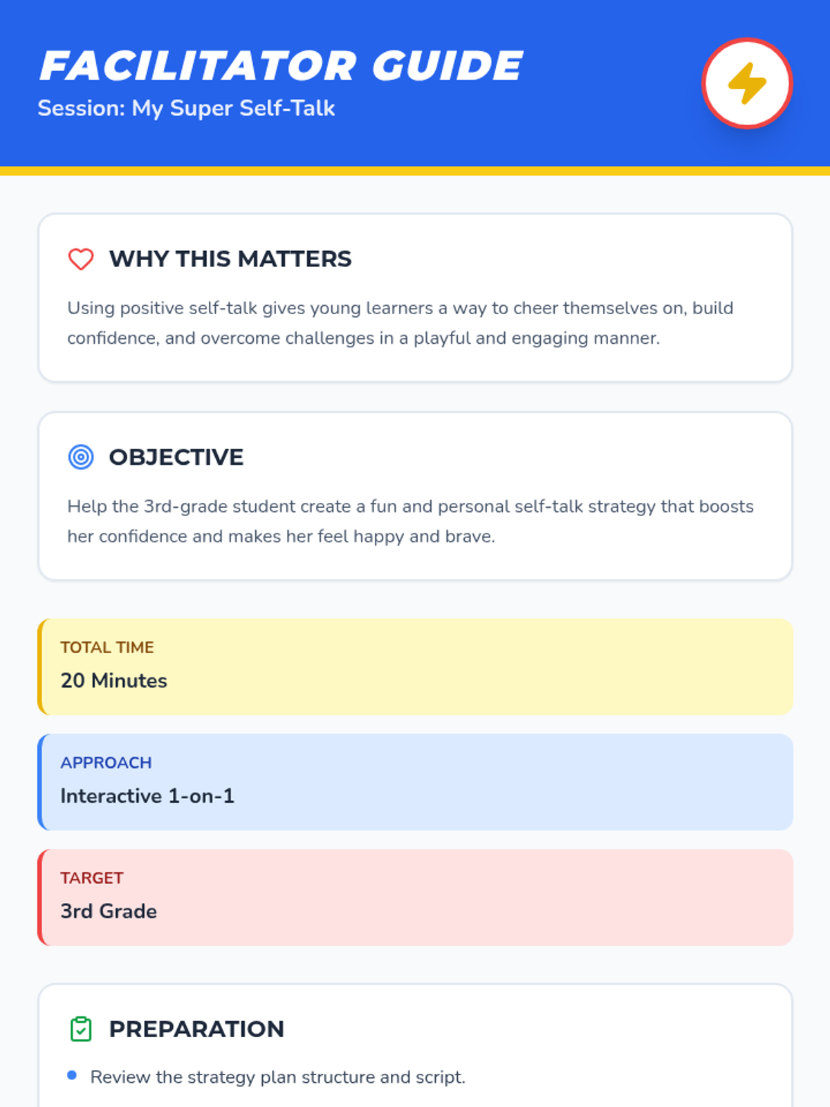 A one-on-one Tier 3 intervention designed to help 3rd-grade students build confidence through a personalized positive self-talk strategy using a fun superhero theme.