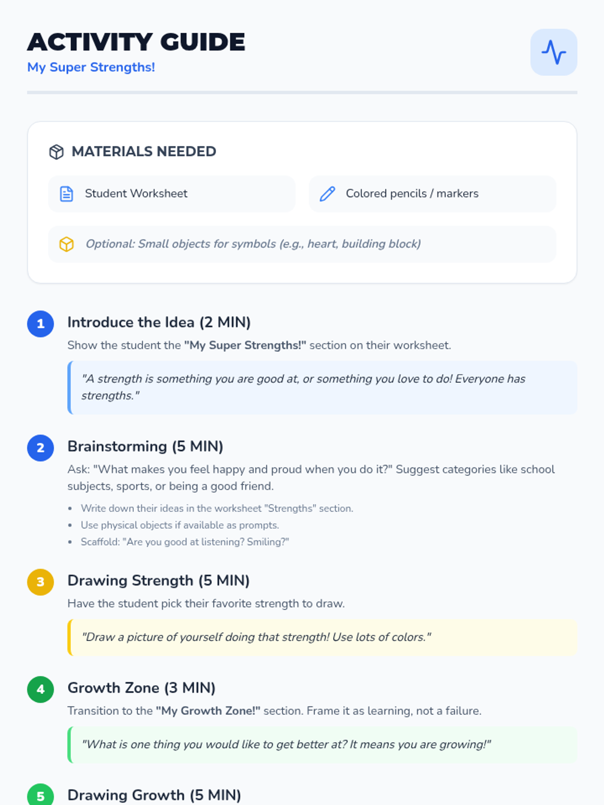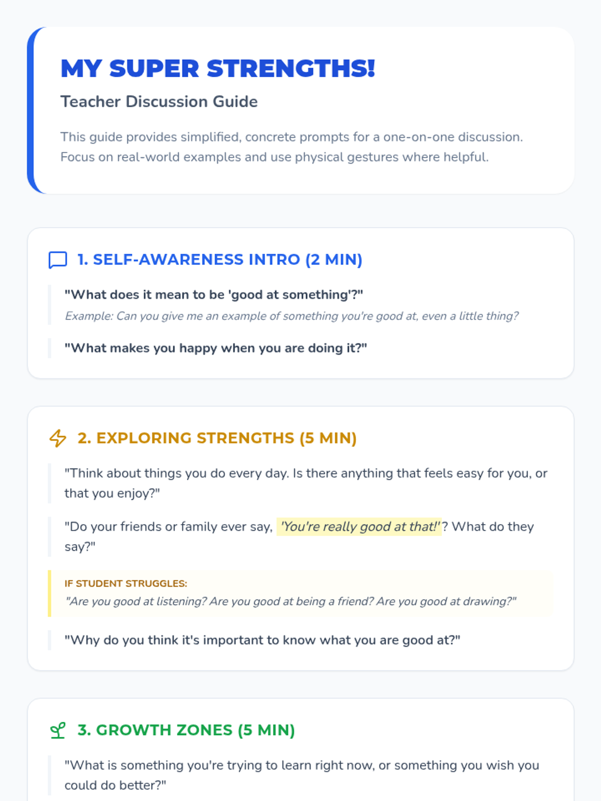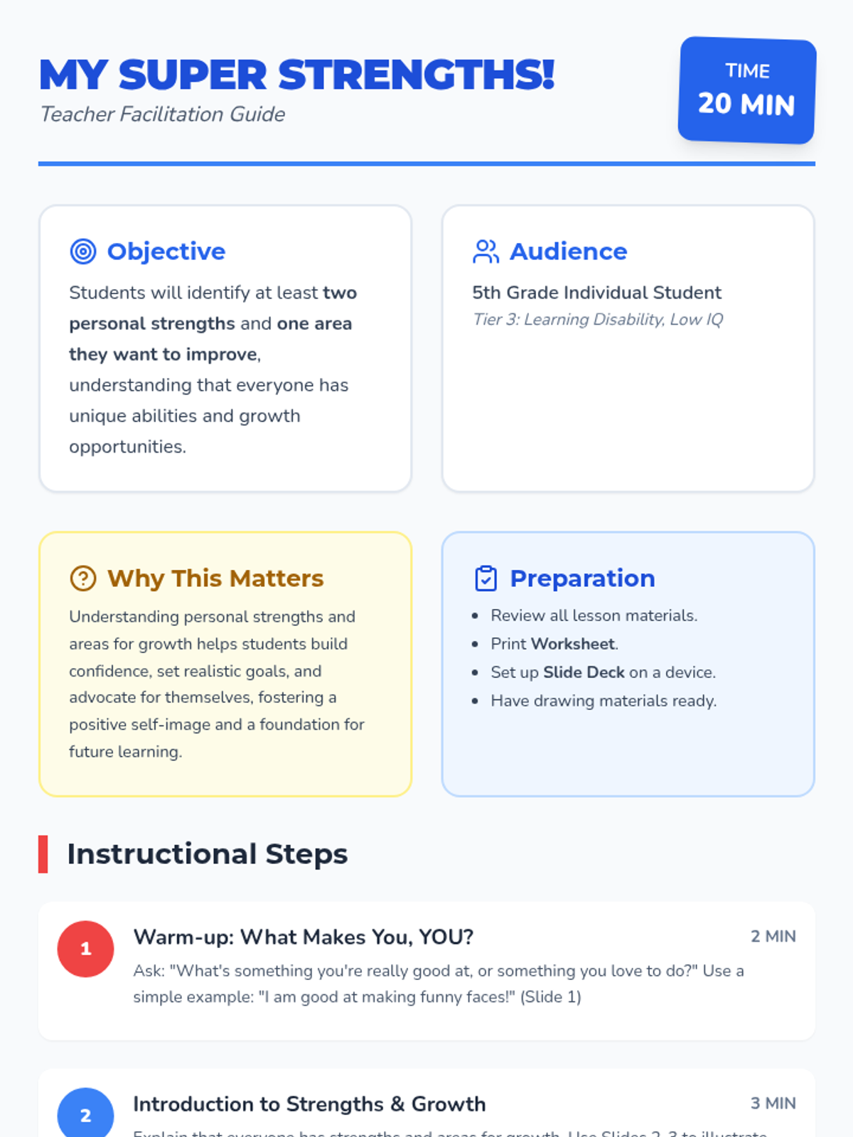 This 20-minute, one-on-one Tier 3 lesson helps 5th-grade students with learning disabilities identify personal strengths and areas for growth to build self-awareness and confidence.