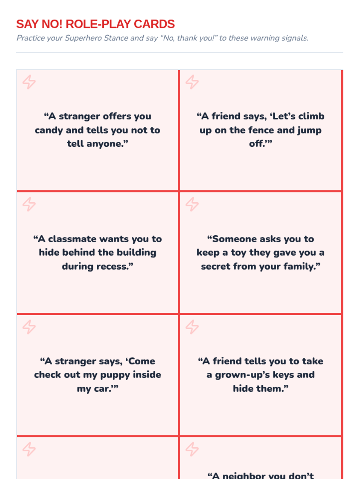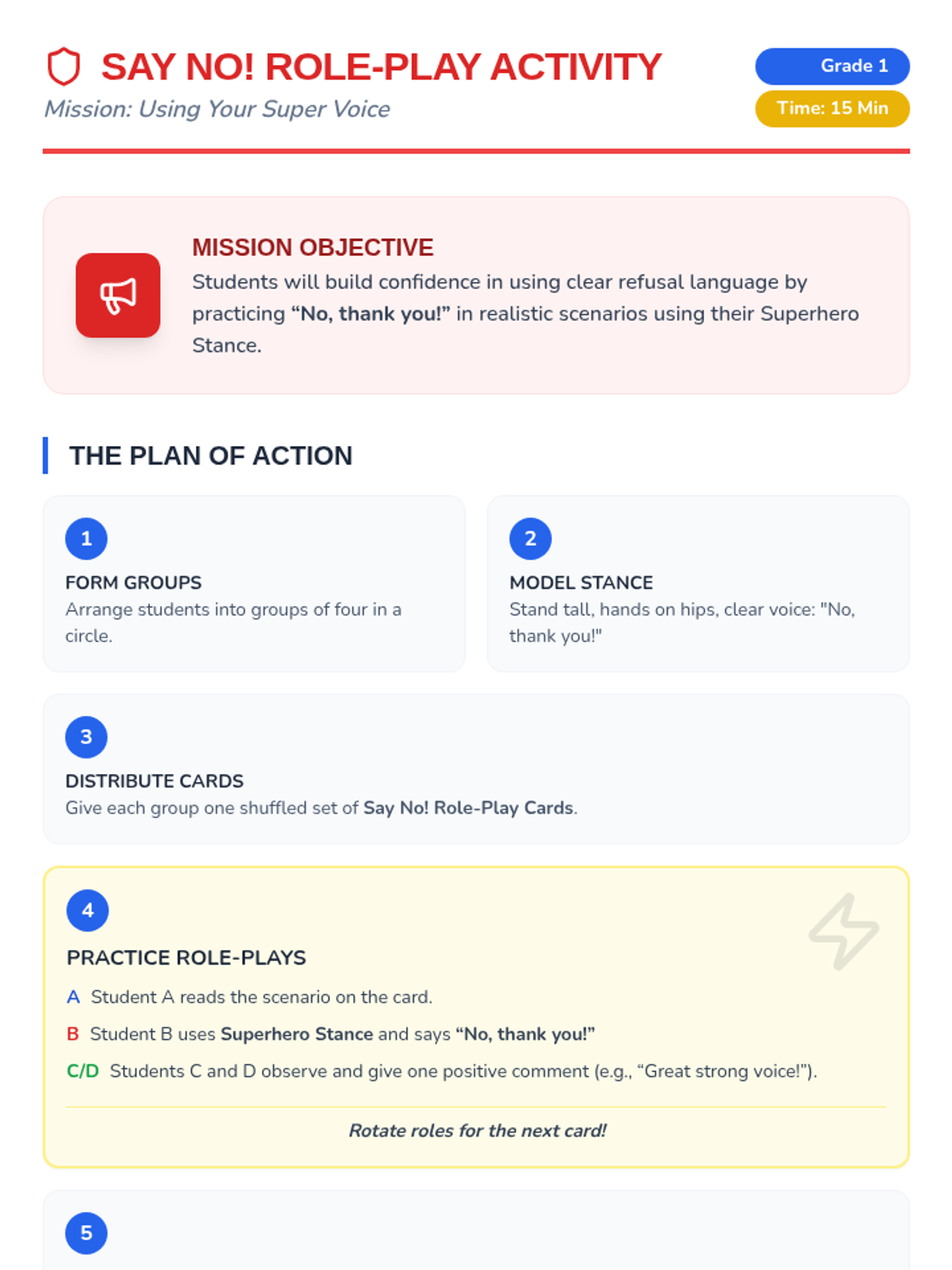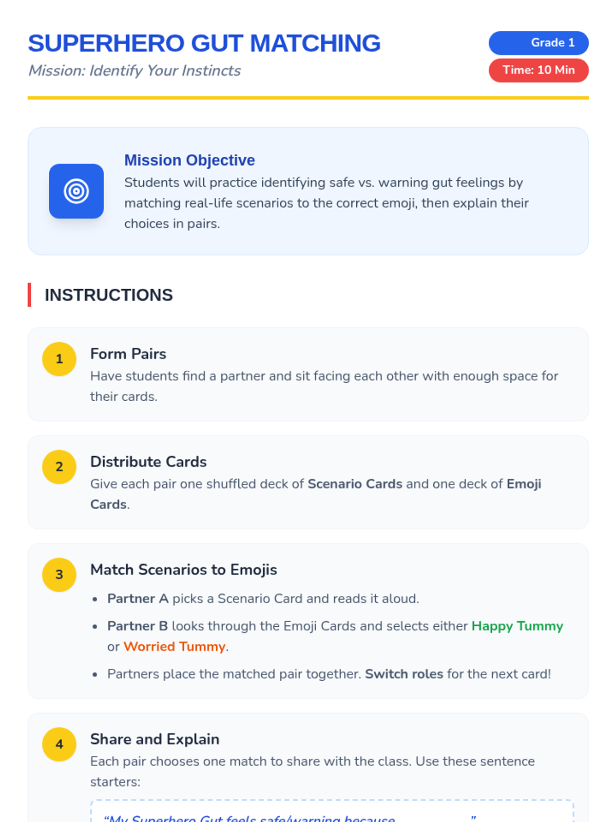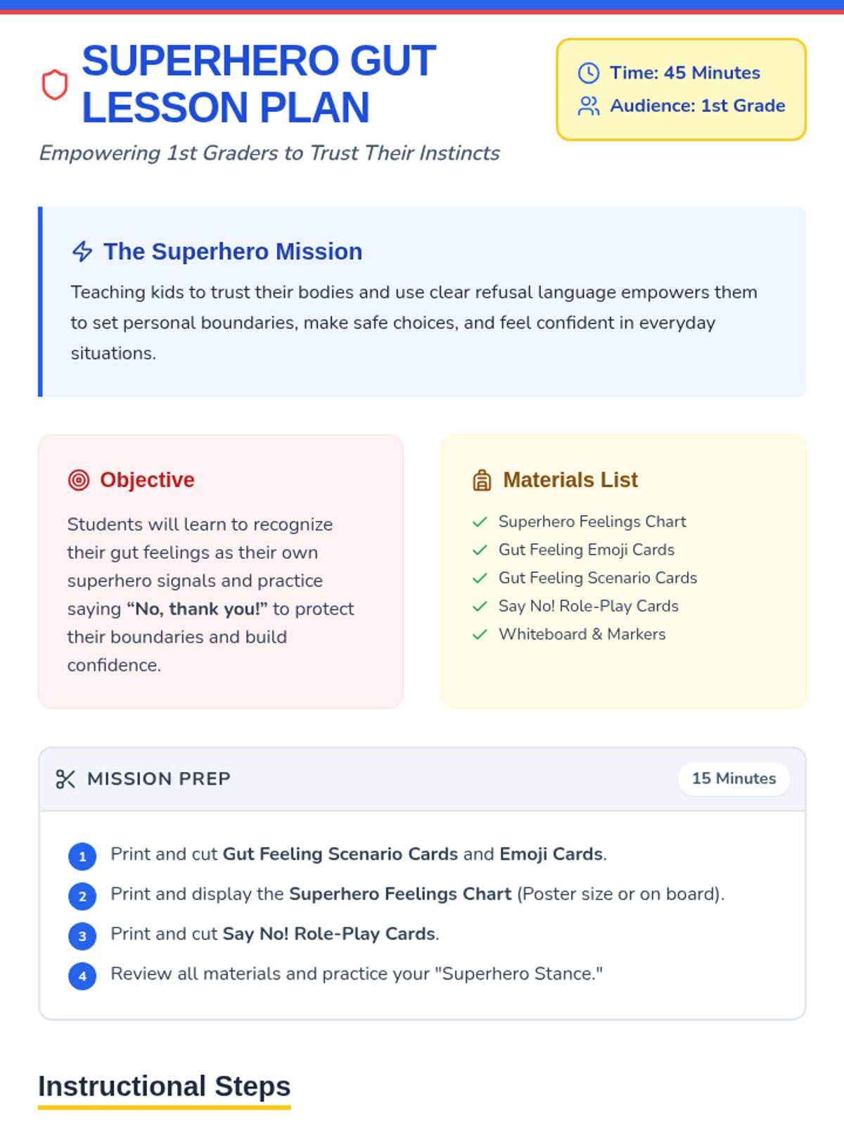 In this 45-minute assembly for 1st graders, students will discover they are superheroes in their own lives by learning to recognize their gut feelings and practice saying no. This engaging, Tier 1 lesson empowers students with the language and confidence to protect themselves and trust their instincts.
