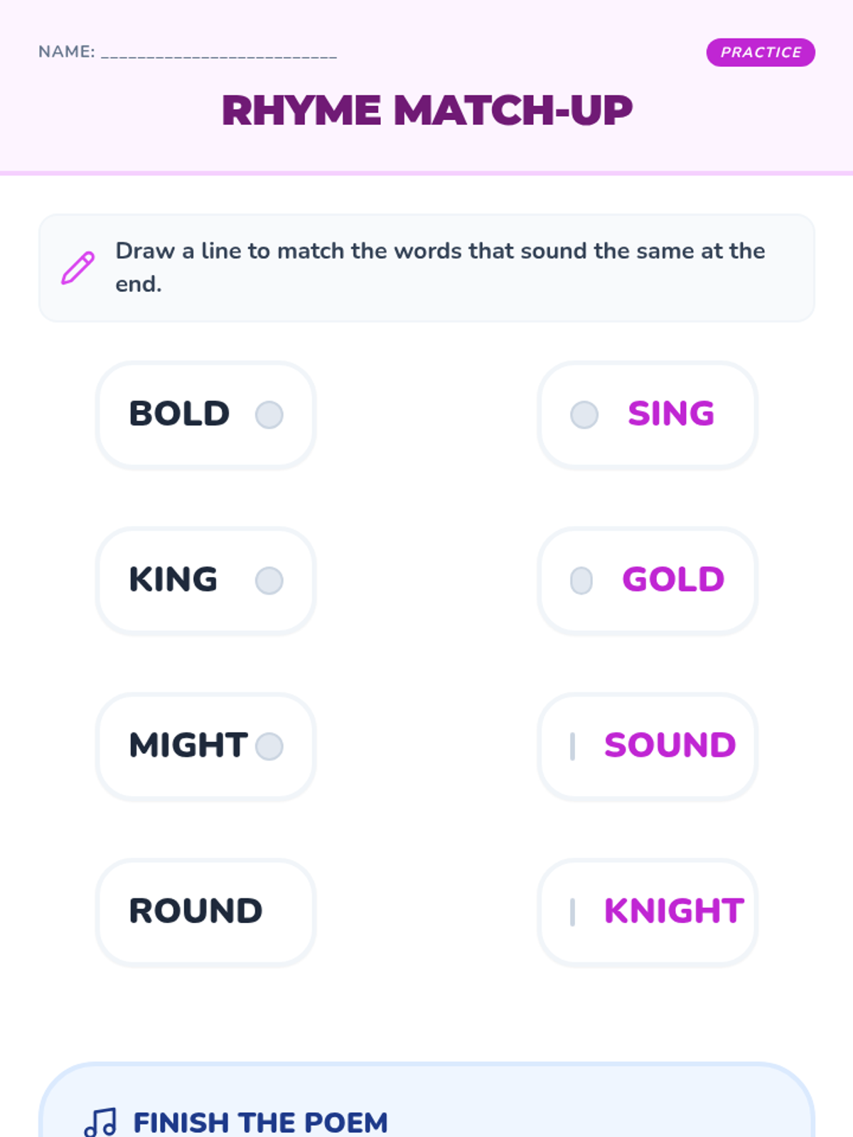 A culminating project lesson where students create their own short poem about King Arthur or a knight, applying their knowledge of rhyme and rhythm.