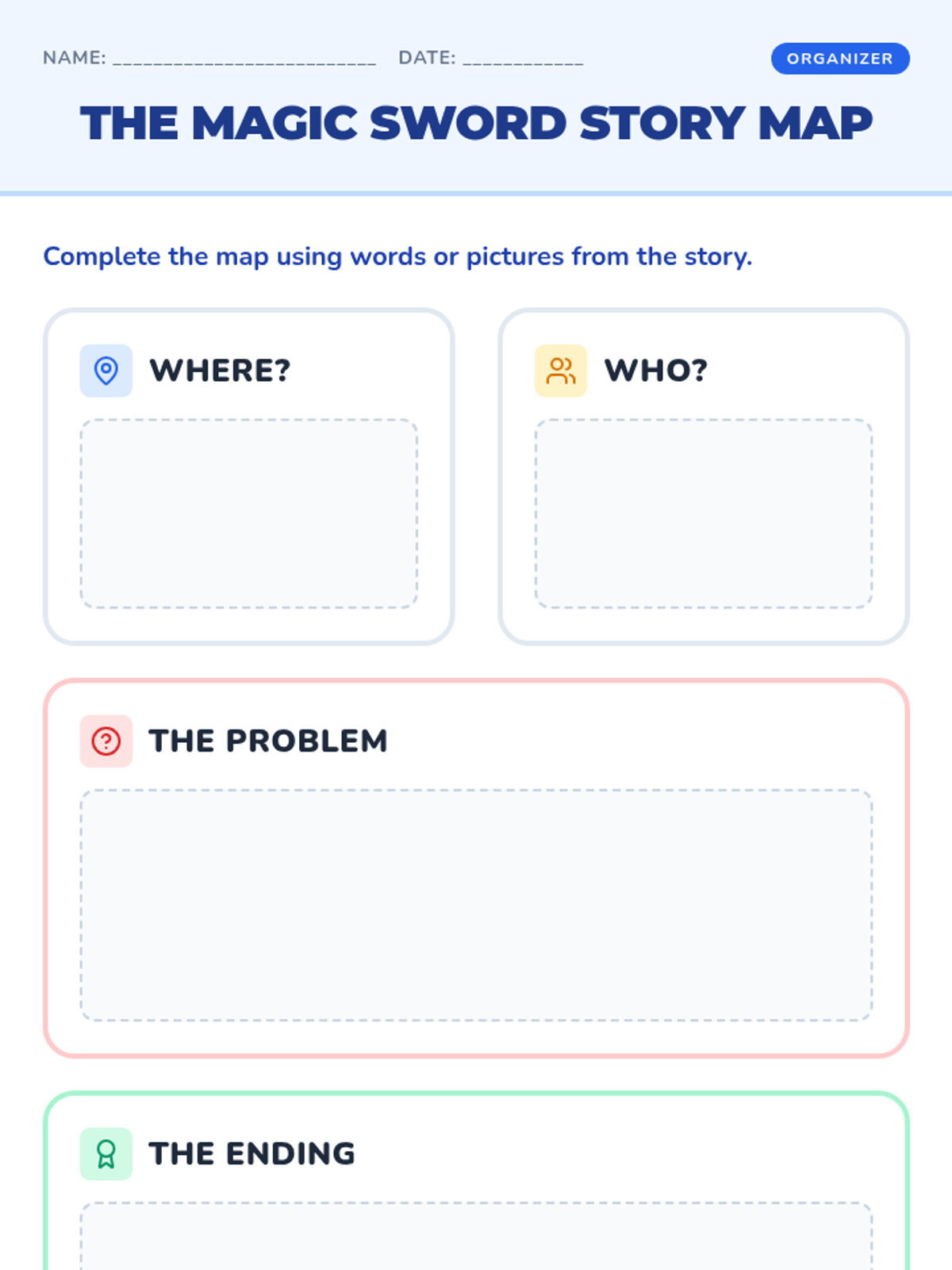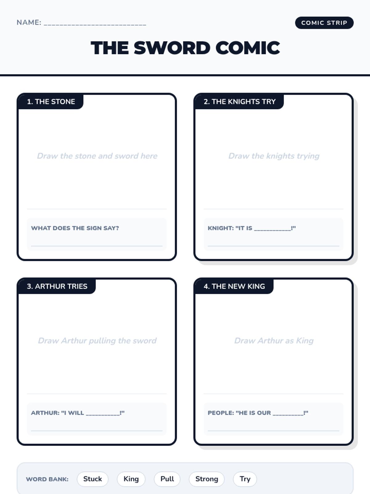 A creative lesson where students learn to write a simple play script and create a comic strip based on a King Arthur story.