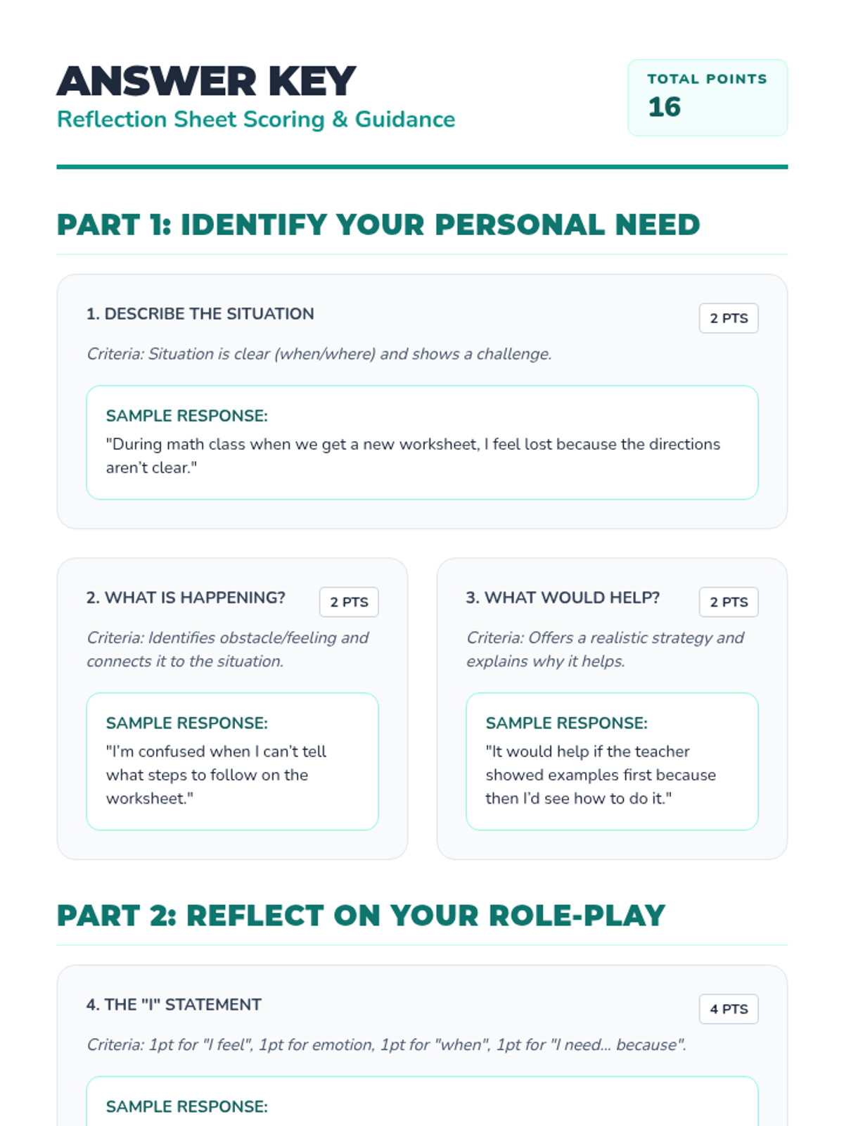 A lesson for grades 3-4 focused on using assertive I-Statements and understanding different points of view during disagreements.