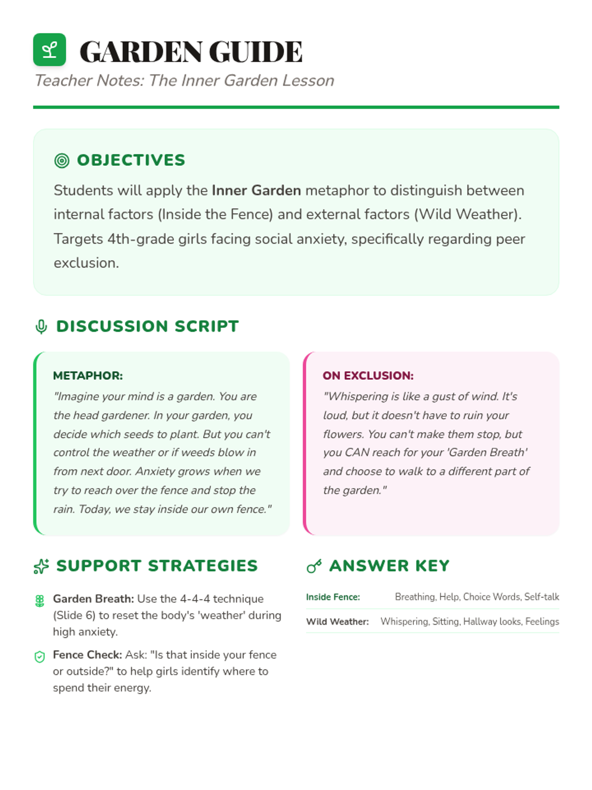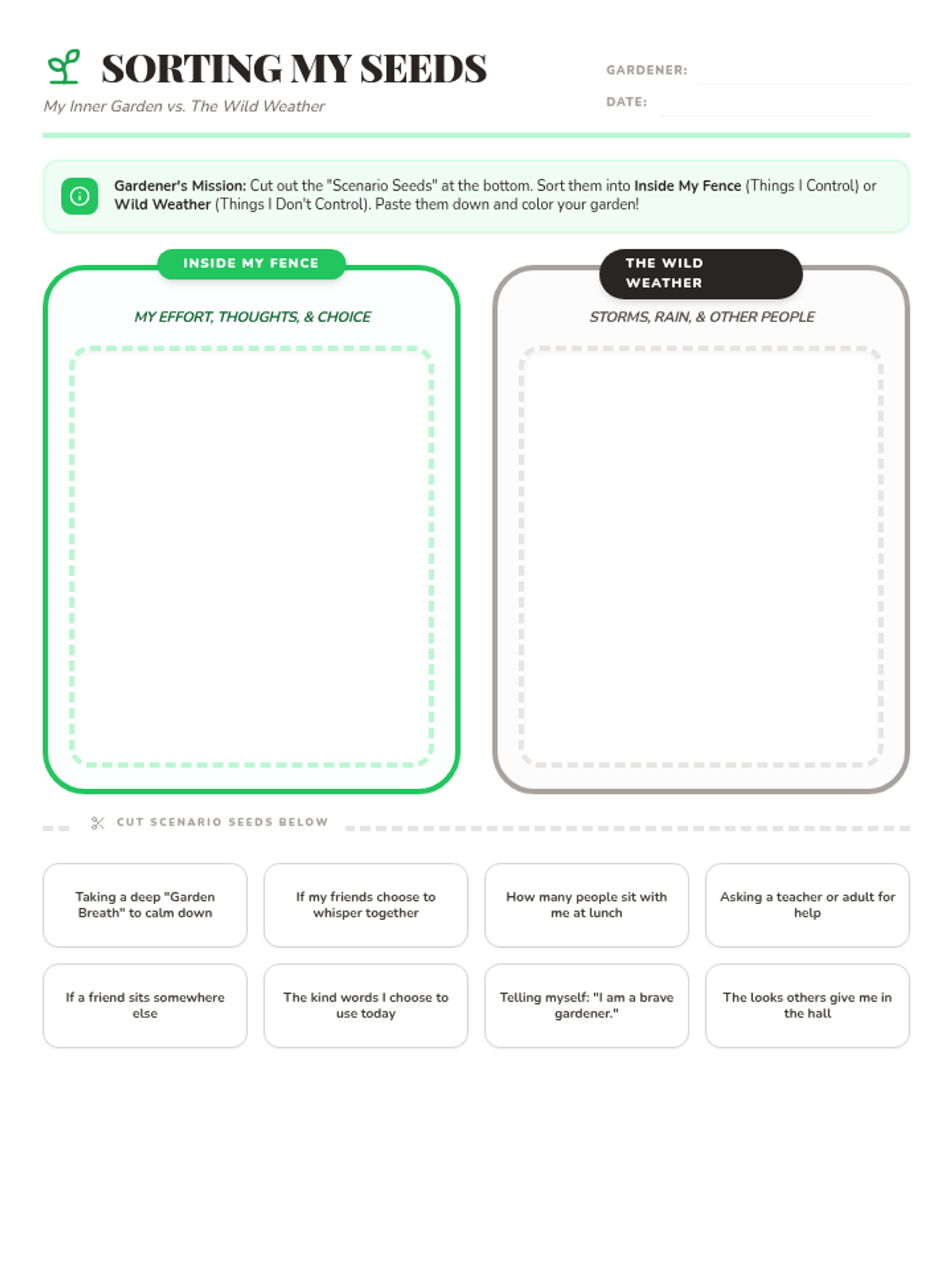 A social-emotional learning lesson for 4th-grade girls focusing on identifying what is within their control during friendship conflicts using a garden metaphor.