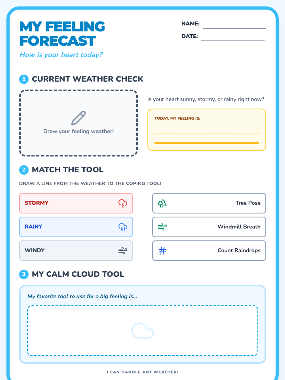 A 20-minute interactive lesson for grades K-4 focused on identifying 'big' emotions and practicing simple coping strategies using a weather-themed metaphor.