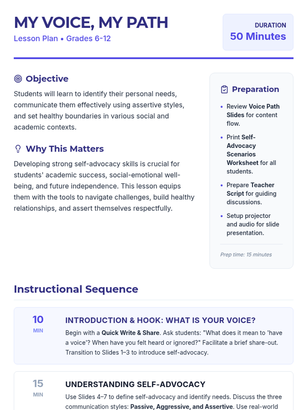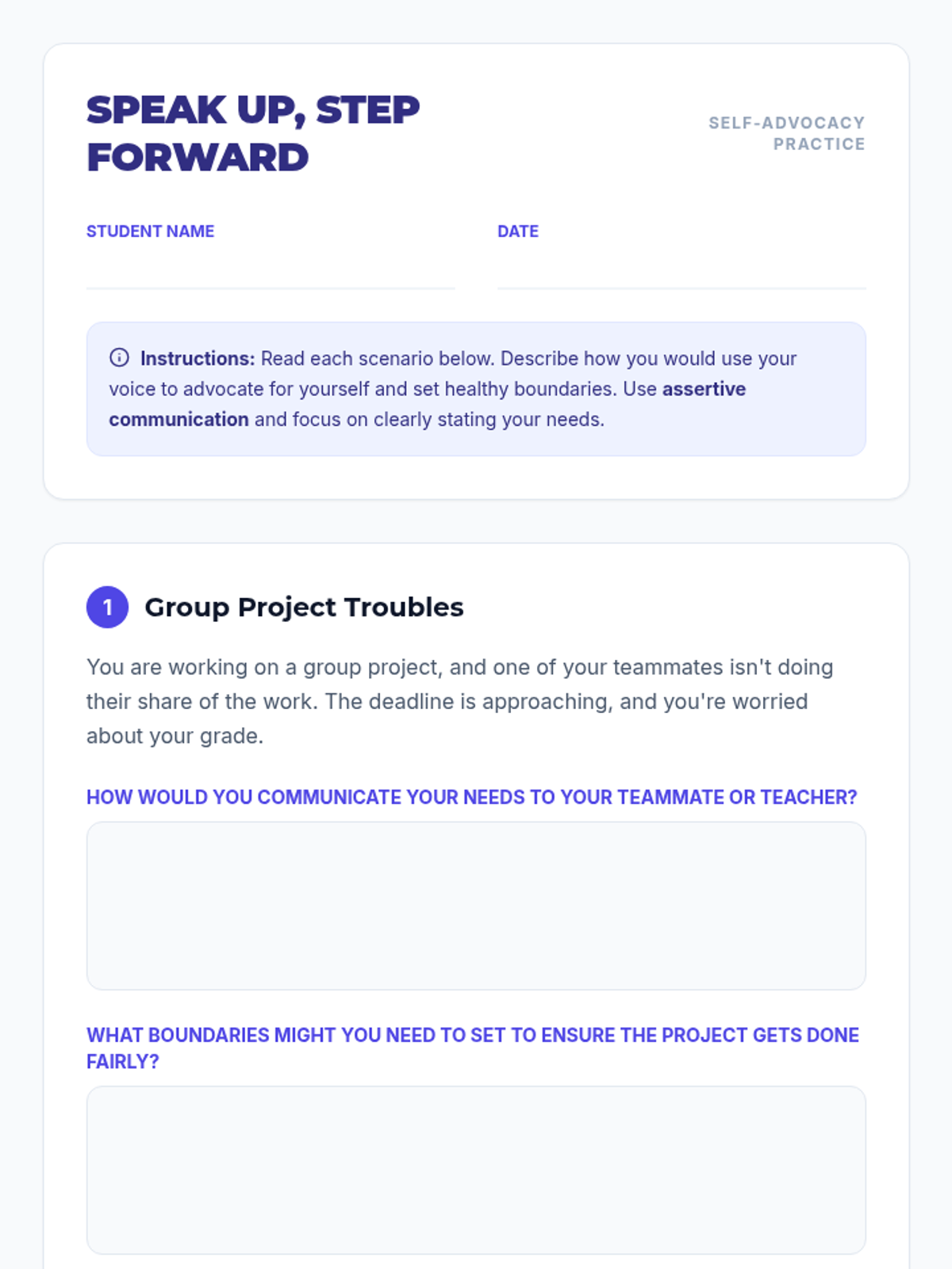 An empowering social-emotional learning lesson for middle and high school students focused on identifying needs, assertive communication, and setting healthy boundaries.