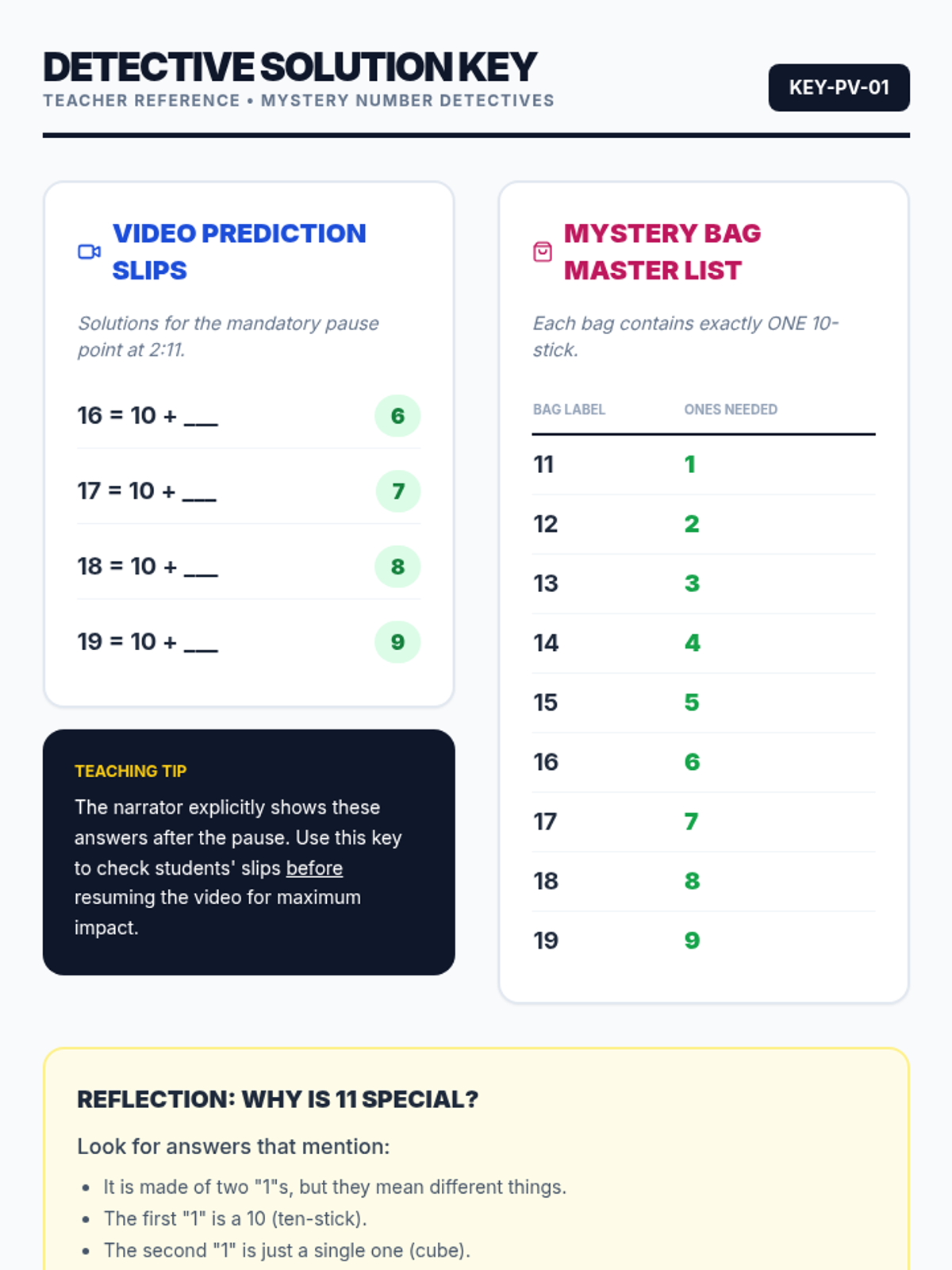 This lesson introduces addition within 20 through the 'Make Ten' strategy and Number Bonds. Students progress from using physical counters to visual ten frames and finally to abstract equations.