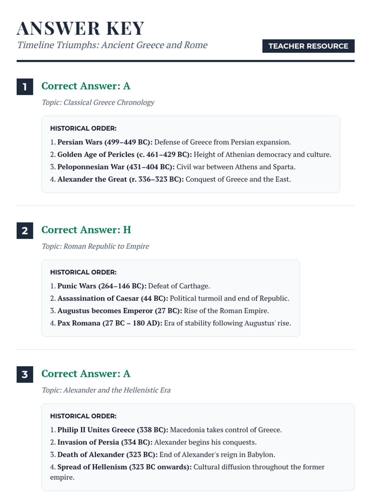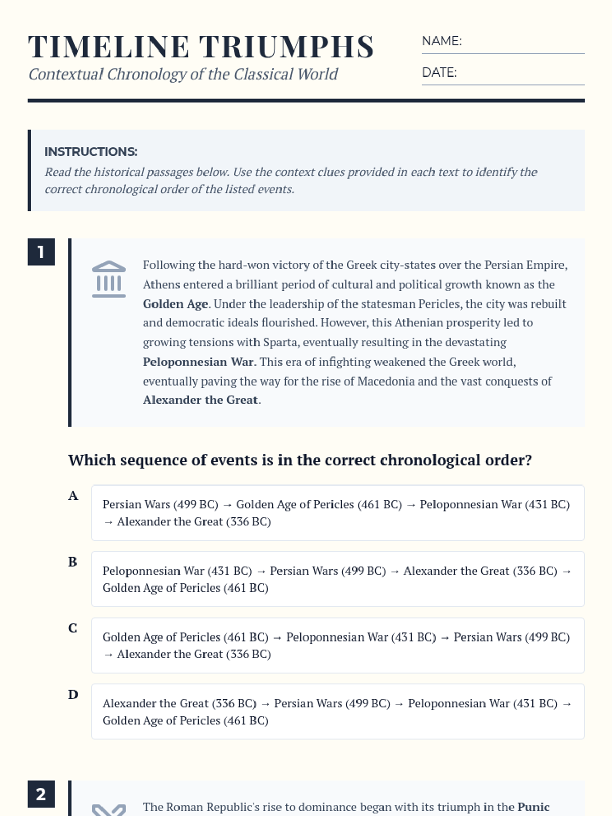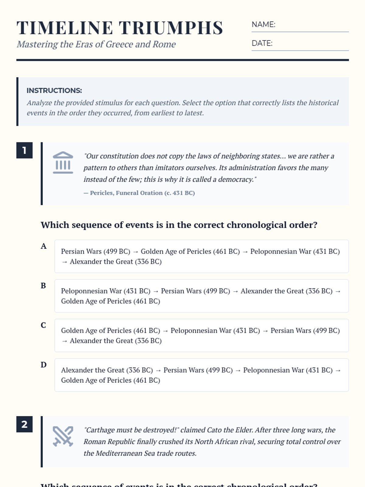 A lesson focused on mastering the chronological flow of key events in Ancient Greek and Roman history, prepared in the STAAR assessment format.