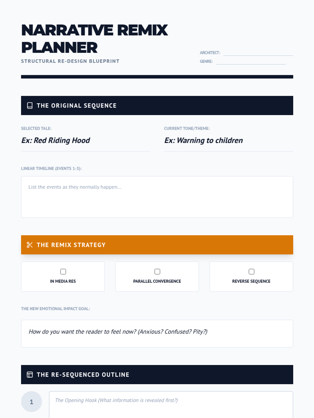 Apply structural strategies to a linear tale, rewriting it using complex sequencing to alter the genre and emotional effect.