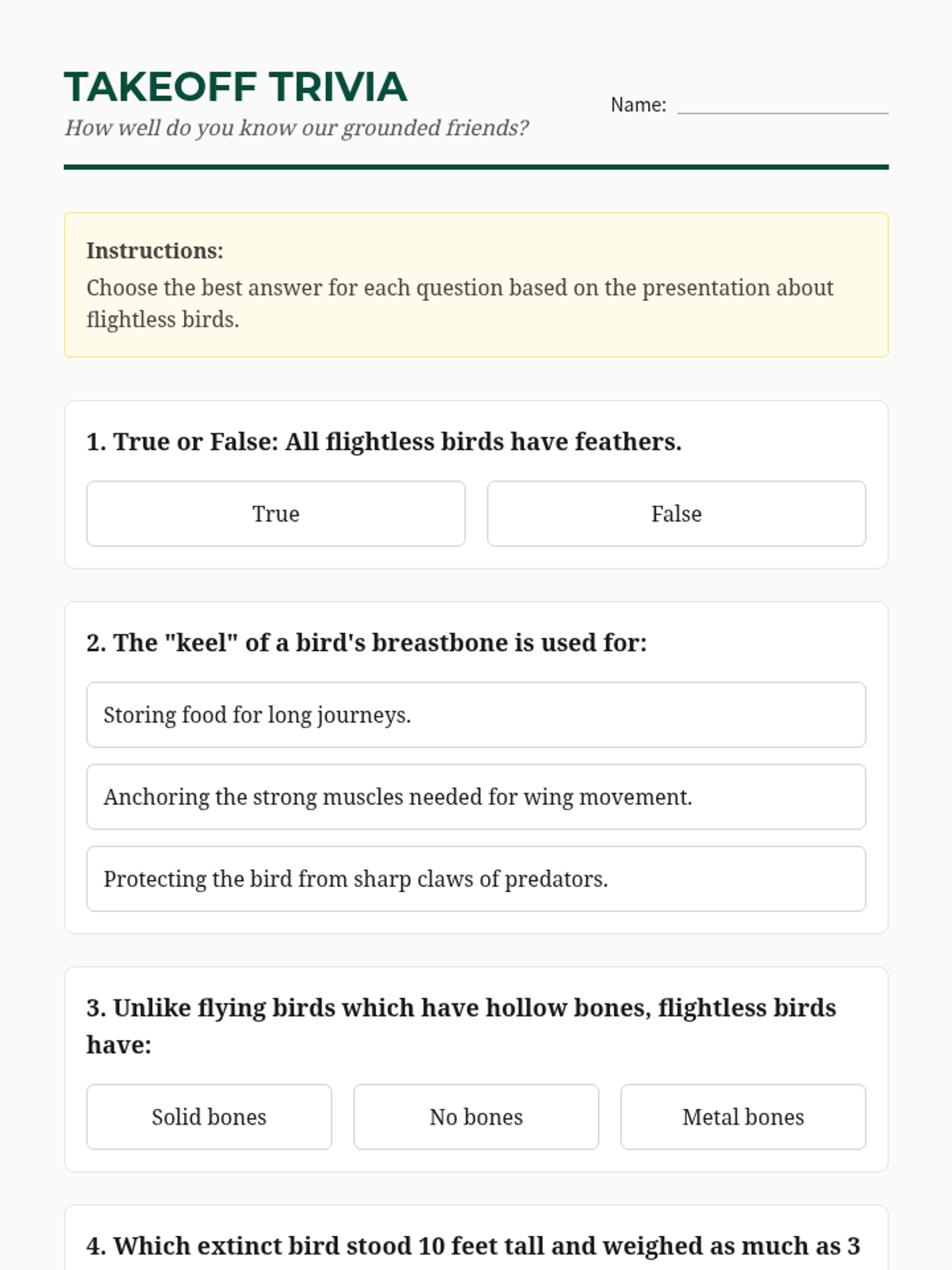 Explore the fascinating world of birds that have traded flight for other incredible skills in this engaging introductory lesson.