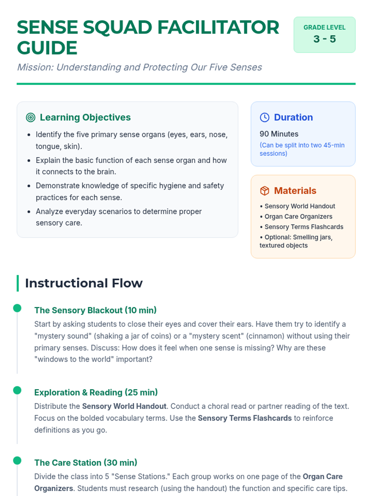 A comprehensive lesson exploring the five human sense organs, their functions, and essential care practices to maintain sensory health.