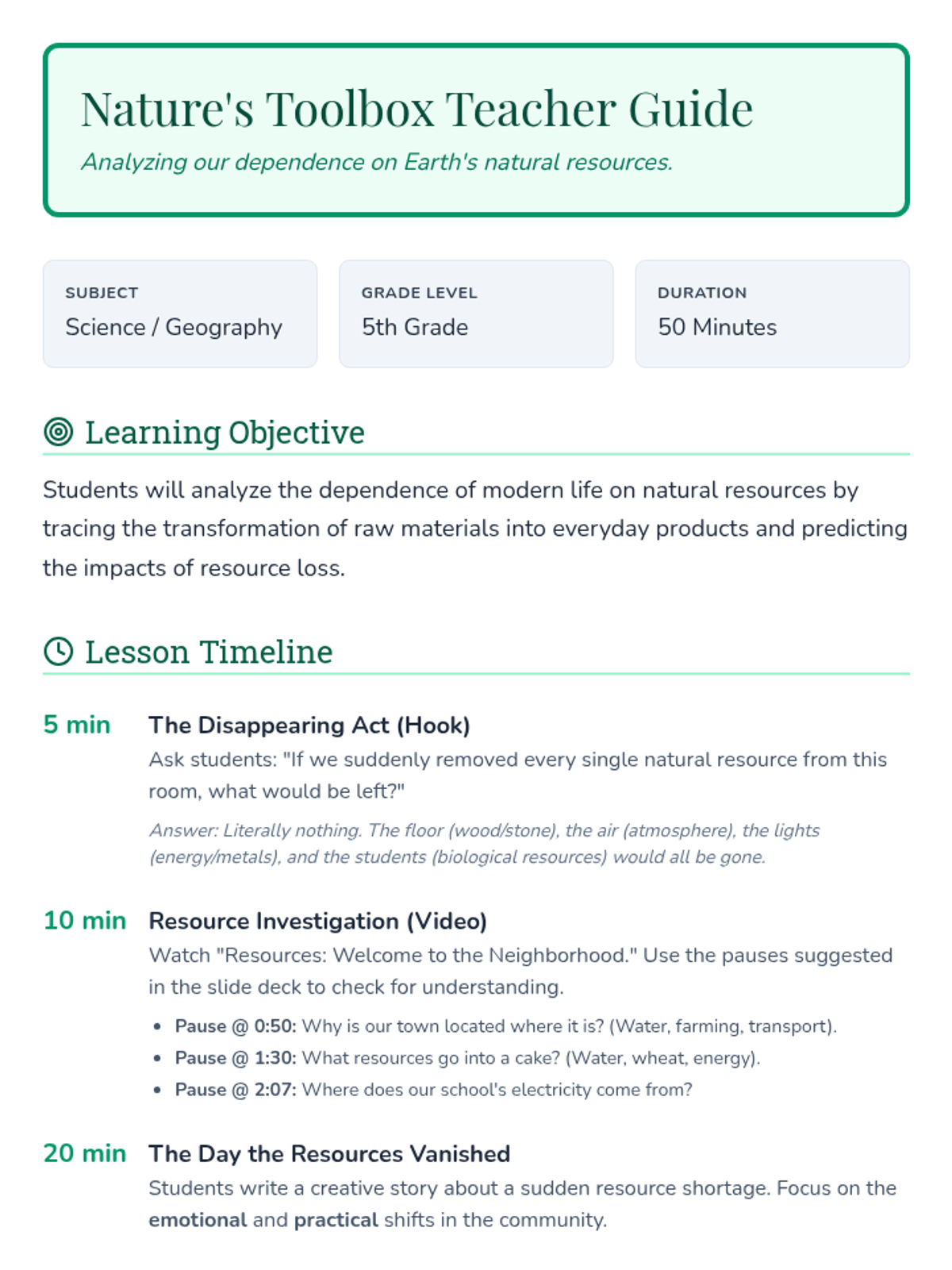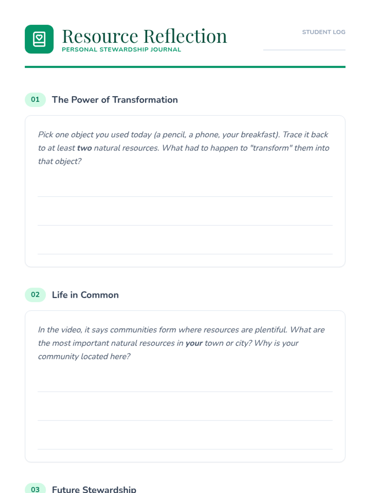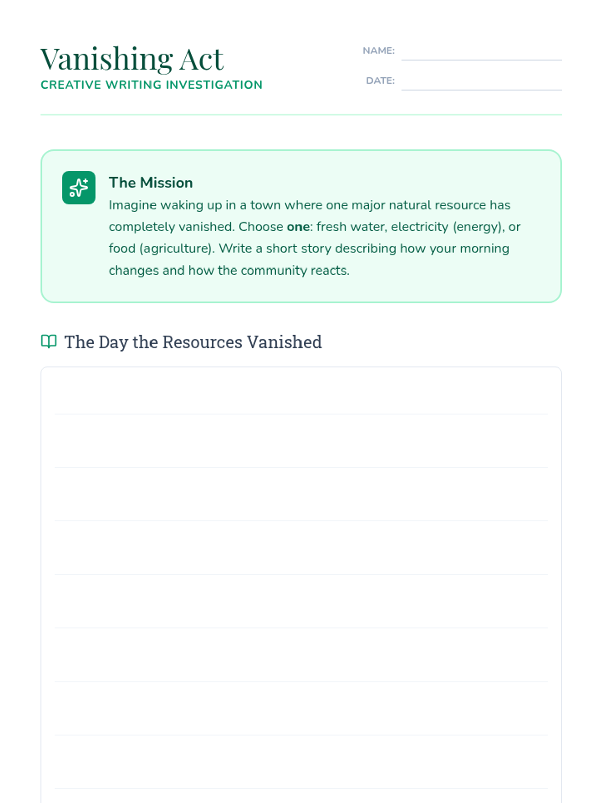 Students explore how modern life depends on natural resources and their transformation through a video investigation and creative writing task.