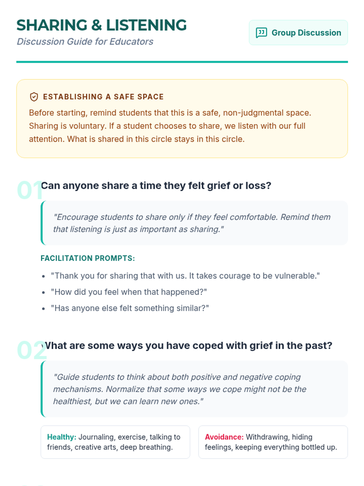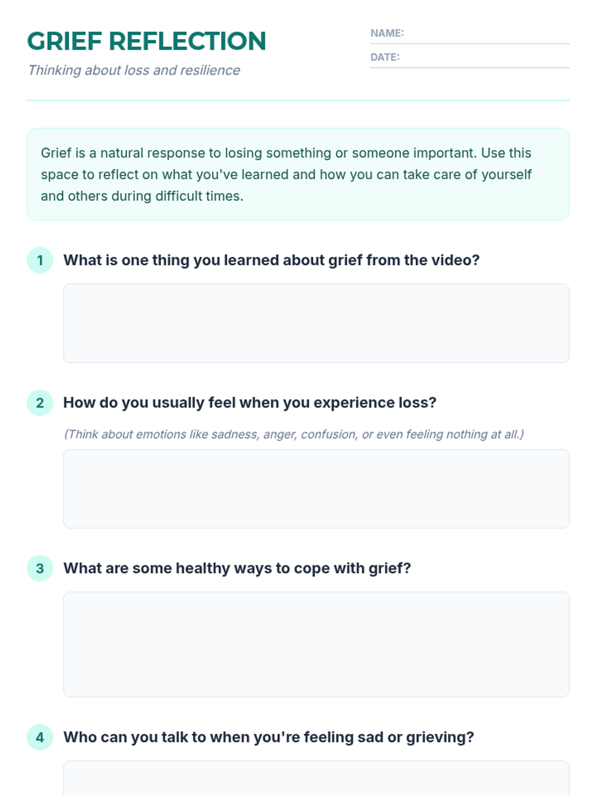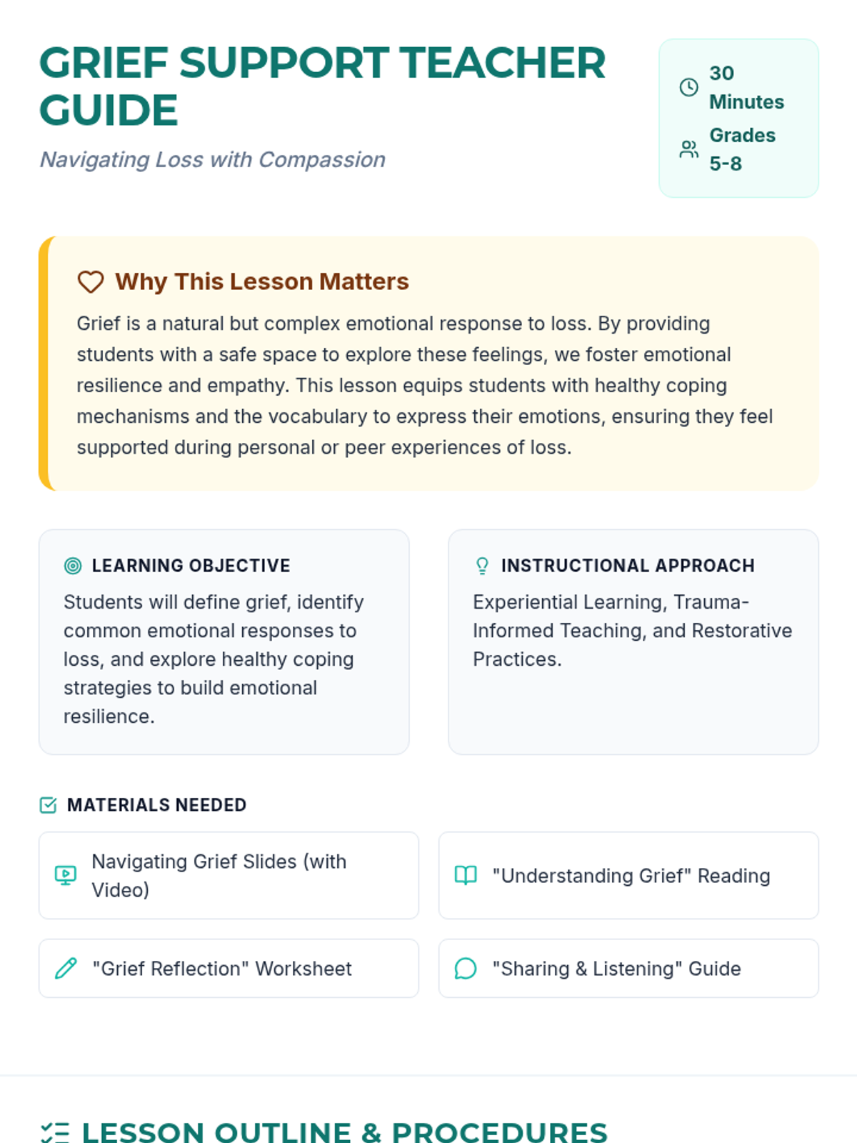 This lesson helps students navigate the complex emotions of grief and loss through video, reading, reflection, and discussion, fostering emotional resilience and empathy.