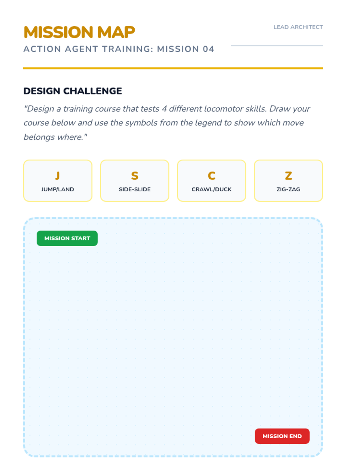Students navigate obstacle courses that require jumping, landing, and problem-solving in motion.