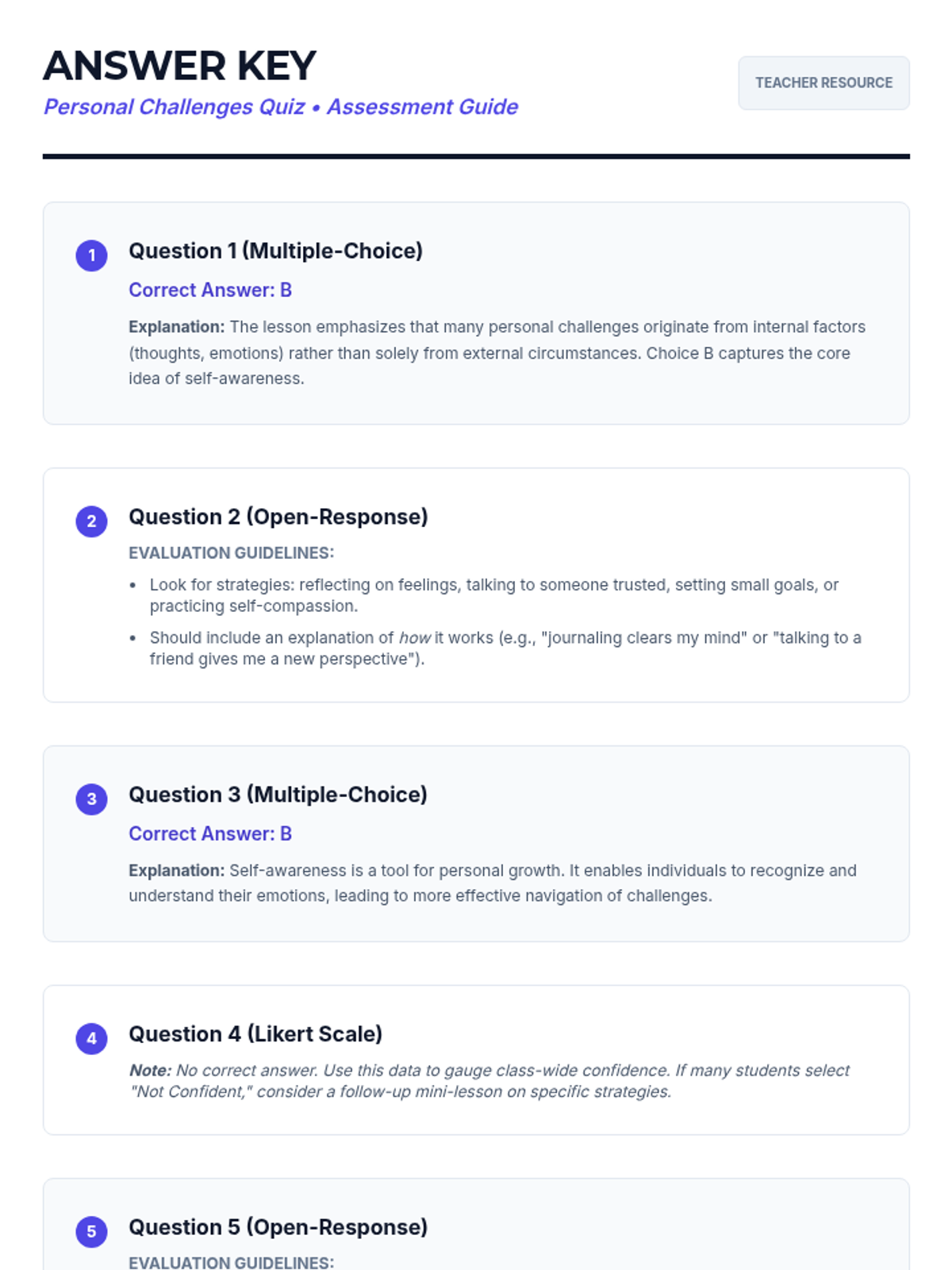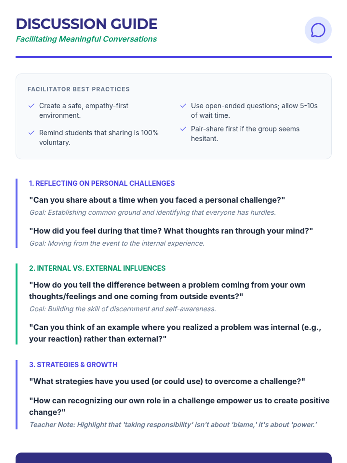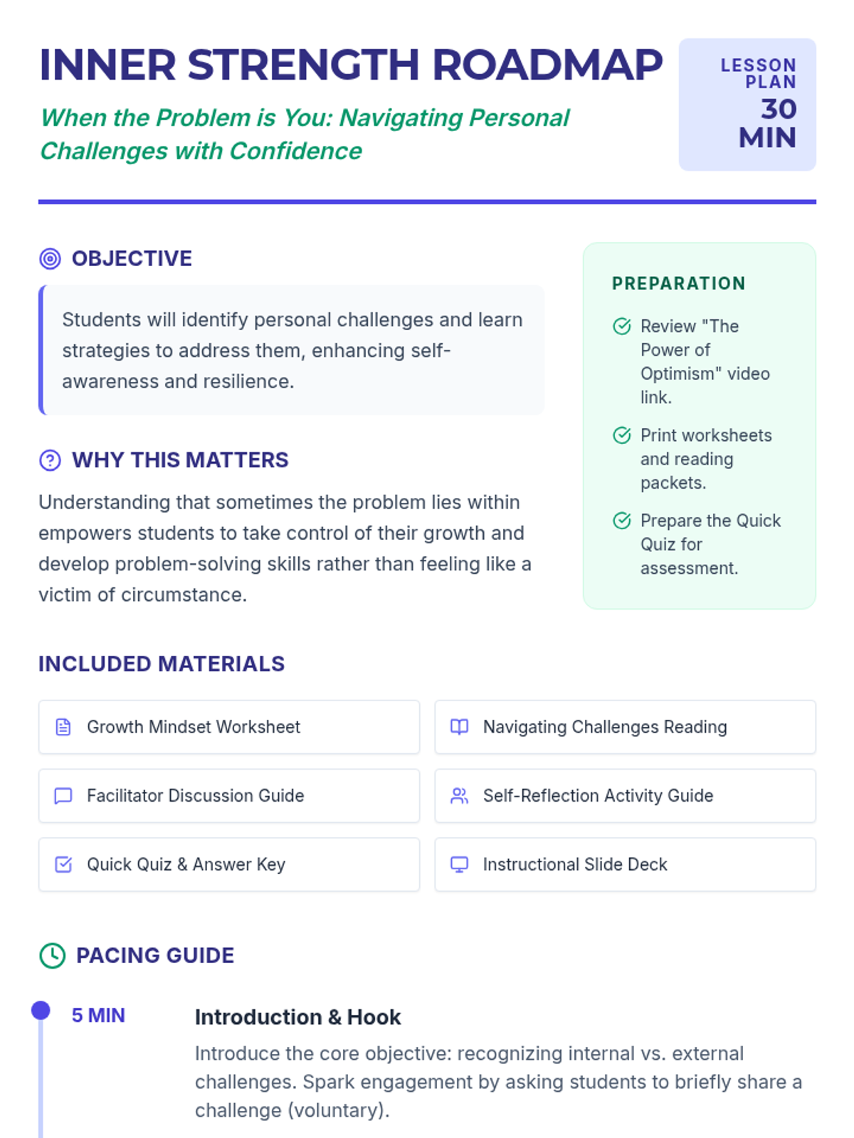 A 30-minute Tier 1 lesson for middle schoolers focusing on self-awareness and internal problem-solving strategies to navigate personal challenges.