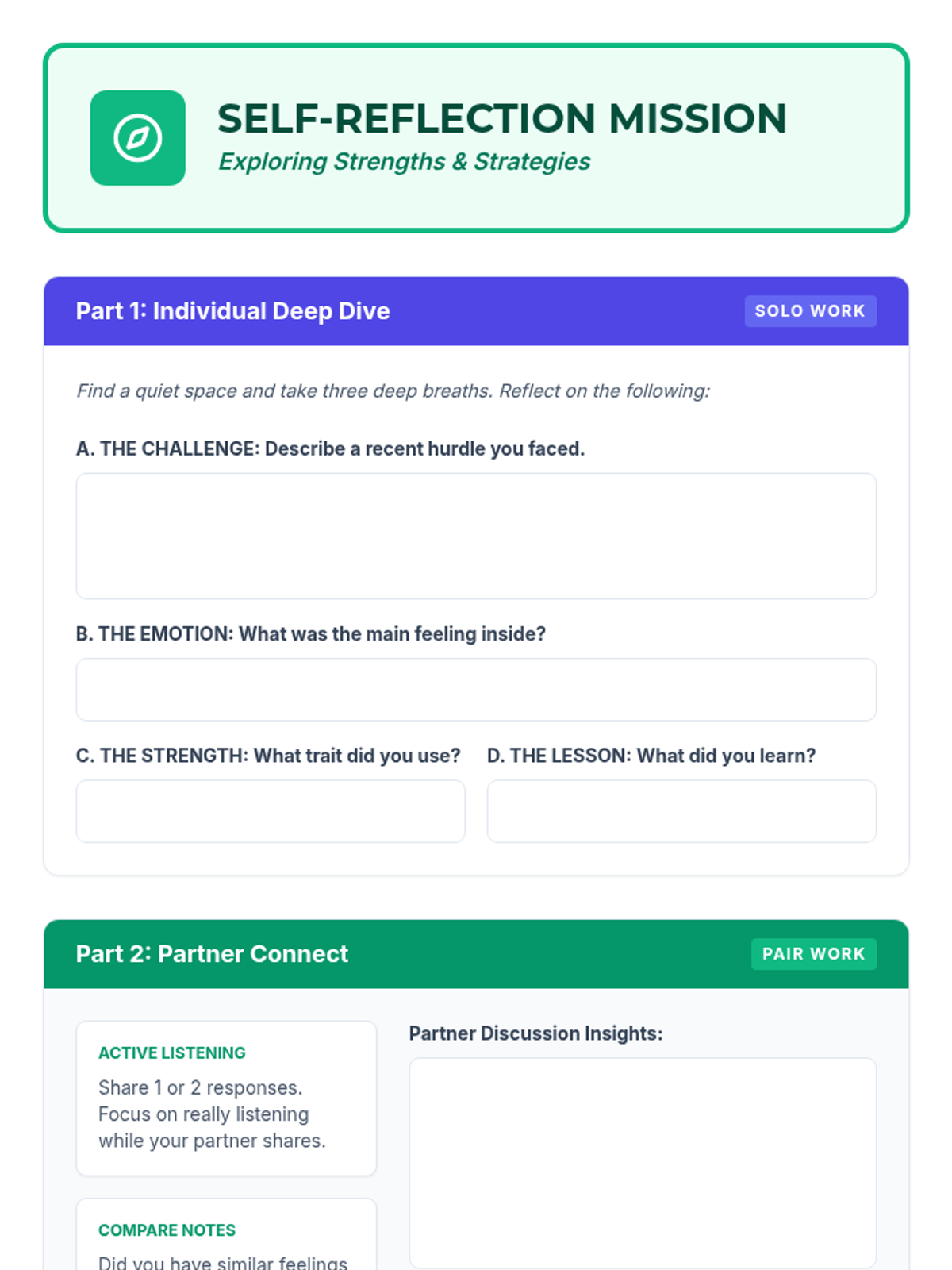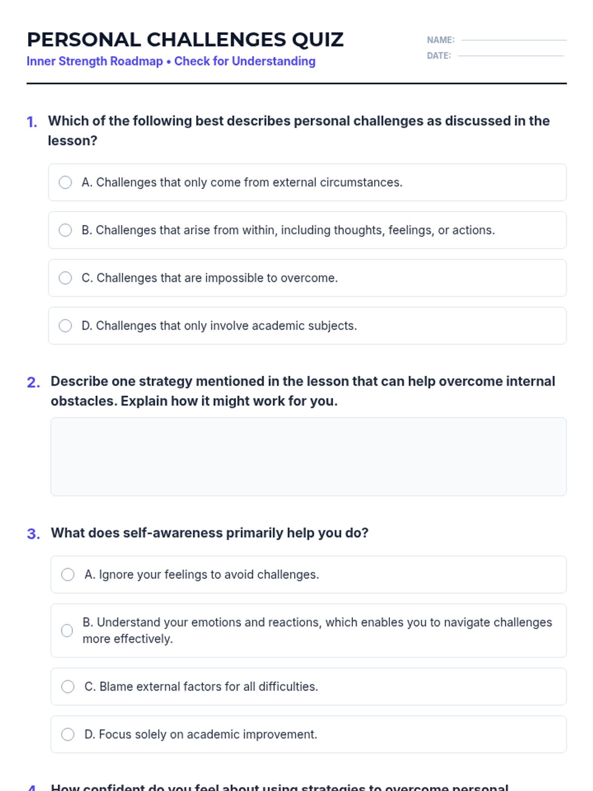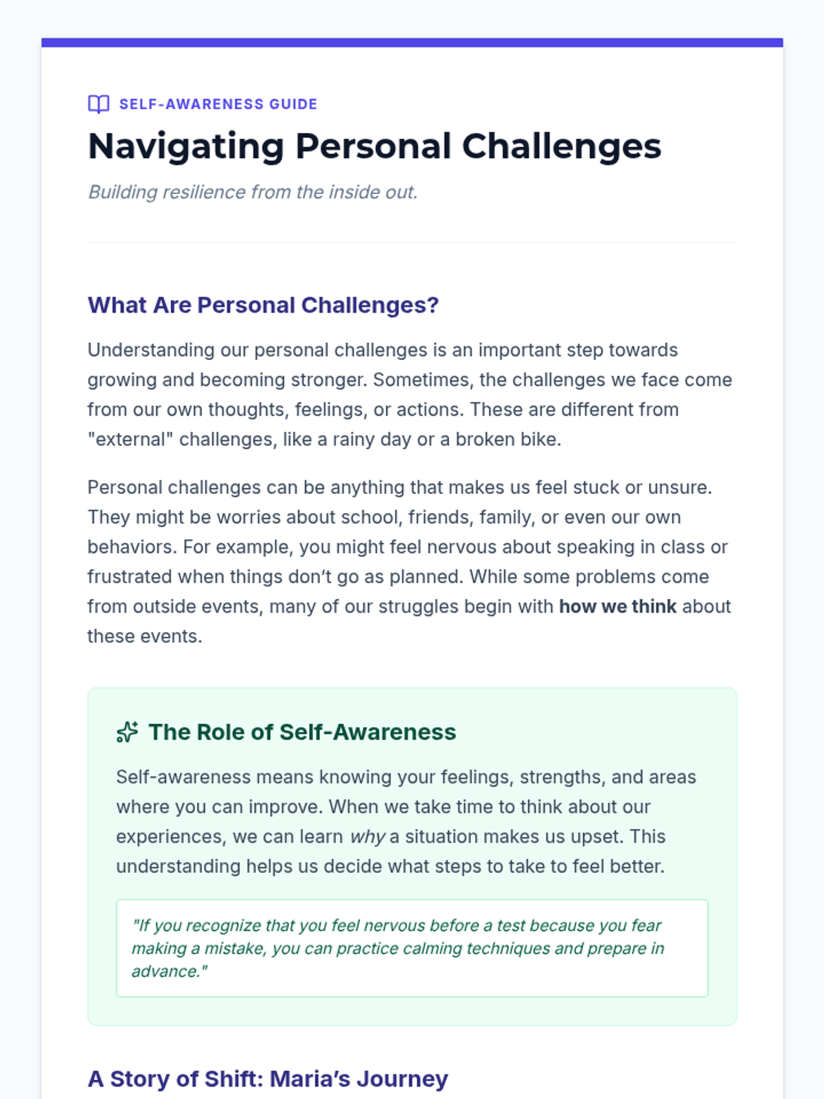 A 30-minute Tier 1 lesson for middle schoolers focusing on self-awareness and internal problem-solving strategies to navigate personal challenges.