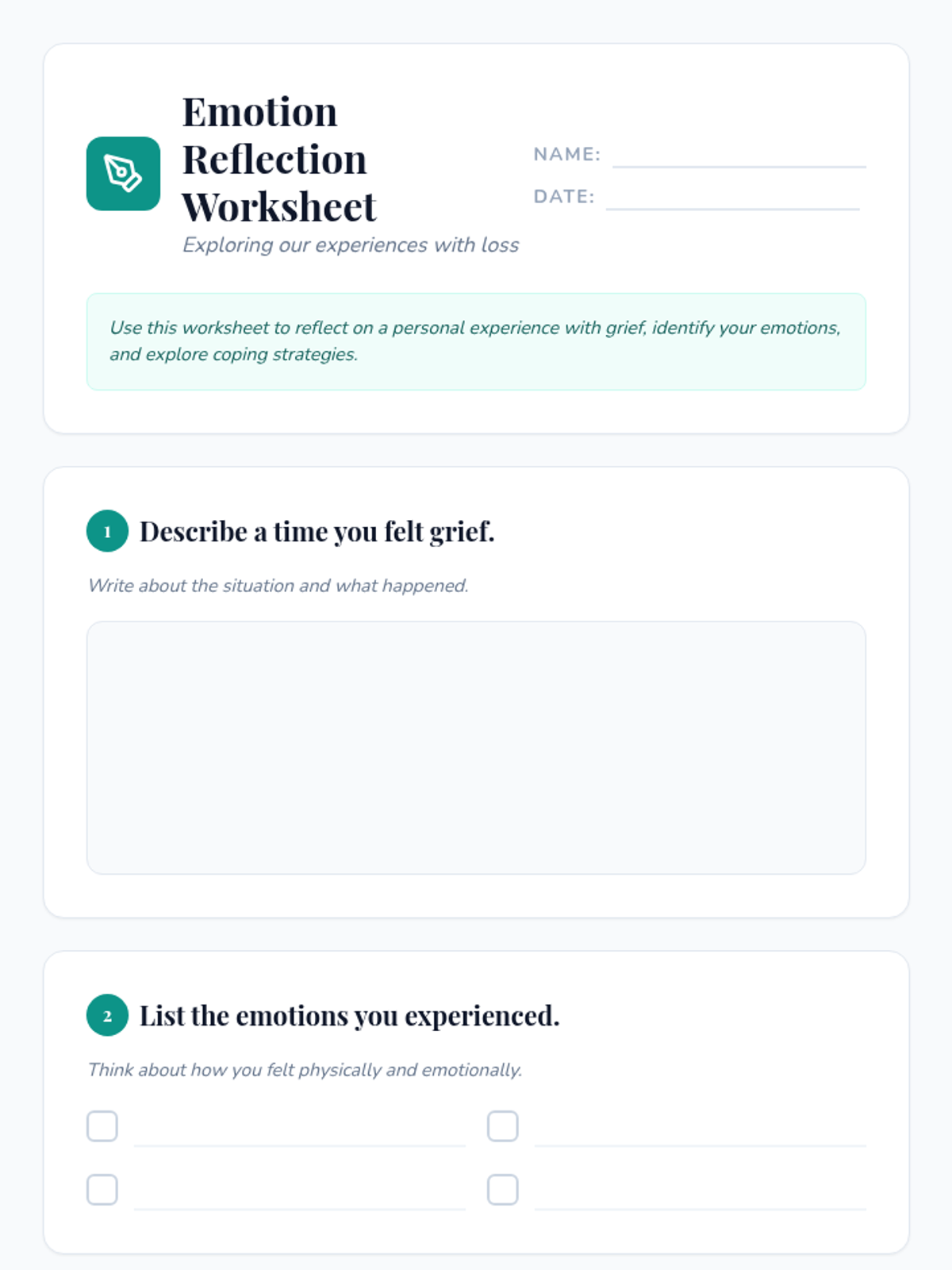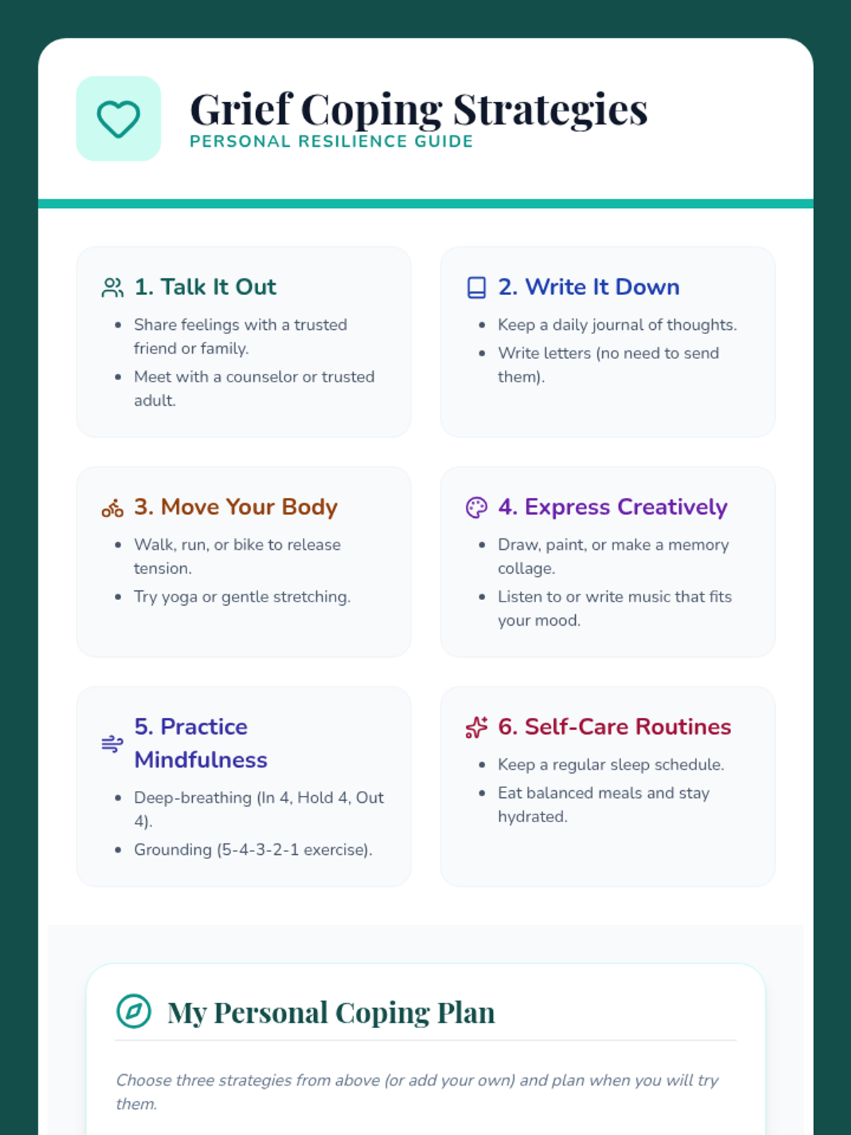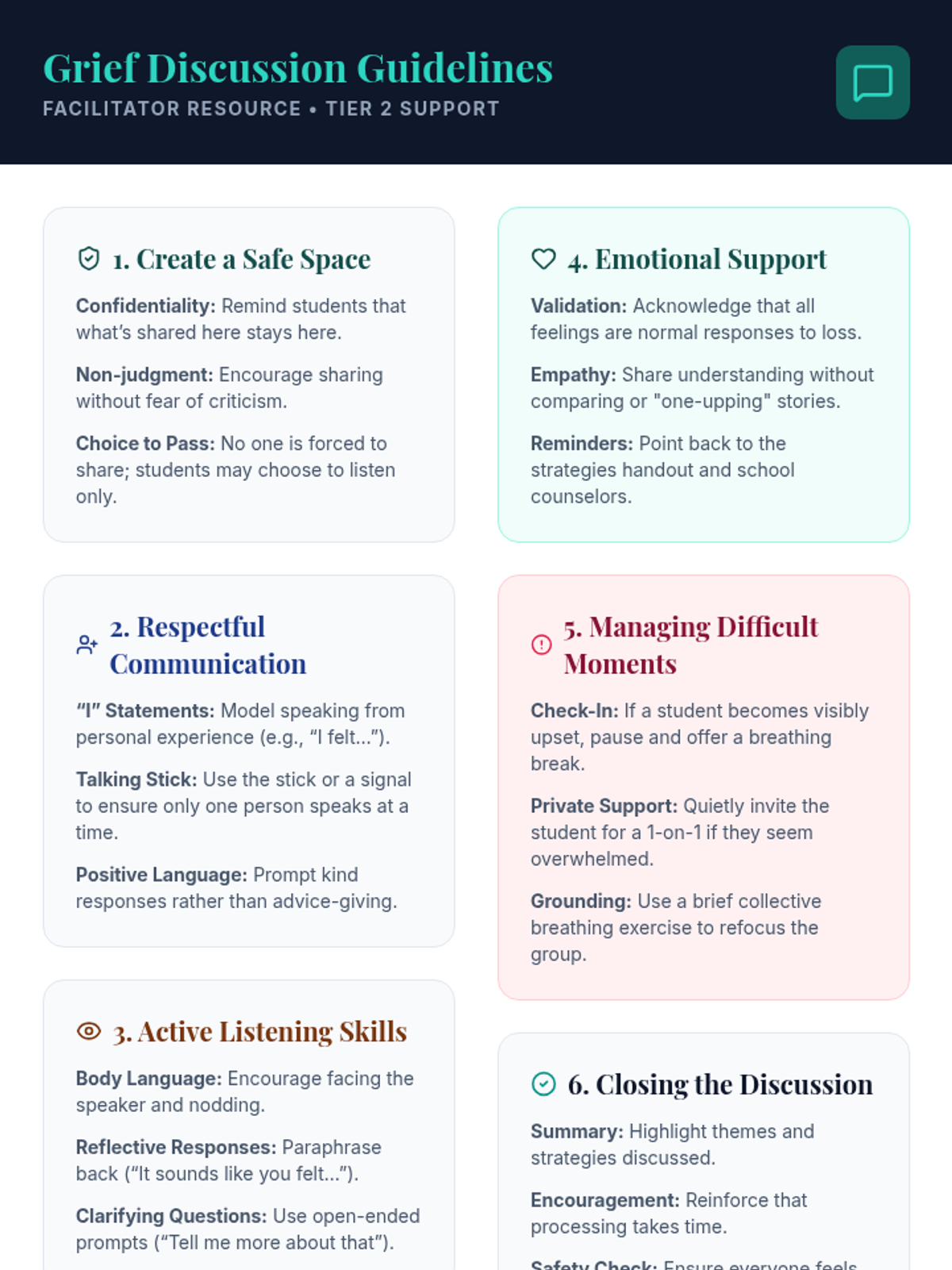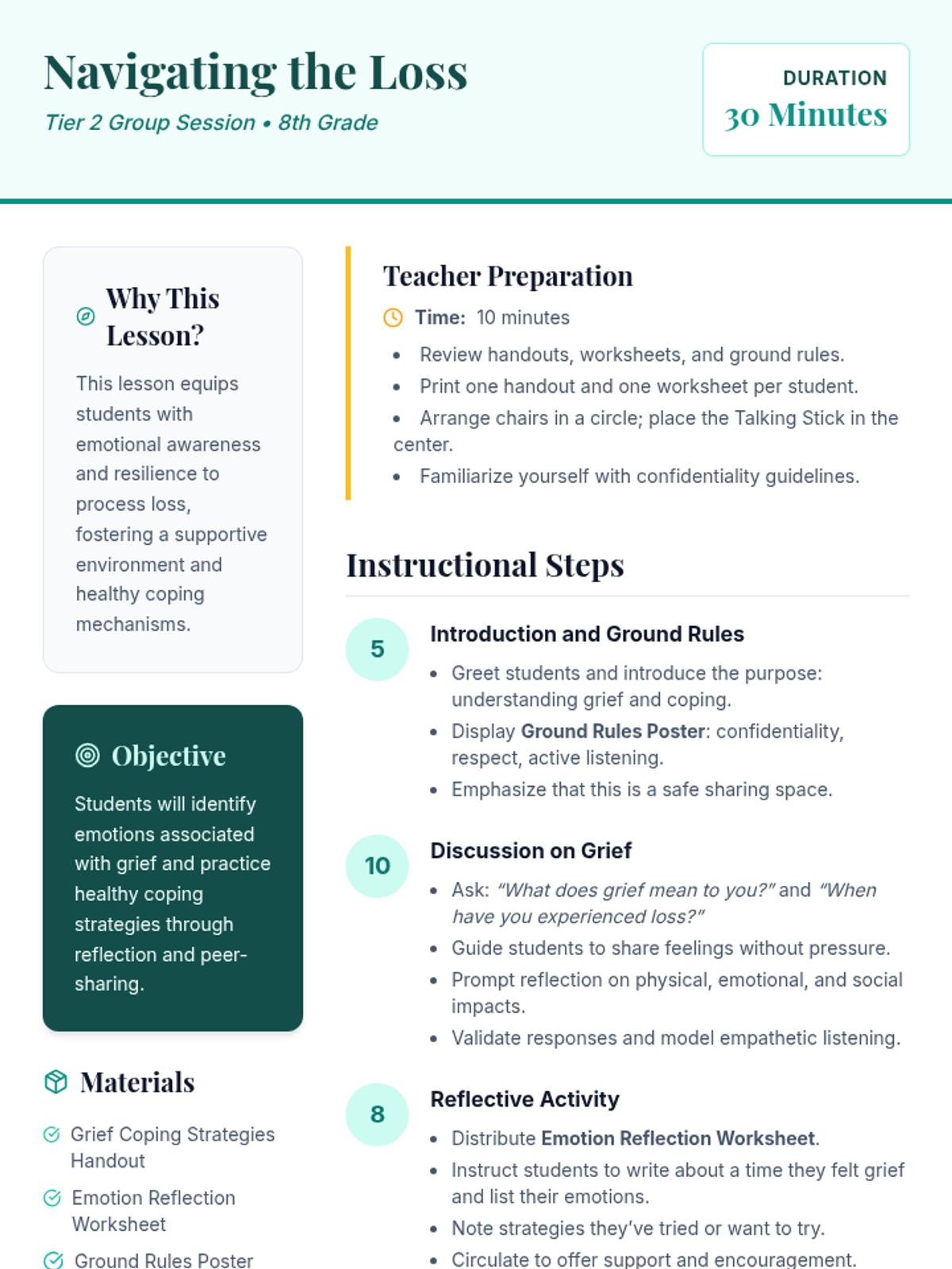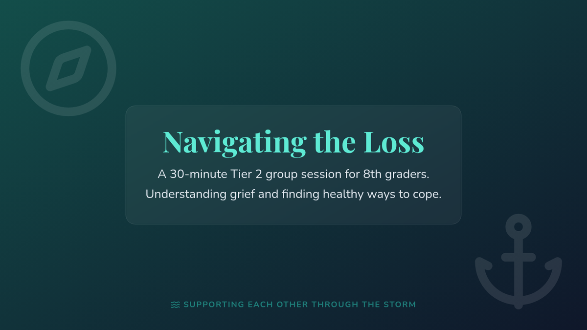 A Tier 2 group session for 8th graders to explore grief, identify emotions, and learn healthy coping strategies in a supportive environment.