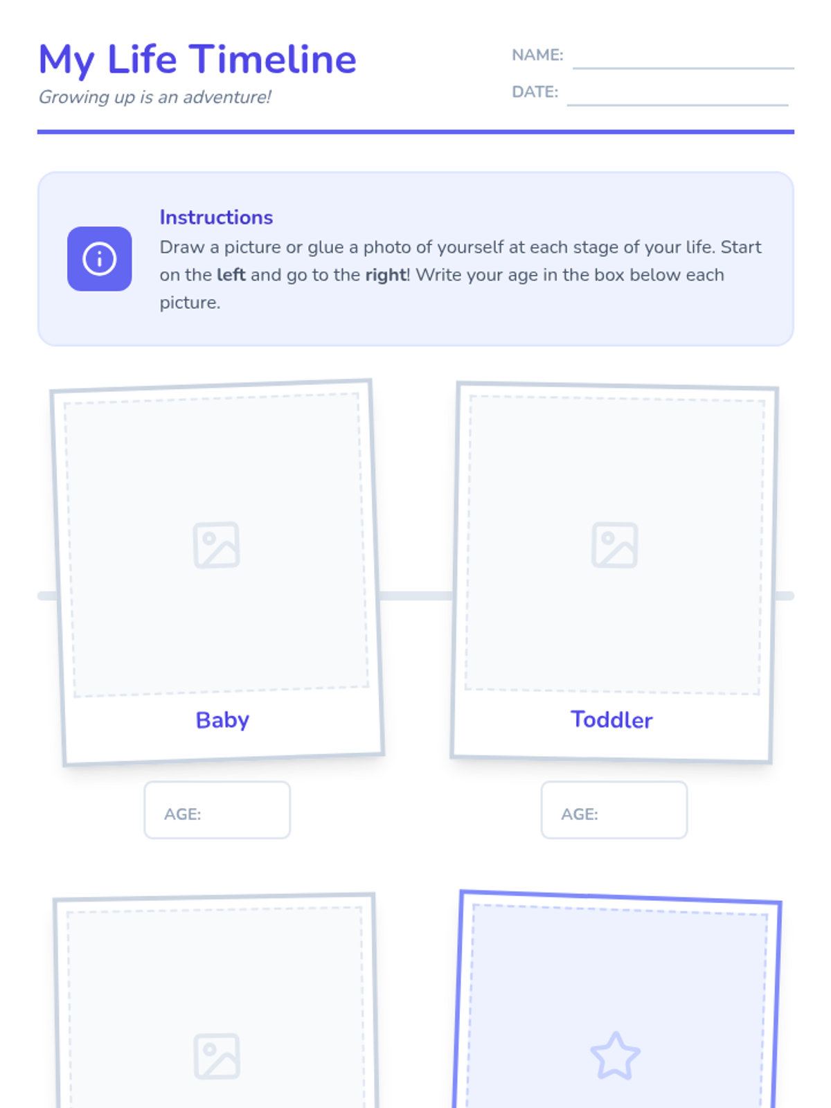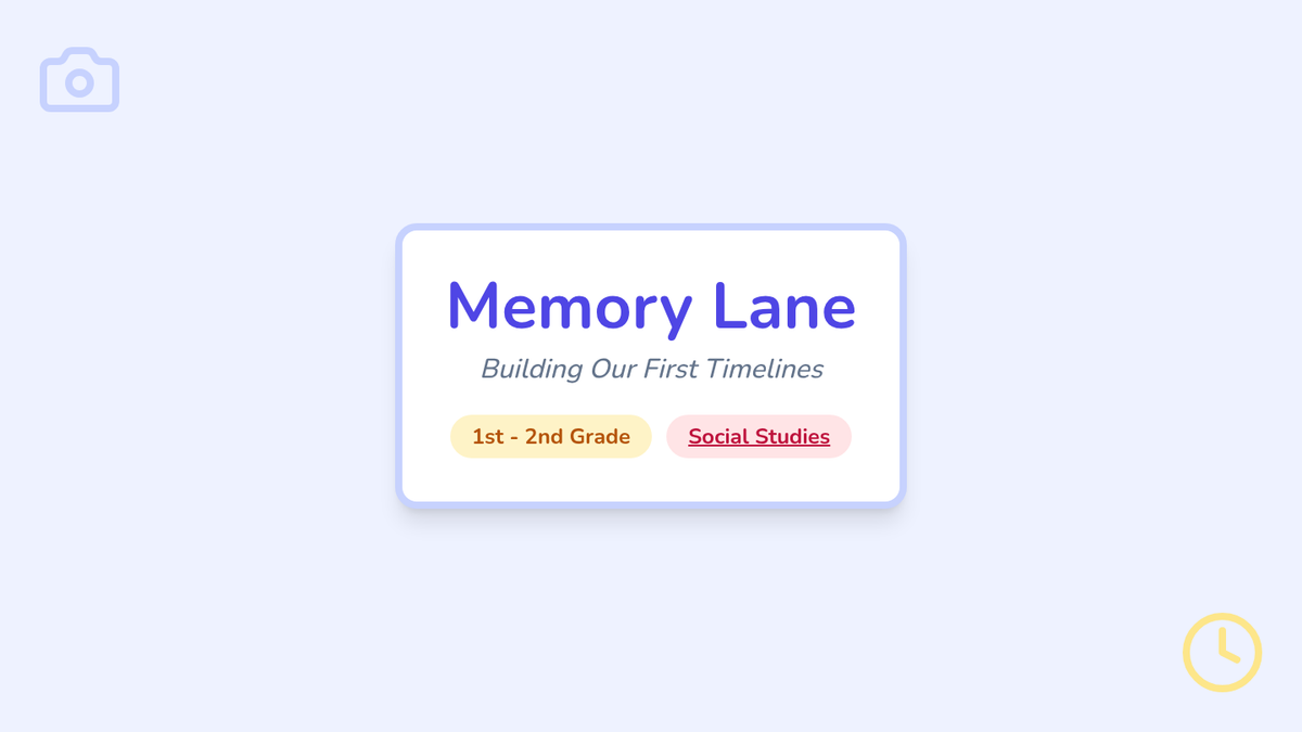 A 1st-2nd grade lesson where students explore chronological order and personal history by creating a 'My Life' timeline, featuring a Clubhouse-themed video and interactive scrapbook-style activity.