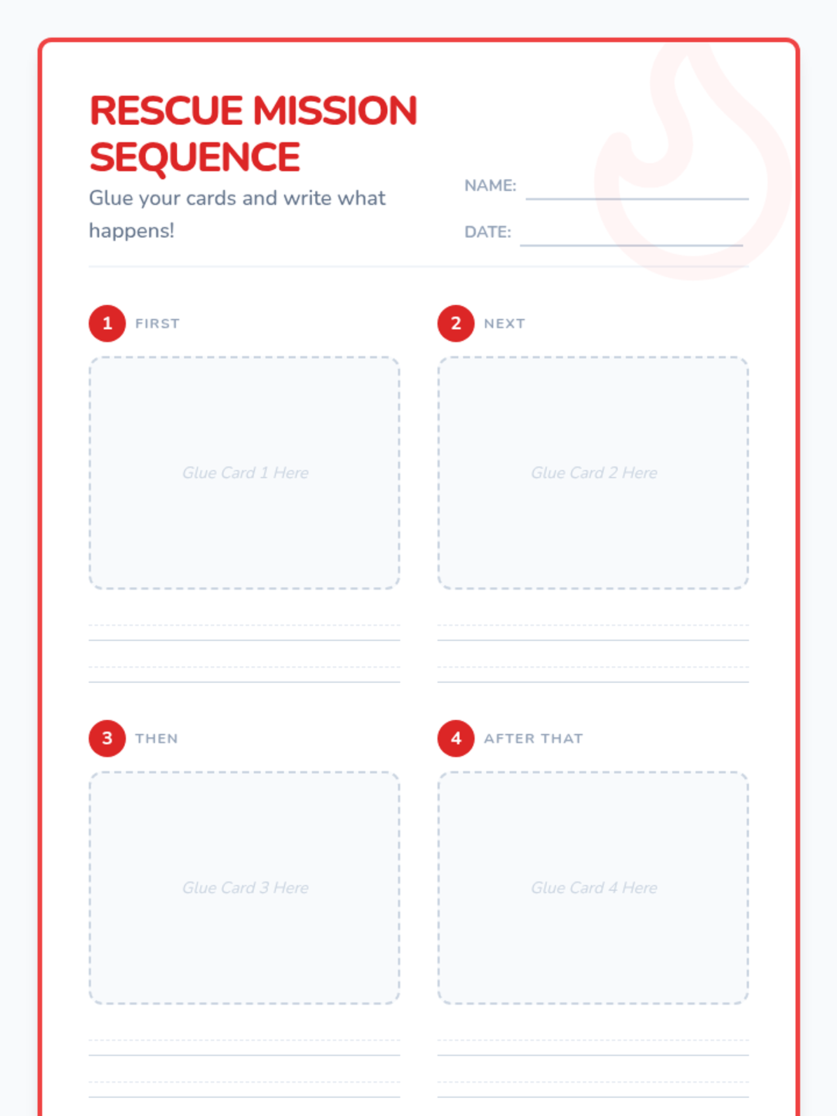 Students will learn the specific sequence of events in a firefighter's emergency response through video observation and a hands-on sequencing activity.