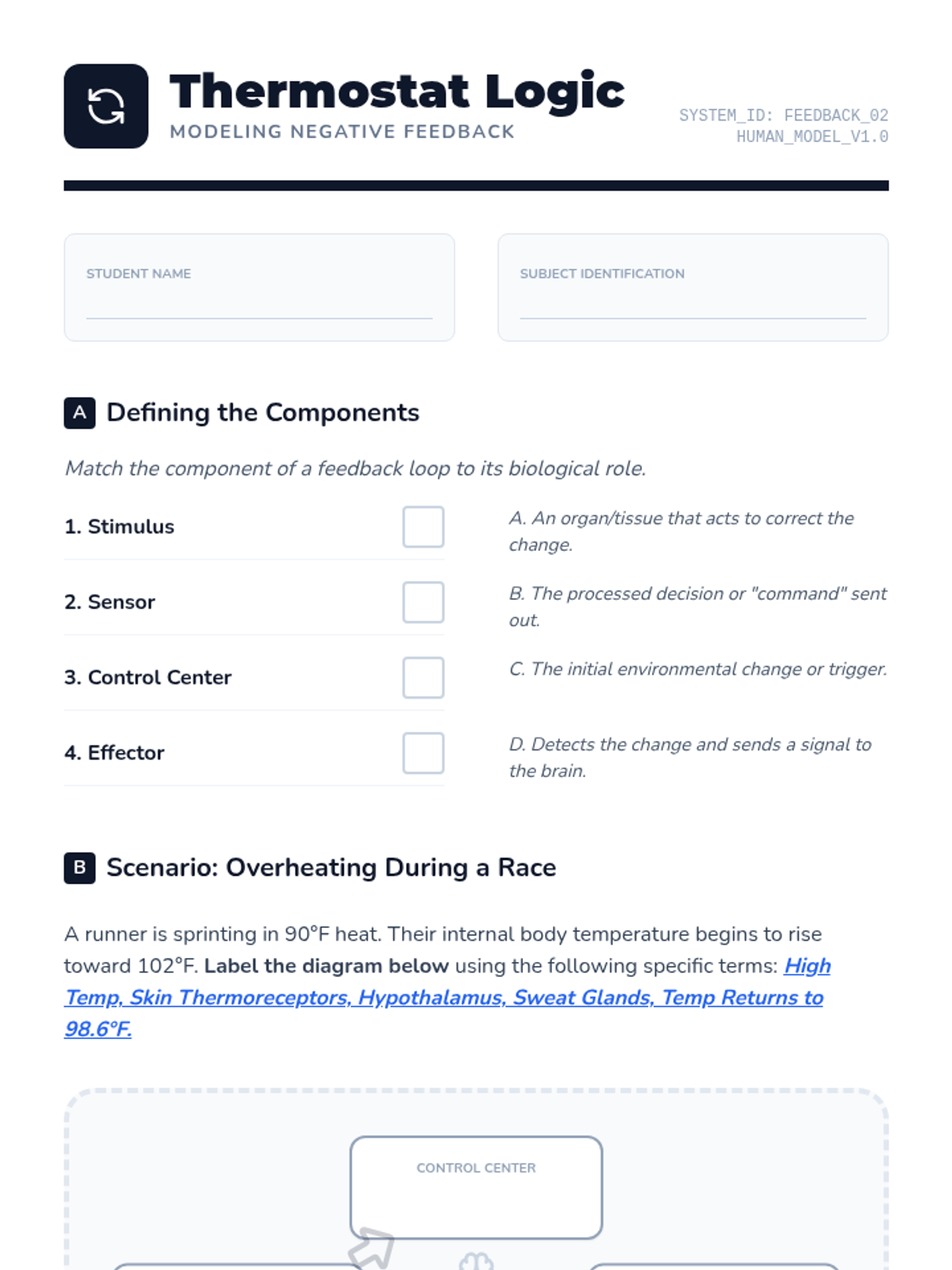 Detailed exploration of the four components of a negative feedback loop using human thermoregulation as the primary model.